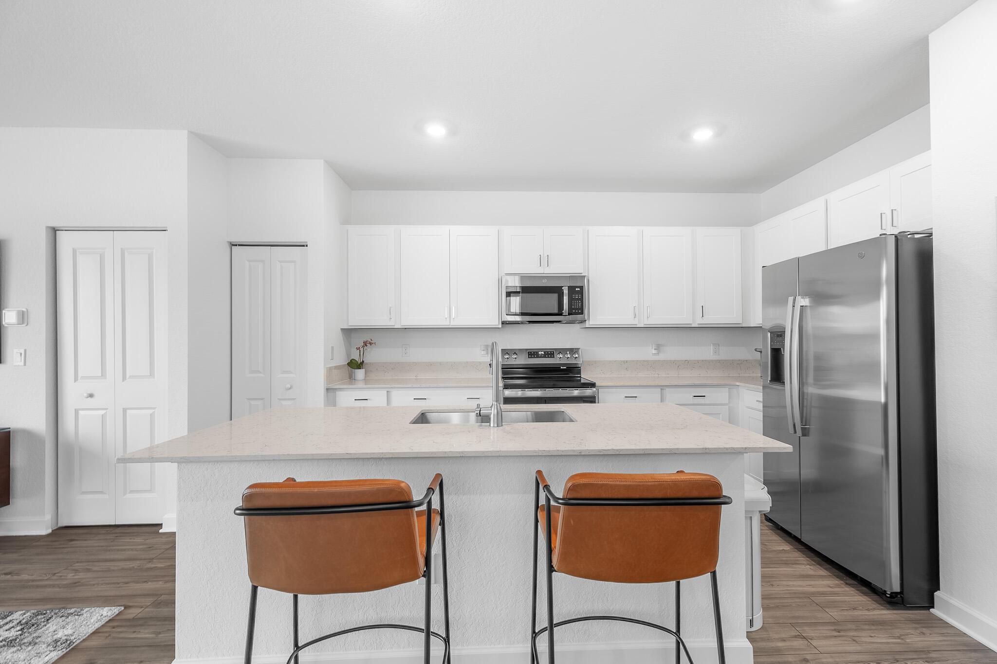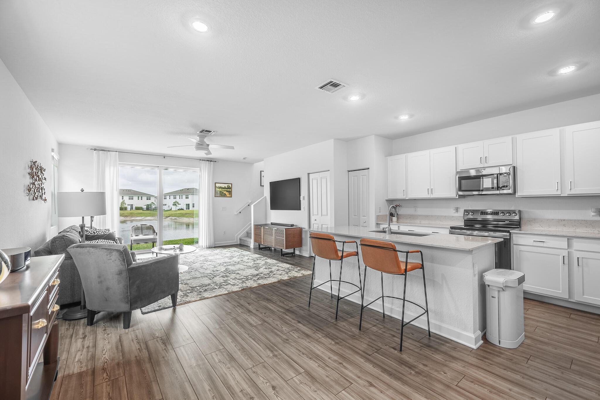 Lakefront: 3 Bed with Den, 2 Bath, 1 Car Garage Townhome. Priced Below Market Value, Bring Offers! You Won't Want to Miss This Like New 2024. Prime Location Less Than 1 Mile from the Turnpike and Next to a Brand-New Hospital. Enjoy Impact Windows, Open Floor Plan, Quartz Countertops, Guest Half Bath, Low HOA in a Gated Pool Community! Main Suite Features Large Walk-In Closet, and Spa-Style Shower; Laundry is Upstairs. Virtual Tour Available. Just 15 Min To I-95, Central to Orlando & Miami, Across from Tesoro Country Club, and Close to Beaches, Golf, Boating & Parks.