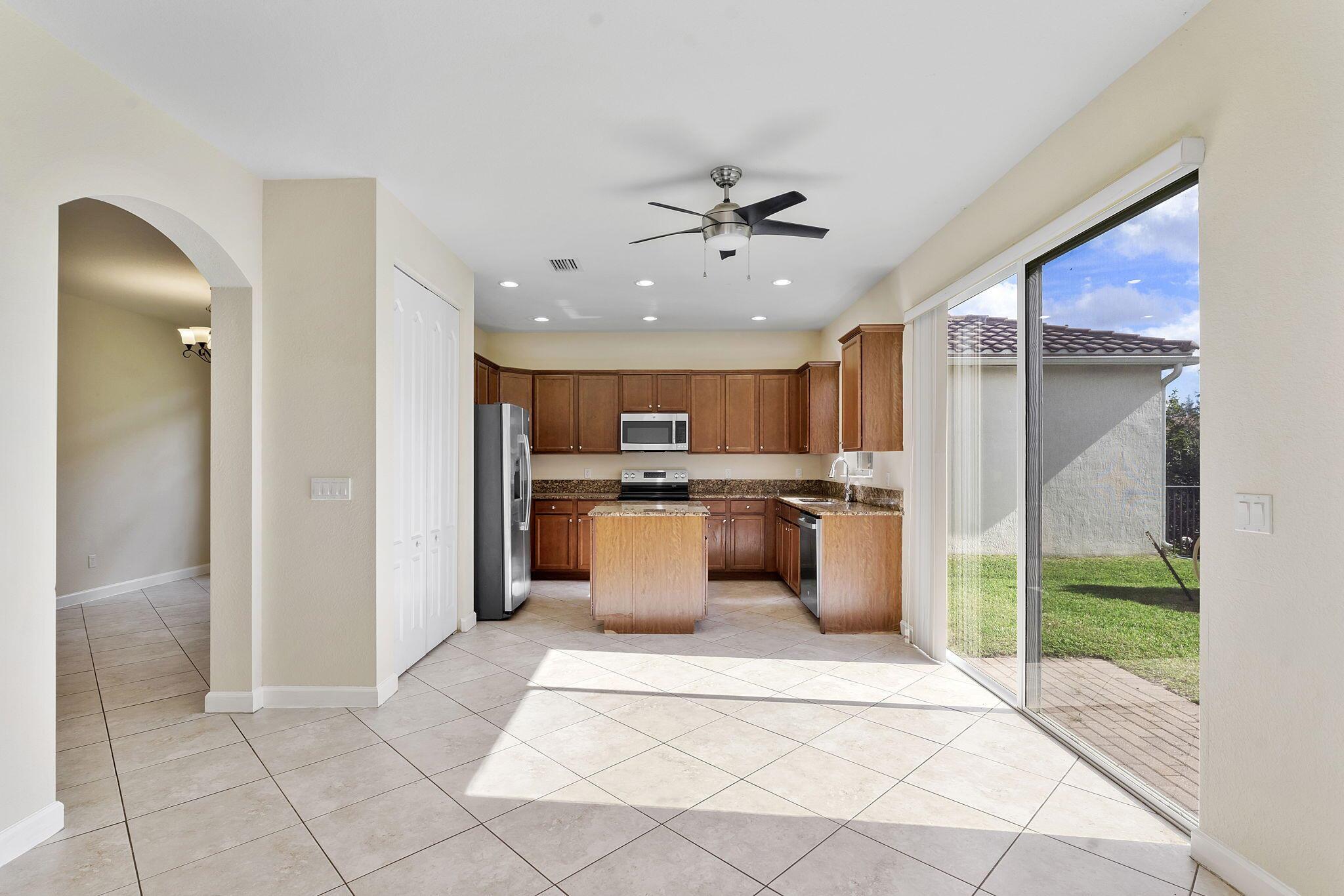 Welcome to this stunning two-story home in a vibrant new gated community, offering 5 bedrooms, 3 bathrooms, and a 2-car garage. The entire house features tile and new vinyl flooring and full impact glass windows, a unique benefit in the neighborhood.The kitchen is equipped with stainless steel appliances, granite countertops, an island, and a pantry, all highlighted by beautiful 42-inch cabinets. The living areas boast stylish 18-inch ceramic tiles laid diagonally.The master suite includes dual walk-in closets, with a master bath that offers dual sinks, a Roman tub, and a separate shower. An oversized rear patio provides ample space for outdoor gatherings.Enjoy community amenities such as a swimming pool, cabana, and sun deck. Conveniently located near good schools and offering easy