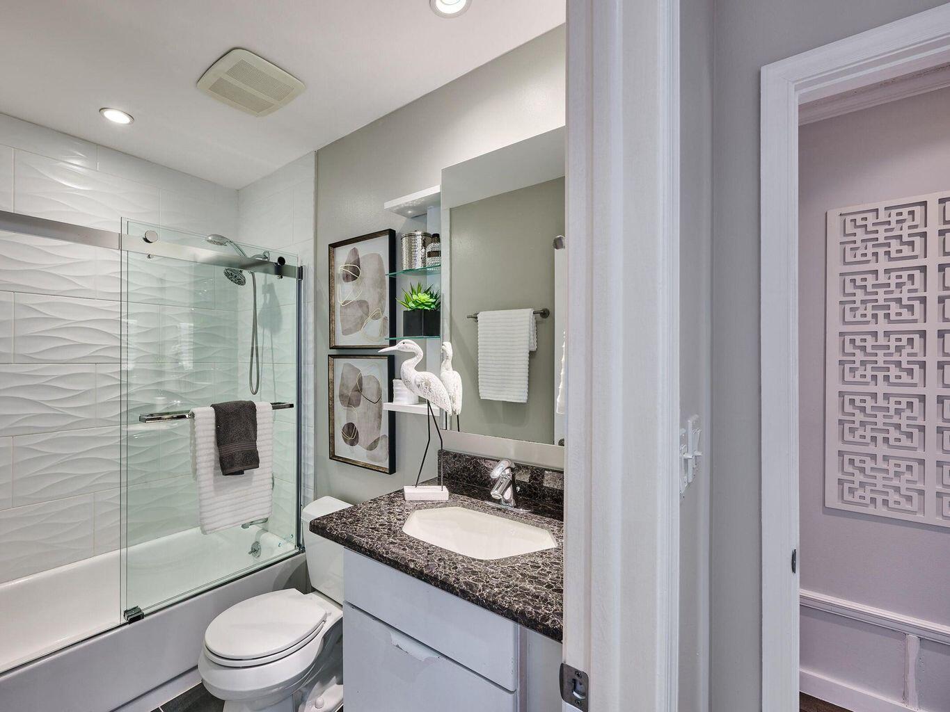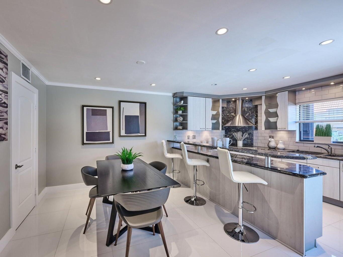 Experience upscale living in this modern East Boca townhouse featuring two spacious master ensuite bedrooms and 2.5 baths. The open-concept design showcases a gourmet kitchen with Miele stainless steel appliances, Colette cabinetry, and granite countertops. Porcelain tile floors on the first level and rich engineered hardwood upstairs add elegance throughout. Enjoy a private laundry room with full-size washer and dryer, a tranquil courtyard perfect for entertaining, and convenient parking. Ideally located near Mizner Park, Palmetto Park shops, and less than a mile from the beach--this home perfectly blends luxury and location!