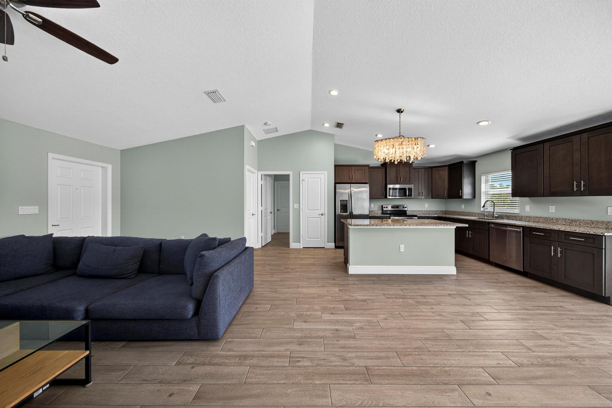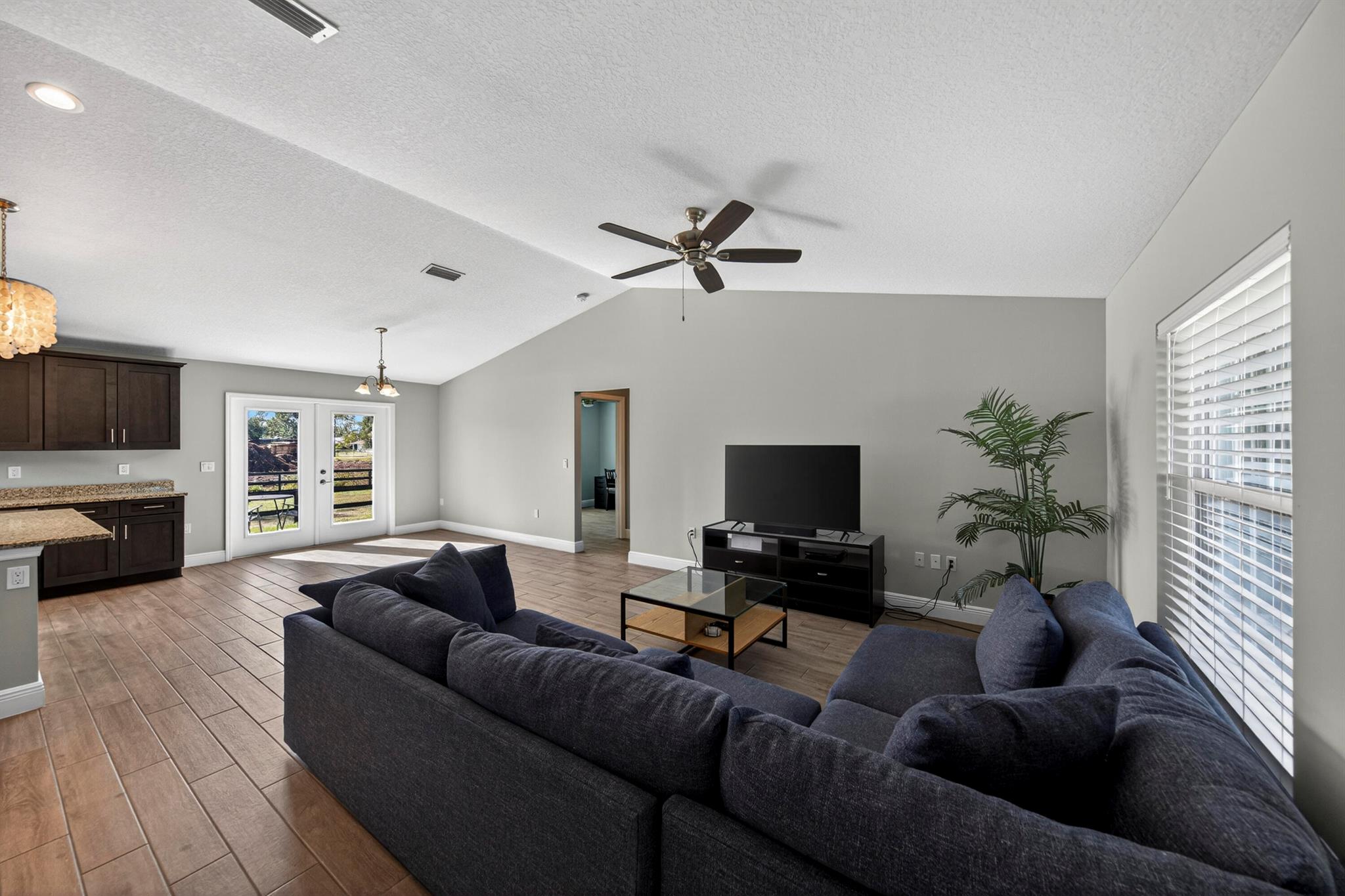 MOVE IN READY! This Home shows Pride of Ownership w/ Original Owners! Built in 2019 on 1.15 Acres, this lovingly maintained home boasts vaulted ceilings to maximize space & give a large airy feel. The focal point is the impressive great room w/ all the natural light. This Synergy Gold Series home is up to 50% more energy efficient than avg new construction homes! Freshly painted, & tile wood look floors just steam cleaned. Hurricane impact windows, Granite counters, Reverse Osmosis water treatment, ceiling fans, stainless steel appliances! French Doors lead you out to your generous fenced-in backyard! Versatile Outdoor Enclosure w/ Ready-to-Use Garden/Hobby Farm Space. Generator hook-up in Garage. Space for RV, Boat, Trailer, Etc.! With 1438sq ft under air, this house has it all!