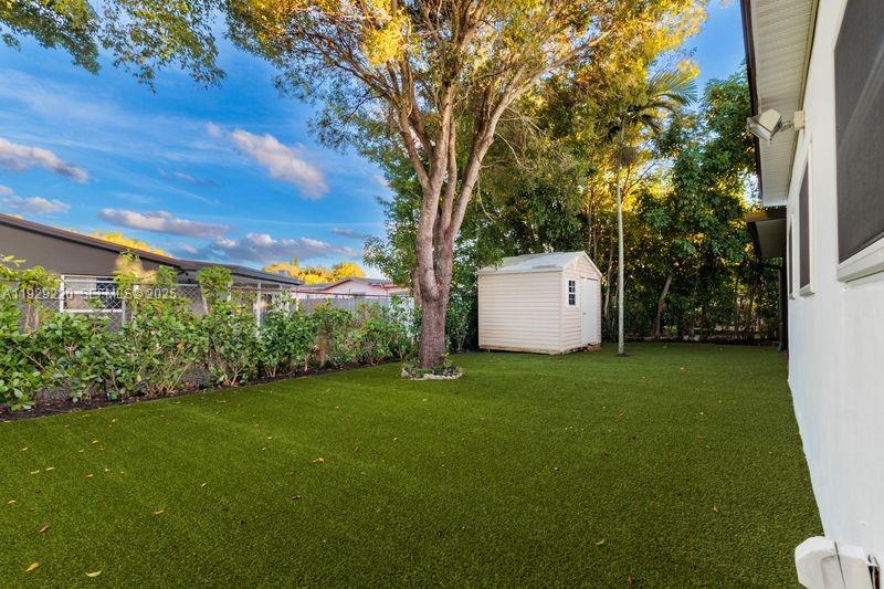 Beautifully fully renovated 3-bedroom, 2-bath home featuring a desirable split floor plan and a bright Florida room for added living space. This move-in-ready residence has been freshly painted inside and out and boasts a new 2024 roof along with solar panels for energy efficiency. The modern kitchen is designed to impress with quartz countertops, stainless steel appliances, and sleek finishes. Both bathrooms have been completely renovated with contemporary style and quality craftsmanship. Impact windows throughout provide peace of mind and enhanced insulation. All bedrooms feature custom built-in closets, maximizing storage and functionality. Step outside to your private backyard oasis with low-maintenance turf, clusia plants for added privacy, and a new aluminum pergola with integrated outdoor lighting—perfect for entertaining or relaxing. Additional highlights include a custom modern impact garage door, a stylish redesigned driveway with artificial grass accents, and thoughtful modern touches throughout. This home seamlessly blends comfort, efficiency, and upscale design—an exceptional opportunity you won’t want to miss.
