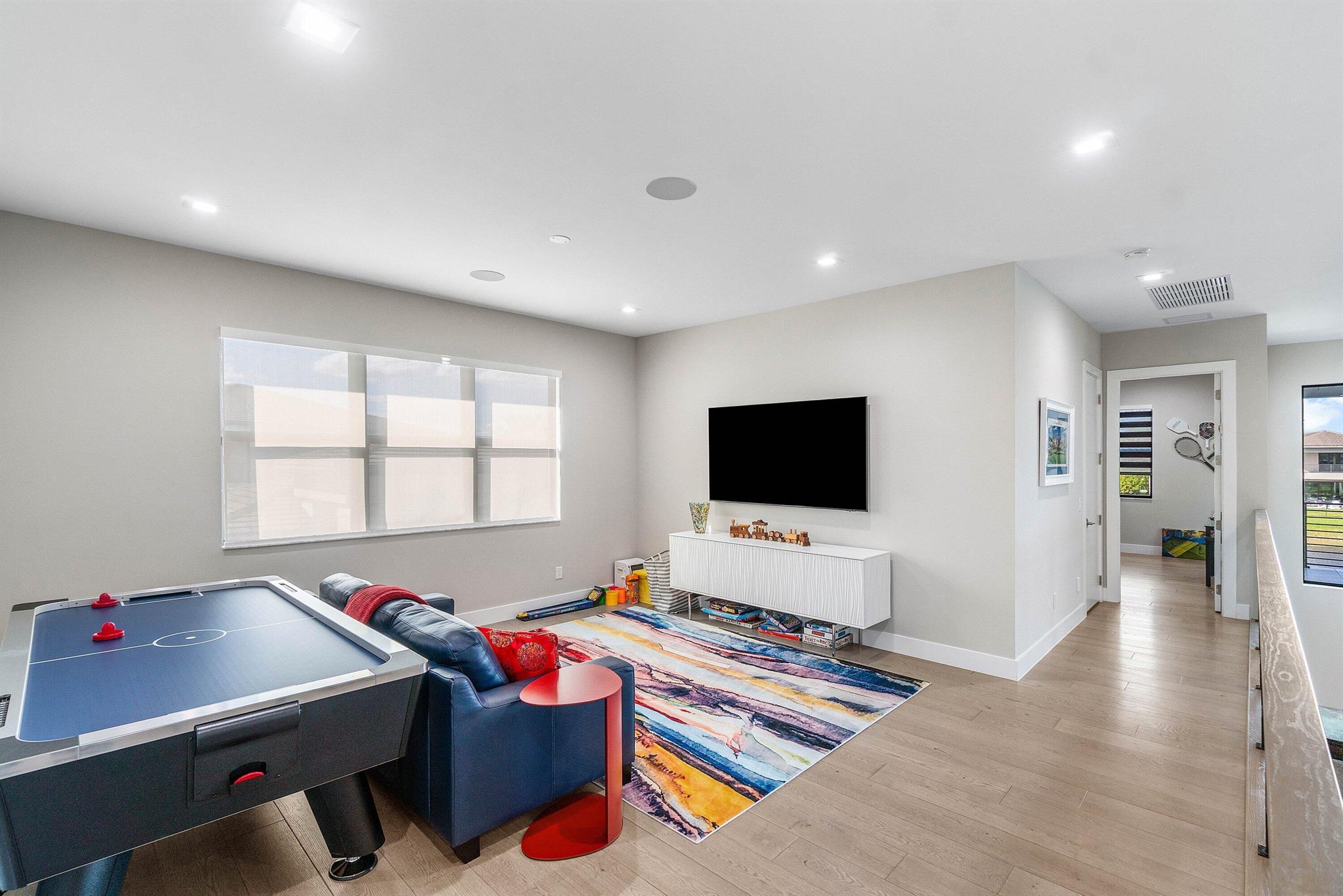 Welcome to your new home where luxury meets technology. This Veneto contemporary model is offered fully furnished and is truly one of a kind; the largest model with a primary suite downstairs. This home sits on an oversized one-third acre lot (plus a drainage easement) overlooking the lake, only one block away from the clubhouse and all of the amenities that Boca Bridges has to offer. Roughly 6,000 square feet under air, this home offers 5 bedrooms, 7 bathrooms (5 full and 2 half), plus a 7 seat movie theatre with custom seating, 120'' laser projector, wet bar and full surround sound with hidden speakers. As if that's not enough, there is also a built in golf simulator with moveable hitting area and a flightscope launch monitor.