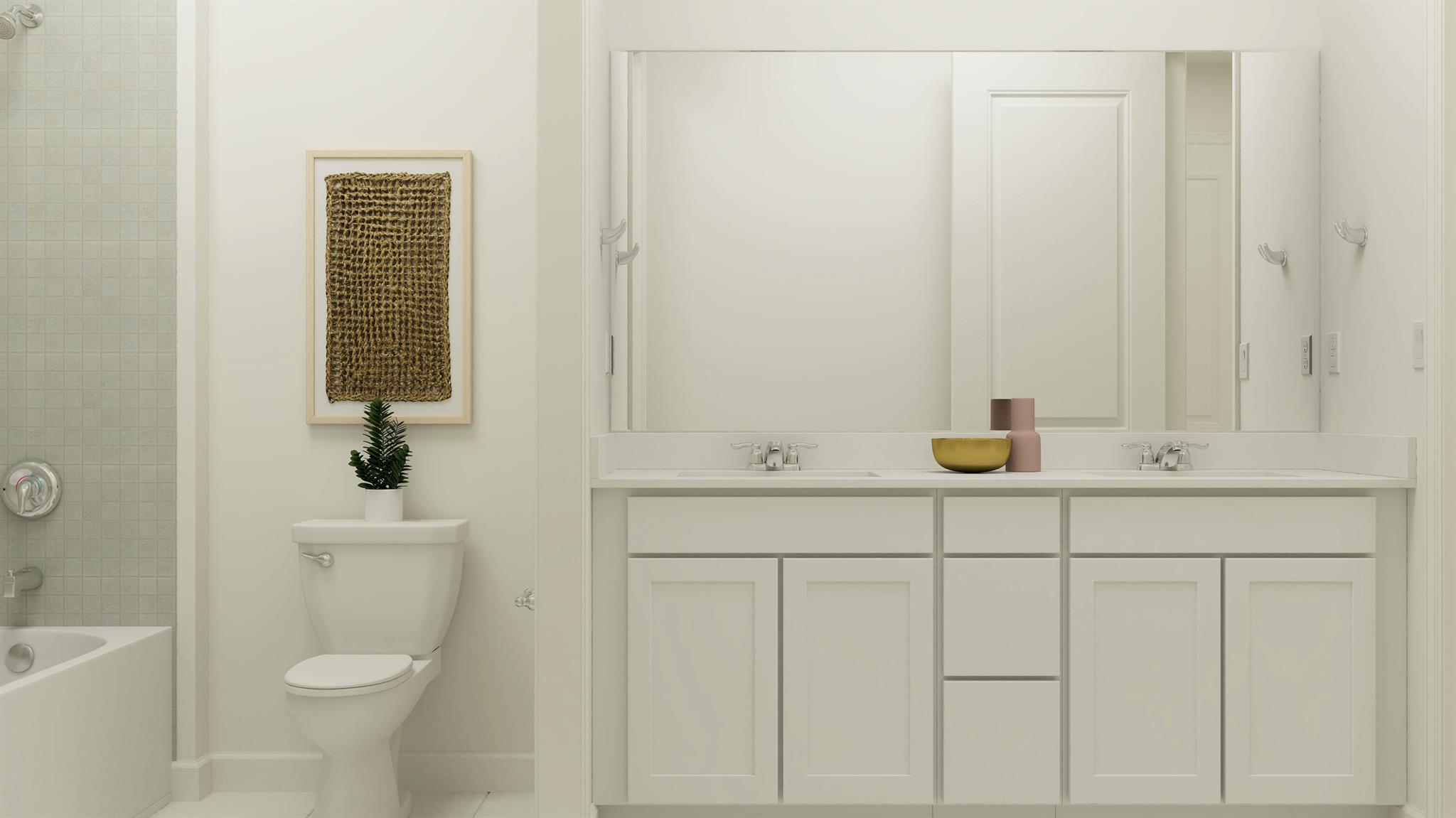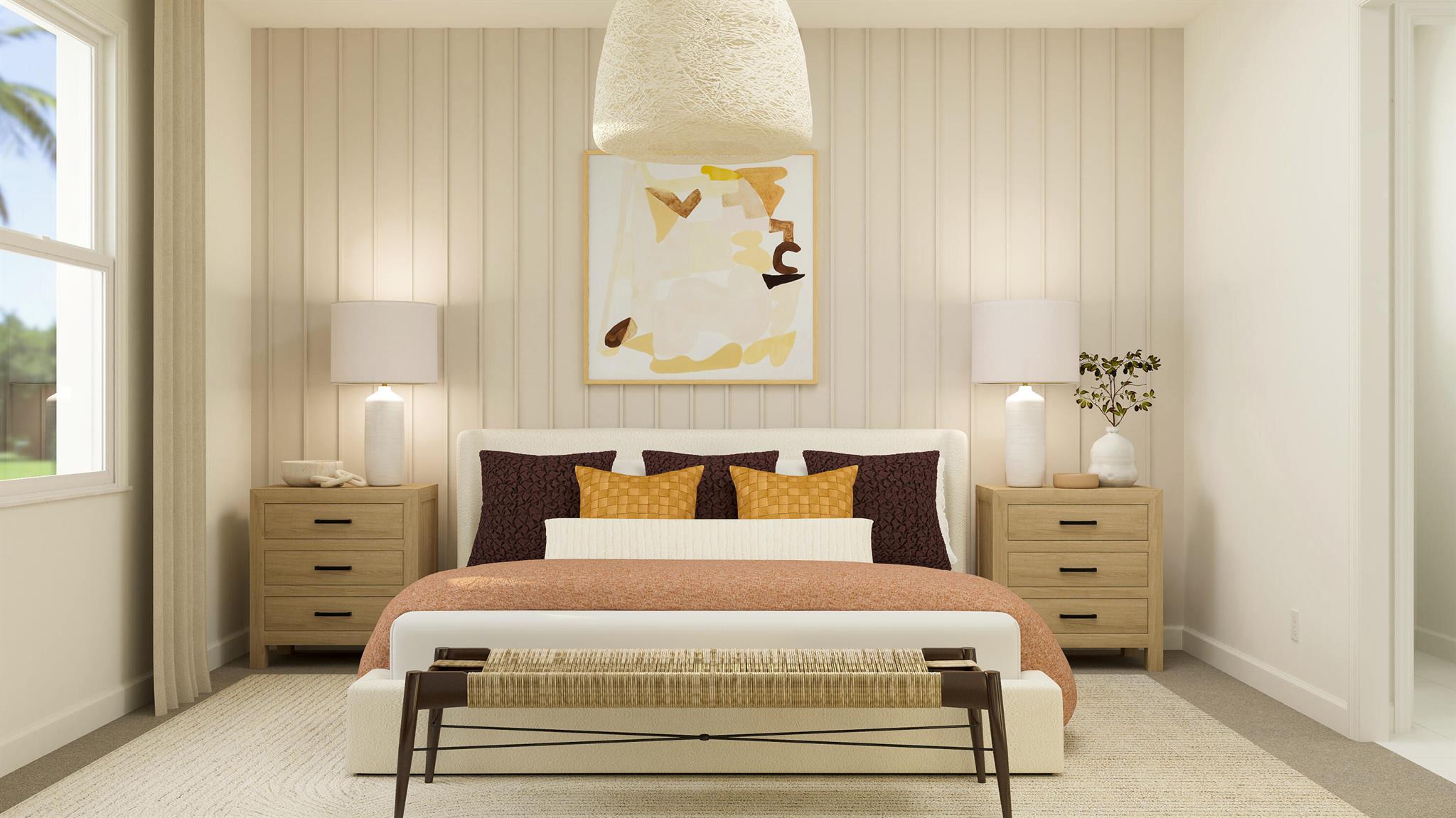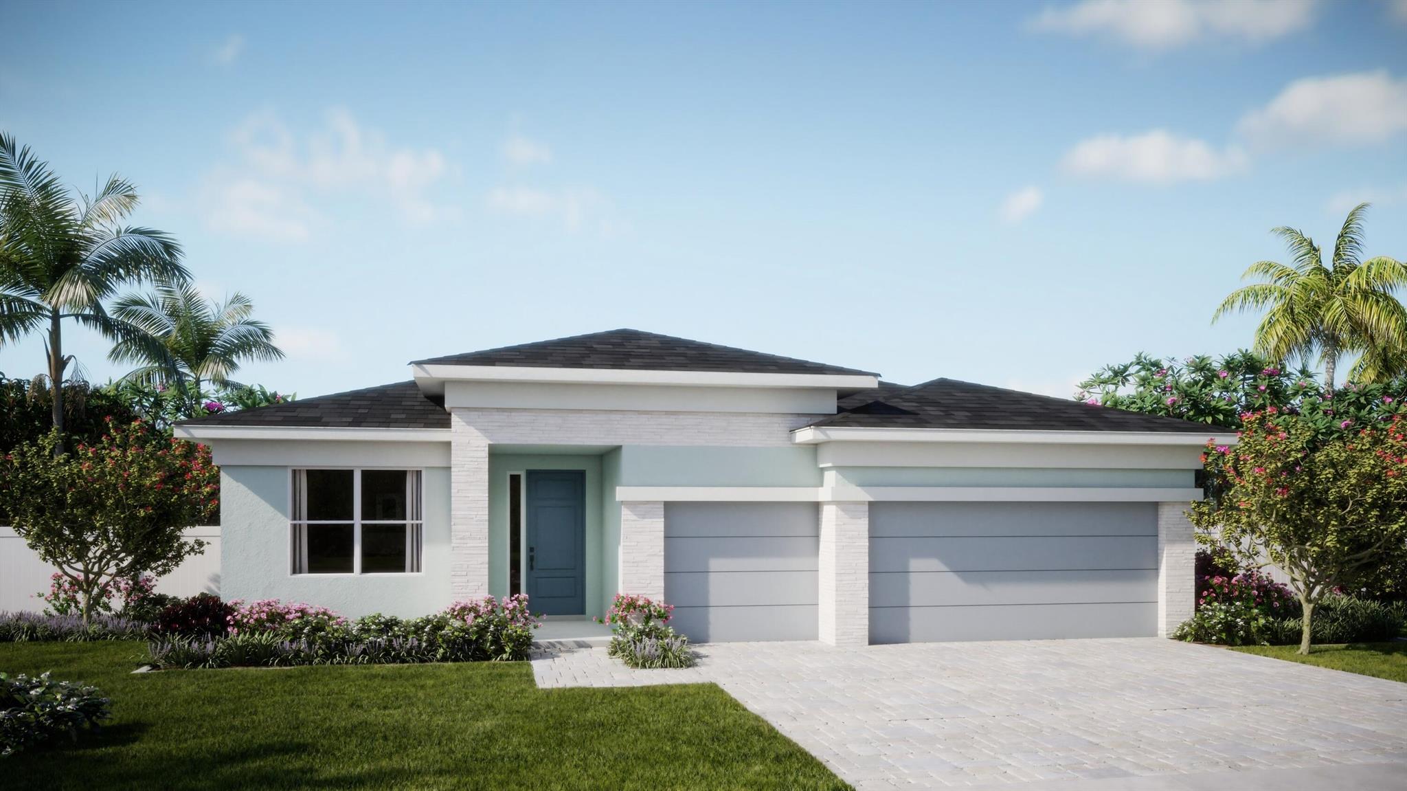 This new single-level home features a convenient bedroom and full bathroom off the foyer, leading to a versatile flex space ready to be used to meet the evolving needs of the home. The inviting open-concept layout is designed for seamless entertaining and multitasking, complete with access to an outdoor lanai. Three bedrooms are tucked away to the side of the home, including the luxe owner's suite in a private back corner, offering direct access to a spa-inspired bathroom and walk-in closet. Photos are for illustrative purposes only