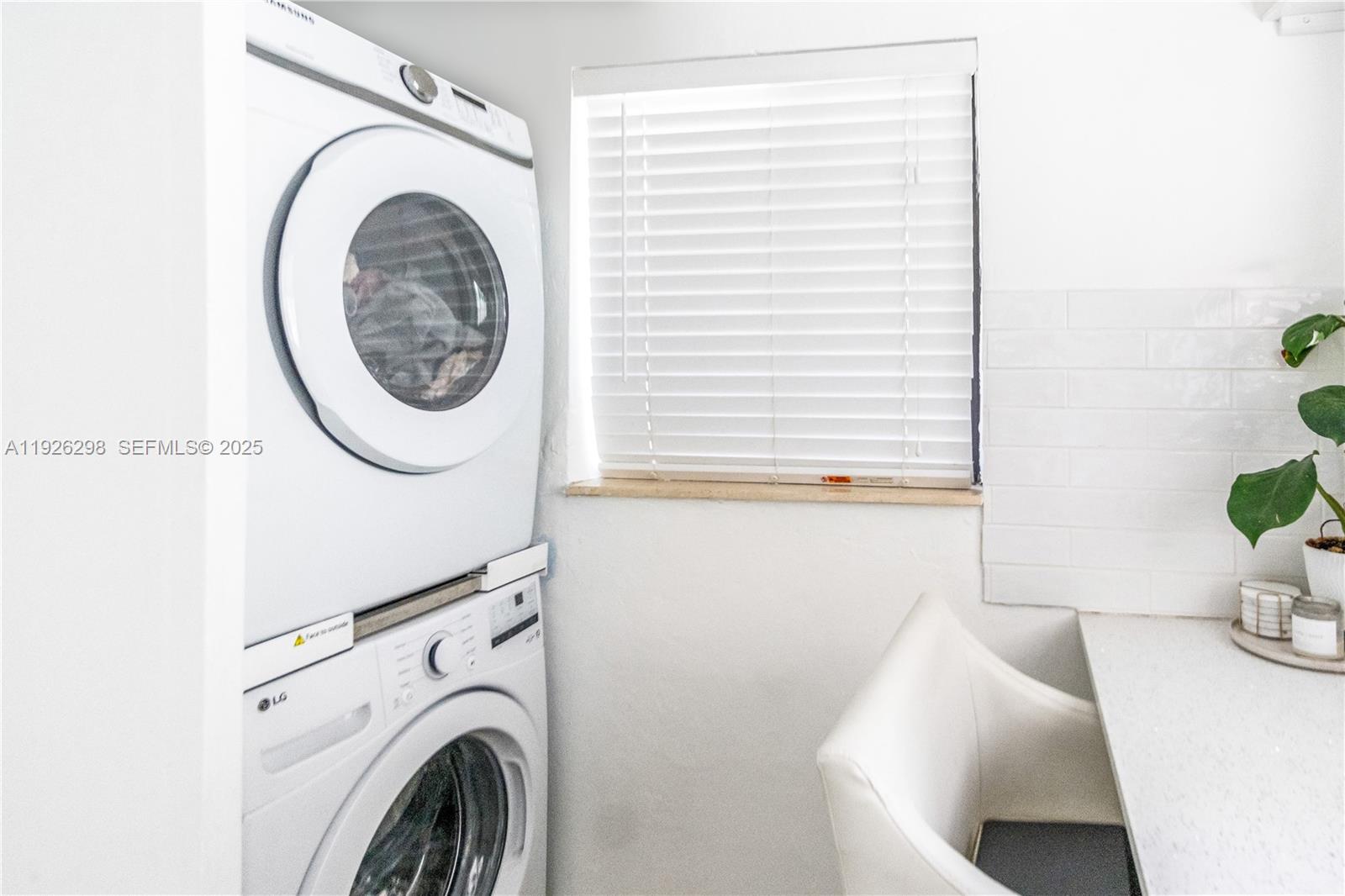 Escape to a charming oasis! This 2 bedroom 2 bathroom home welcomes you with beautiful terrazzo flooring, a modern kitchen featuring quartz stone, stainless steel appliances, natural light and an extra space w/ laundry, pantry eat-in area. Snuggle up on the covered patio areas, ideal for morning coffee or evening stardazing. The large backyard is a private retreat, with fruit trees and a she-shed equipped with a portable AC making it an ideal studio space or office. The front yard has a new 4-car driveway and loads of curb appeal. Roof 2021 & Carport was enclosed lending more space to do as you please. Prime location, take a stroll to nearby shops, supermarkets, pharmacy, gym, and park-or hop on I-95 just around the corner. A beach getaway to Lauderdale-by-the-sea is just 10 mins up the road!