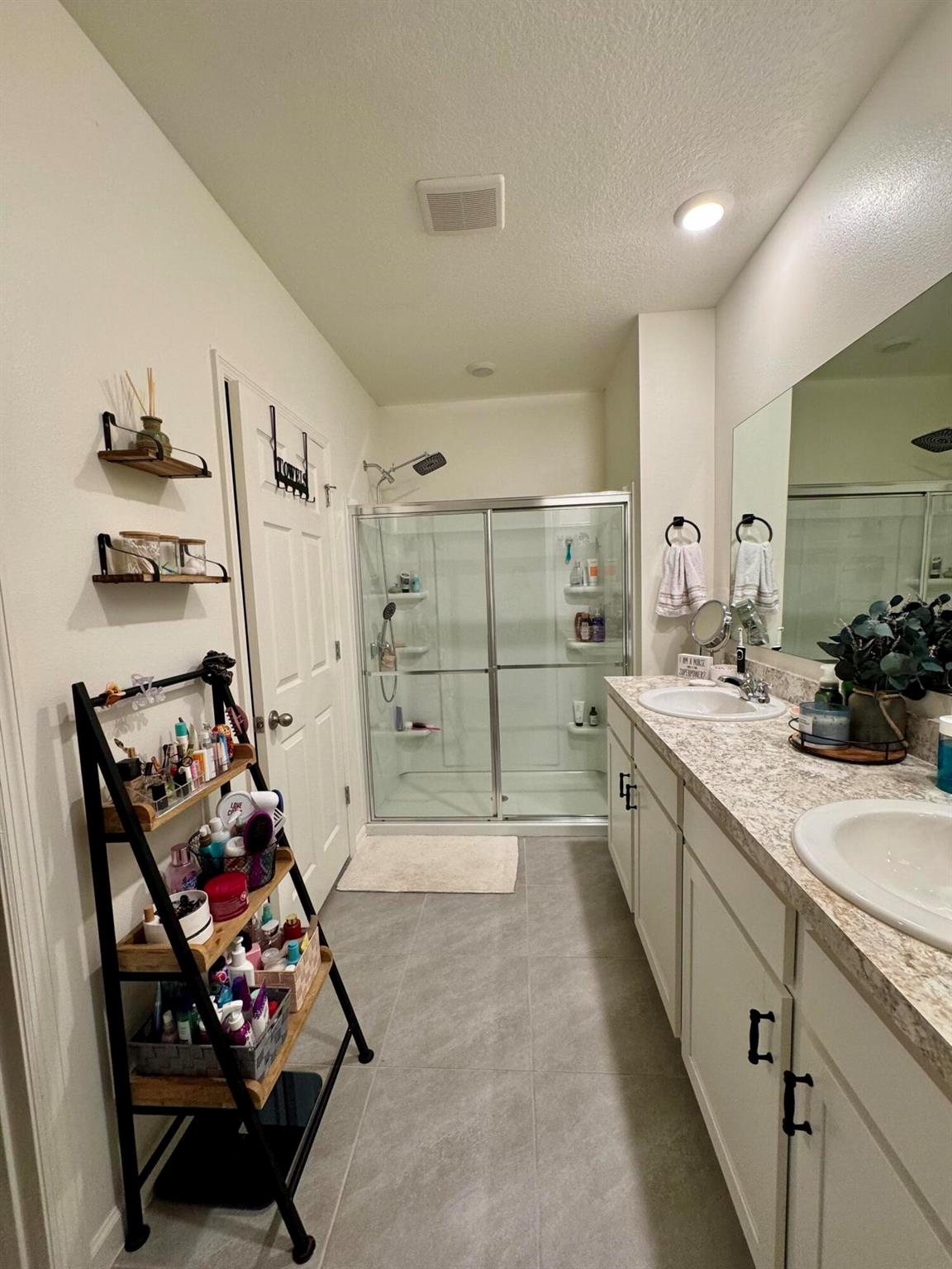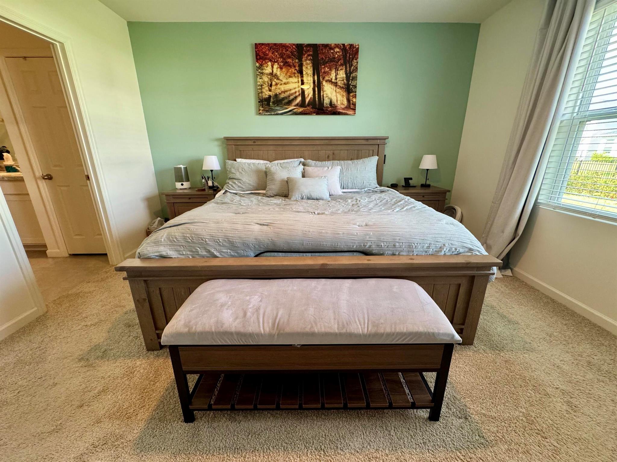 Welcome to this beautifully upgraded 3-bedroom, 2-bath CBS home with a split floor plan and 2-car garage in the desirable Central Park community.Highlights:(Modern kitchen with large island, cabinets with upgraded handles, granite countertops, stainless steel appliances, and oversized pantryGranite single bowl sink with matching dual function pull down faucet Tile flooring in main living areas & flex space; carpet in primary and secondary bedroomsCustomized primary closet and upgraded cabinet hardwareScreened patio for outdoor enjoyment Two ceiling-mounted garage storage units (one with adjustable height)Workbench with shelving for tool storage (removable if desired)Whole-house Brita water filtration system (Hurricane panels with hardware.