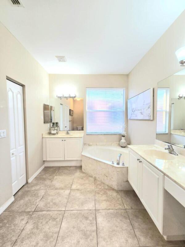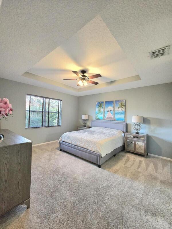 This charming gated community home is located in the desired neighborhood of Heritage Oaks at Tradition. The bright and spacious floor plan throughout the living and dining room combo is ideal for relaxing or entertaining and just off the large covered lanai. The kitchen nook is an inviting area to enjoy the views and/or create your coffee bar or lunch area. Upgraded white cabinets and countertops with all stainless steel appliances. Split bedrooms with upgraded vinyl flooring throughout and carpets in the bedrooms. The Master Bedroom has a tray ceiling that gives a you a spacious feel with 2 walk-in mirrored closets and dual vanities in the bathroom and a large shower and soaking tub.