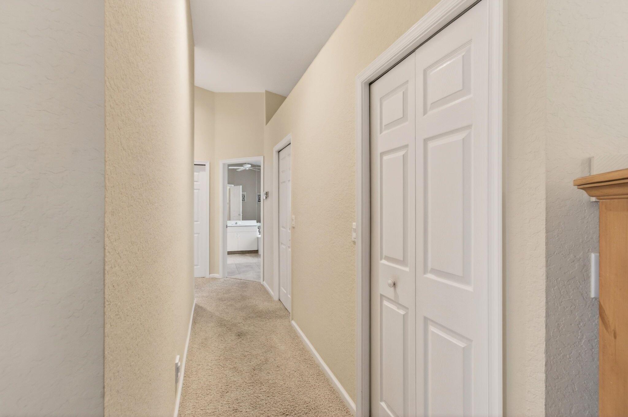 Beautiful 3 bedroom 3 bath home with gorgeous water view. Step into this beautiful home that features soaring ceilings. Updated kitchen that overlooks the serene lake. Separate living room and family room. Huge master bedroom suite is great and includes an office nook. Bedrooms 2 and three are spacious and perfect for guests. Large screen enclosed patio. New roof in 2023, AC 2020, Garage door 2016. HURRICANE SHUTTERS. Association requires buyers to have a minimum 690 credit score. Community offers: 24/7 guard gated security, pool, jacuzzi, clubroom, exterior house painting, lawncare and landscaping. OPTIONAL memberships are available at the Indian Spring Country Club for social and golf which include a state of the art gym, restaurants, golf pro shop, bar, and many social activities