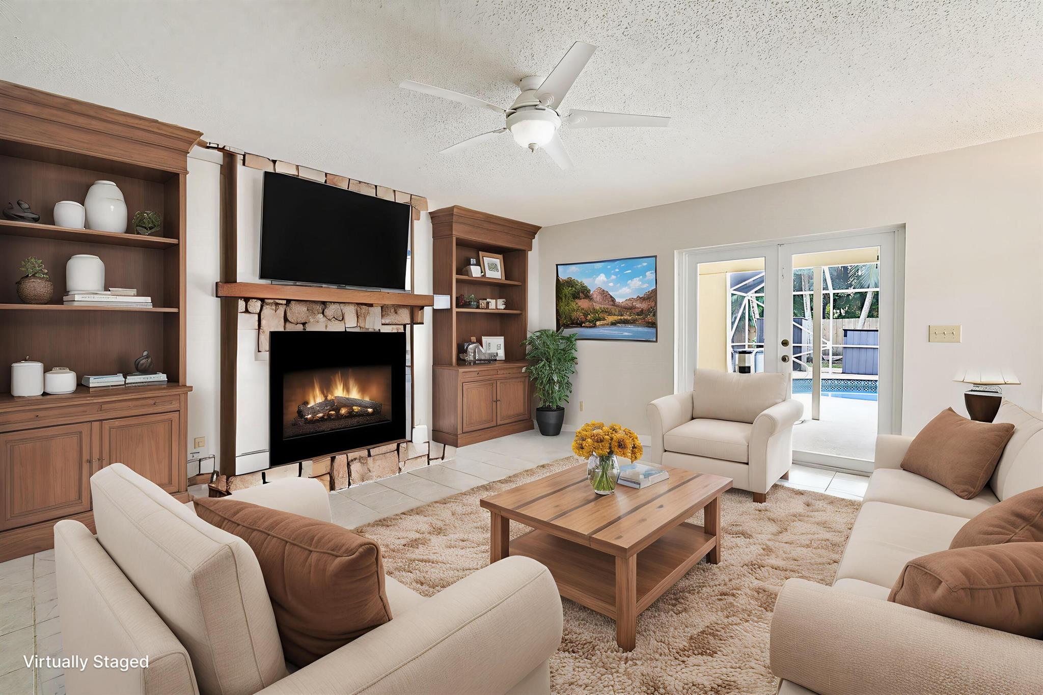 Open the doors to your new home. With its private pool and secluded backyard, this home is perfect for entertaining and family gatherings. Imagine yourself enjoying cool evenings and holiday celebrations in front of the cozy fireplace. With soaring ceilings, this home boasts 3 bedrooms and 2.5 bathrooms. There's also a roomy loft that can easily be transformed into a 4th bedroom, offering plenty of flexibility for your family's needs. Enjoy the convenience of a two-car garage and impact storm windows, ensuring peace of mind during any weather. The low HOA fee of just $70 provides access to tennis courts, pickleball, basketball courts, picnic tables, and grills. Situated conveniently near the Turnpike, shopping,restaurants, the WellingtonMall, and the Polo Field