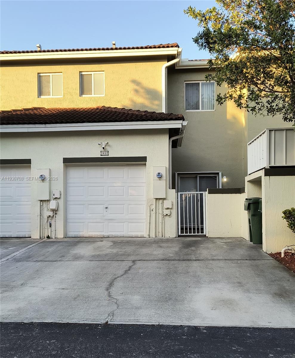 Two Story Townhouse with garage and balcony, parking in rear and front of building. Association fee includes insurance for building exterior, internet and media, alarm service, gated community, use of pool and playground.