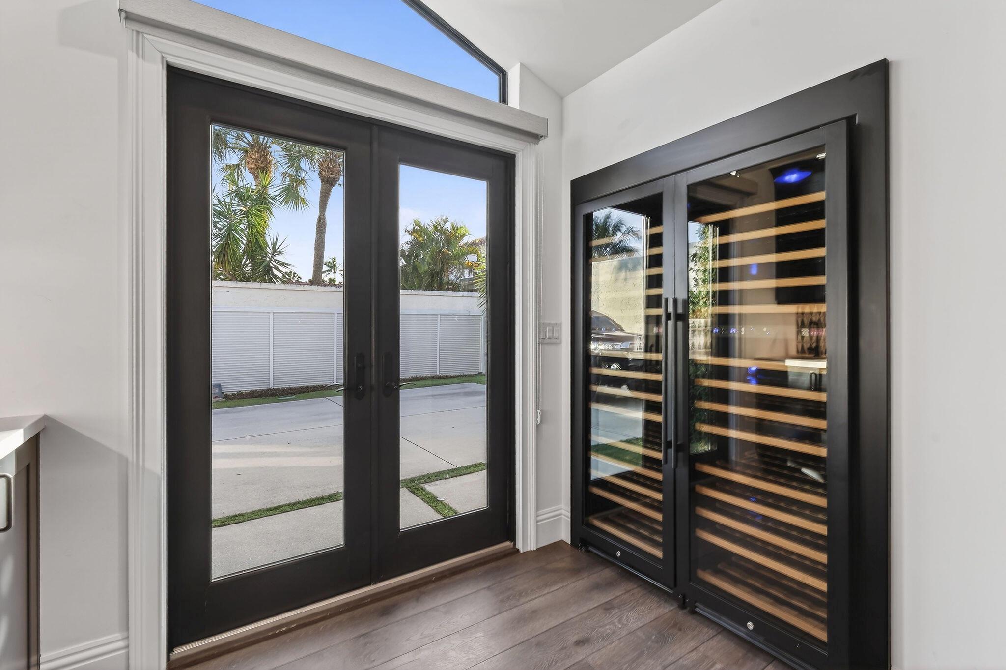 Experience refined coastal living in this stunning custom re-built beach compound. The thoughtfully designed floor plan offers 3 bedrooms, 3.5 baths, a welcoming living room, and a versatile media room with a full en-suite bath, wet bar, and full-size wine refrigerator--perfect for entertaining. The re-build included raised ceilings throughout with wood accent beams enhancing the architectural character, while European wood floors, a gourmet kitchen with high-end appliances, gas range, and Moroccan-inspired mosaic tile in the kitchen and baths elevate the interiors. Enjoy complete privacy in the beautifully landscaped backyard featuring a pool and infinity-edge spa, all secured by electric gates. A true oasis within the gated community of Ocean Walk. *Some pictures are virtually staged.