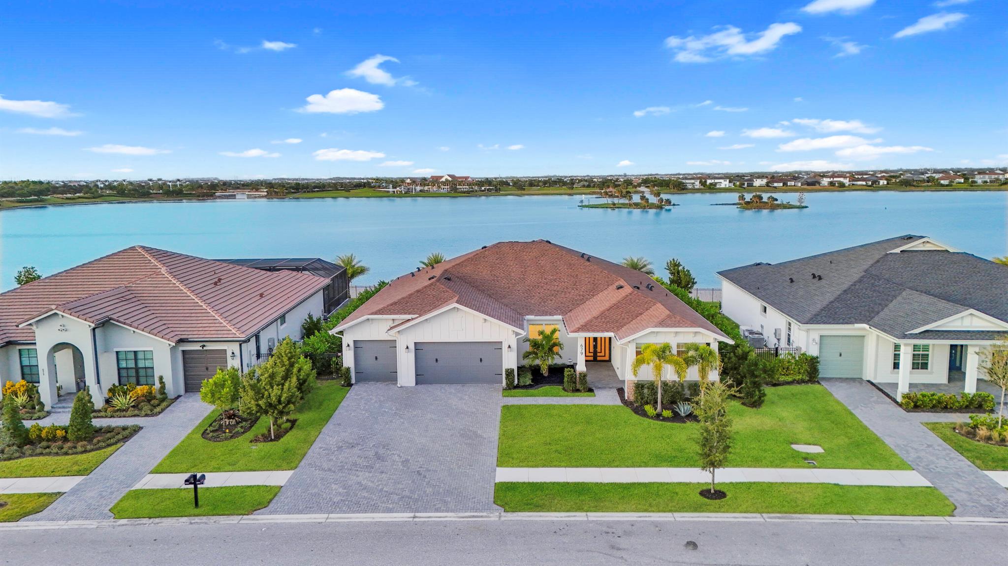 Experience exceptional luxury and comfort in this fully customized 4-bedroom residence, complete with a private office/den and 3.5 baths. From the welcoming front porch to the breathtaking lake views, this home showcases thoughtful design at every turn. Enjoy peace of mind with impact windows, a whole-house generator, whole-house surge protector, mosquito misting system, and a natural gas tankless water heater--premium upgrades that elevate both convenience and lifestyle. Step inside to an elegant open floorplan enhanced by crown molding, high hat lighting, and meticulously curated finishes. The layout includes a sophisticated formal dining room, spacious family room, and a versatile den. A dedicated mudroom area adds everyday practicality.