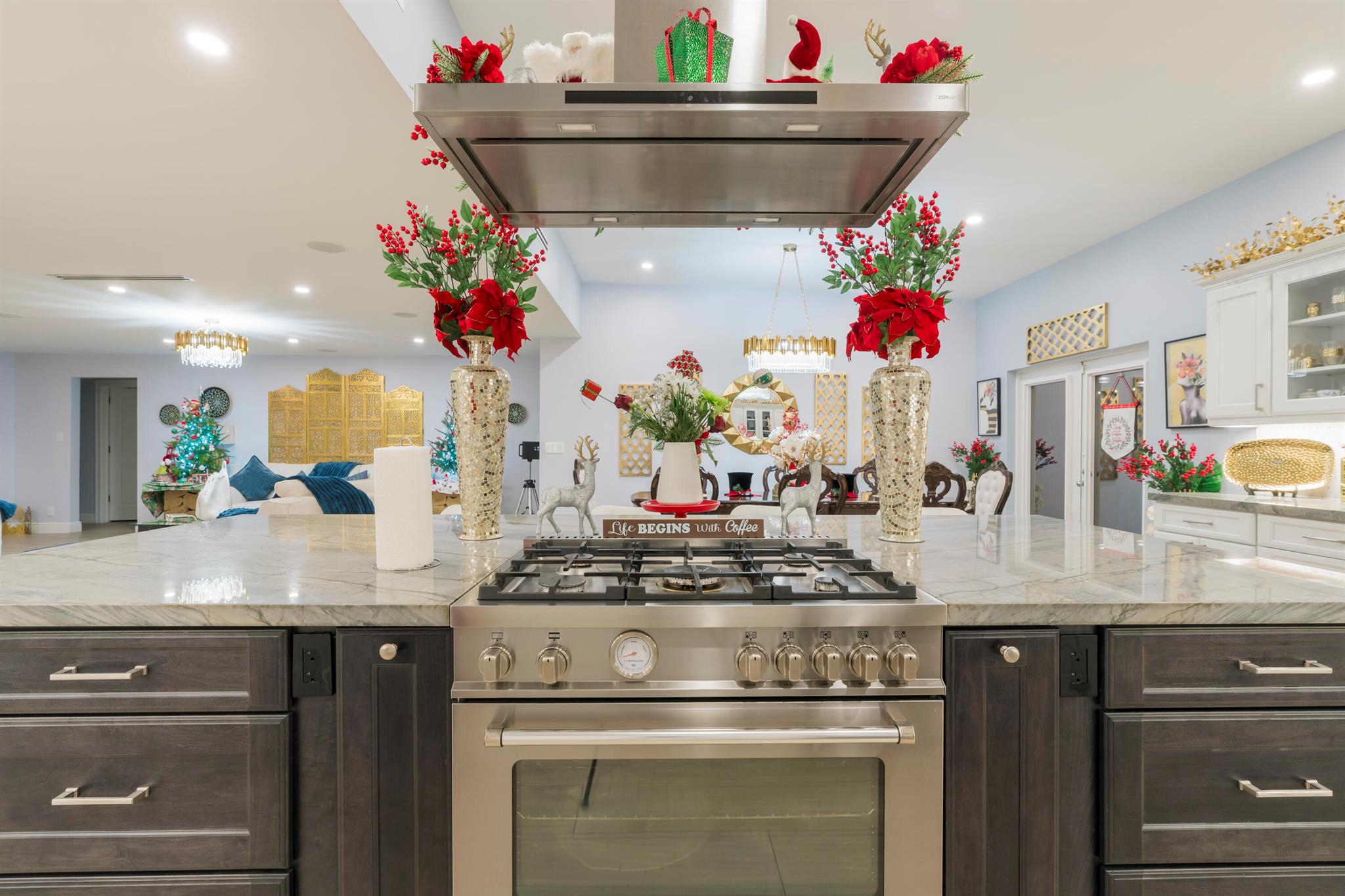 PARADISE, PERFECTED.This extraordinary waterfront estate is a rare convergence of refined design, uncompromising craftsmanship, and effortless coastal living. Upon arrival, the home captivates immediately--an expansive, newly reimagined open-concept interior frames uninterrupted views of the deep-water canal, drawing the eye straight through to your private 75' dock and brand-new 15K LB boat lift.Completely taken down to the studs and rebuilt, this residence offers peace of mind and modern luxury throughout. A new 38' steel support beam allows for soaring ceilings, while impact-rated doors and windows, new walls, electrical, plumbing, and natural gas lines reflect a level of renovation rarely found. The gourmet kitchen is a showpiece--high-end stainless appliances, professional hood