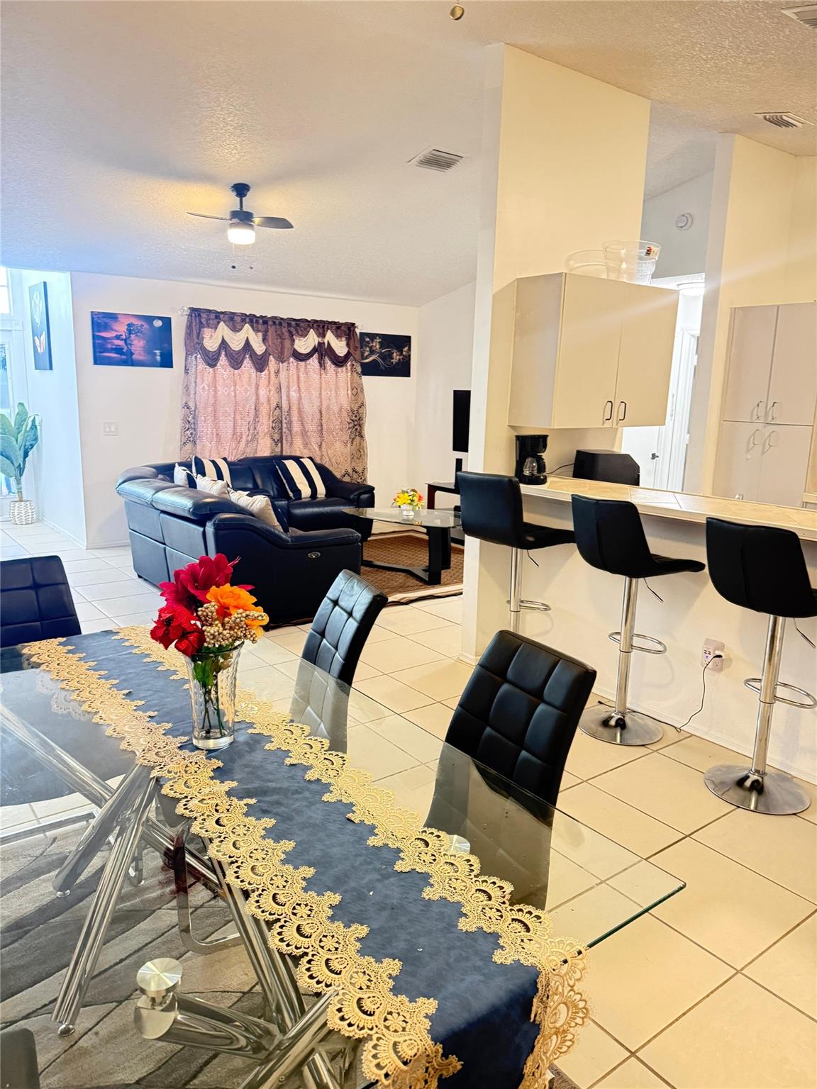 Very nice single family home located in a very quiet area. The home boast 3 bedrooms, 2 bathrooms, 2 car Garage with a huge driveway. Tile floor throughout, New lights. Huge back yard with fruit trees. The roof is about 10 years old, newer water heater. Close to all major highways, schools and shopping.
