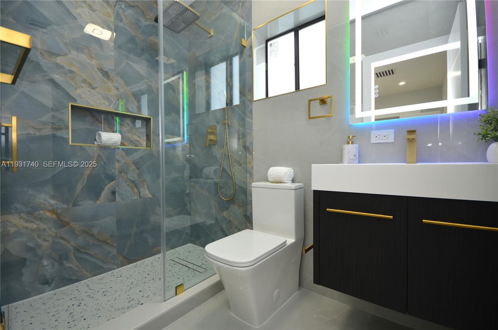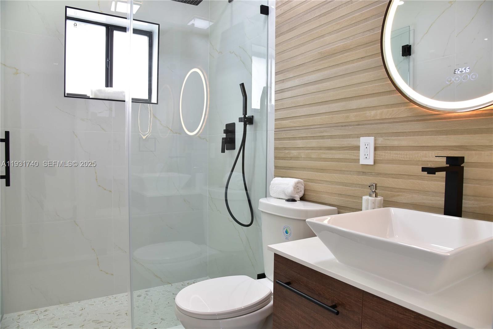 Step into modern luxury in this fully remodeled home 3-bed, 2.5-bath Miami home. A warm, inviting, contemporary masterpiece, it's perfect for discerning buyers seeking a turnkey property. The elegant interior boasts exquisite finishes. Bathrooms feature stunning Onyx Porcelain Tile, sleek glass shower doors, and illuminated, color-changing, anti-fog mirrors. Gleaming porcelain tile flows seamlessly throughout the house, leading to the chef's dream kitchen. Custom wood cabinets stretch to the ceiling, complemented by a Gun Gray Waterfall sink and stainless steel pull-out faucet. This functional kitchen opens to a wonderful terrace and huge patio, fully fenced with new, low-maintenance Dura Fence ideal for families, pets, or entertaining, and enjoying the Miami lifestyle. This home is as practical as it is beautiful. It includes a carport and driveway for 4 vehicles, secured by an automatic sliding aluminum gate. All windows and doors are impact-resistant for peace of mind. Stay cool with the new air conditioning system and the modern, remote-controlled LED Smart Bladeless Ceiling Fan. Move-in readiness with no HOA restrictions. Less than 15 min away from Oletta River State Park and the beaches, this is more than a house; it's a lifestyle. Don't miss this opportunity to own a piece of paradise in a sought-after Miami neighborhood. FHA approved!