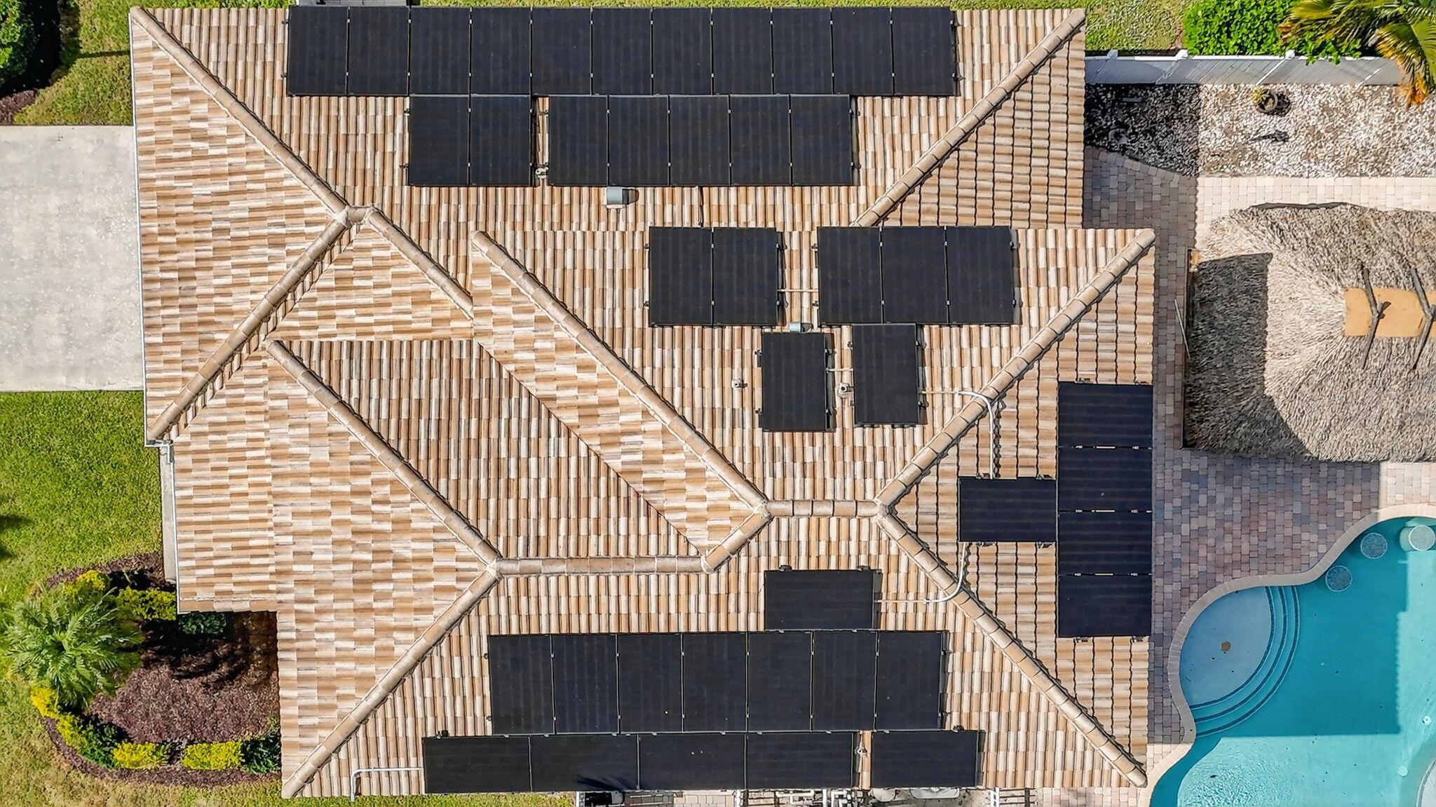 This home makes practical upgrades look intentional, not decorative. A 2020 S-tile roof with fully paid-off solar panels sets a strong foundation from day one! No lease! No assumption! Just efficiency and long-term value. An updated electrical panel, 2014 AC, and 2015 water heater confirm this is a home that's been managed, not patched together.The layout is where it separates itself. A large first-floor primary bedroom delivers real convenience a'' private, spacious, and removed from the rest of the home in a way that actually makes sense. It's a rare feature buyers ask for and rarely find, and it anchors the entire floor with comfort and functionality! Tile floors throughout the main level create clean continuity. Carpeted stairs lead to dark wood flooring upstairs ....