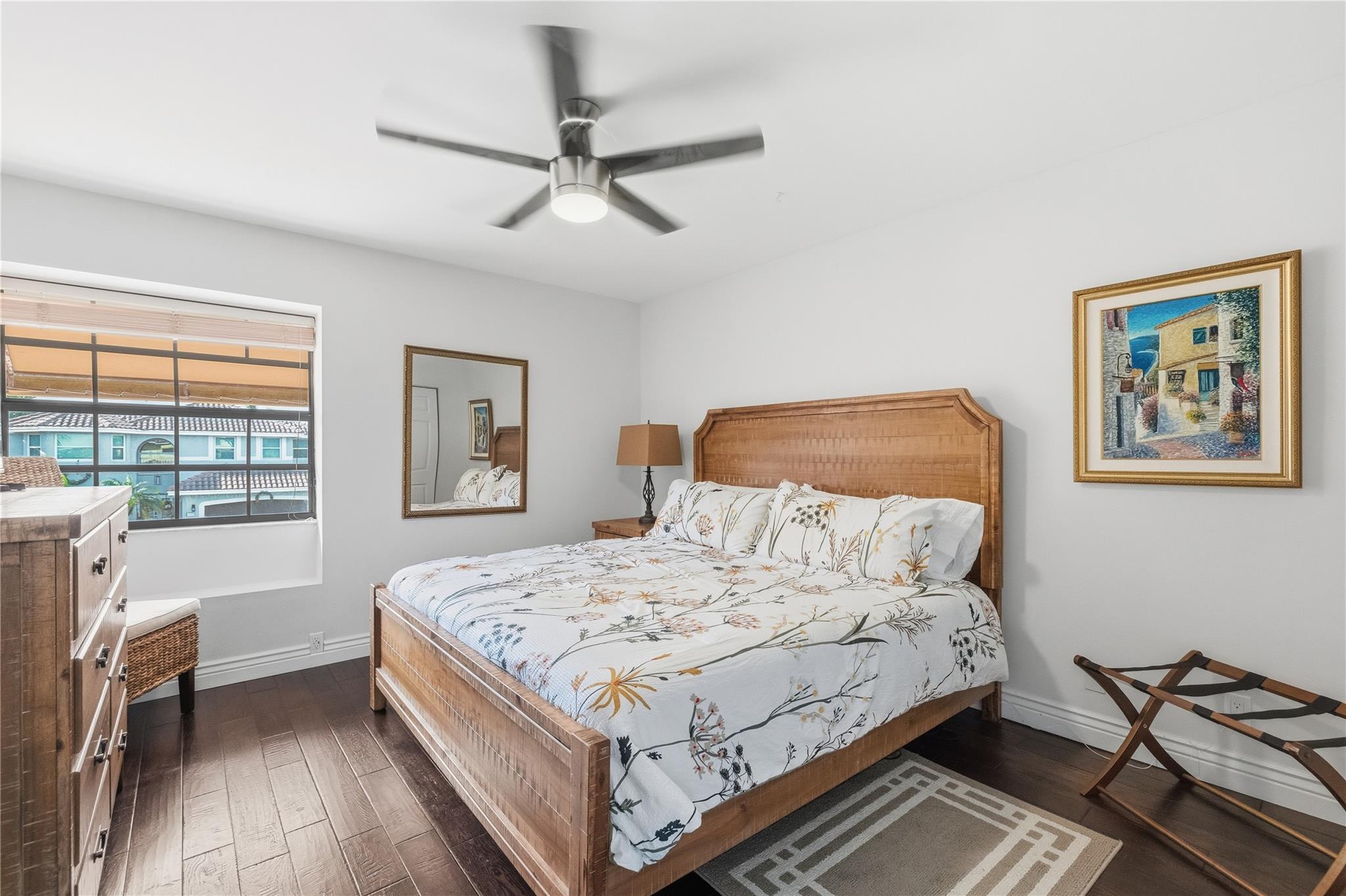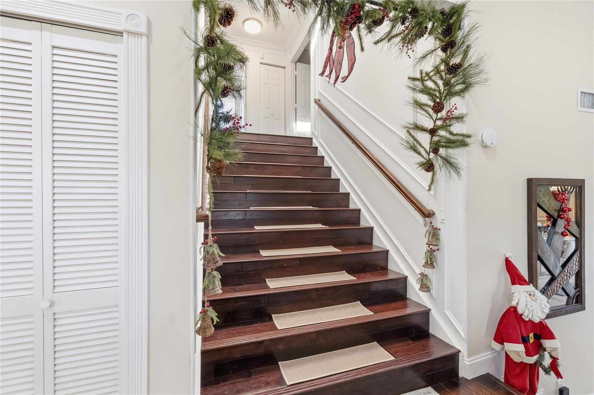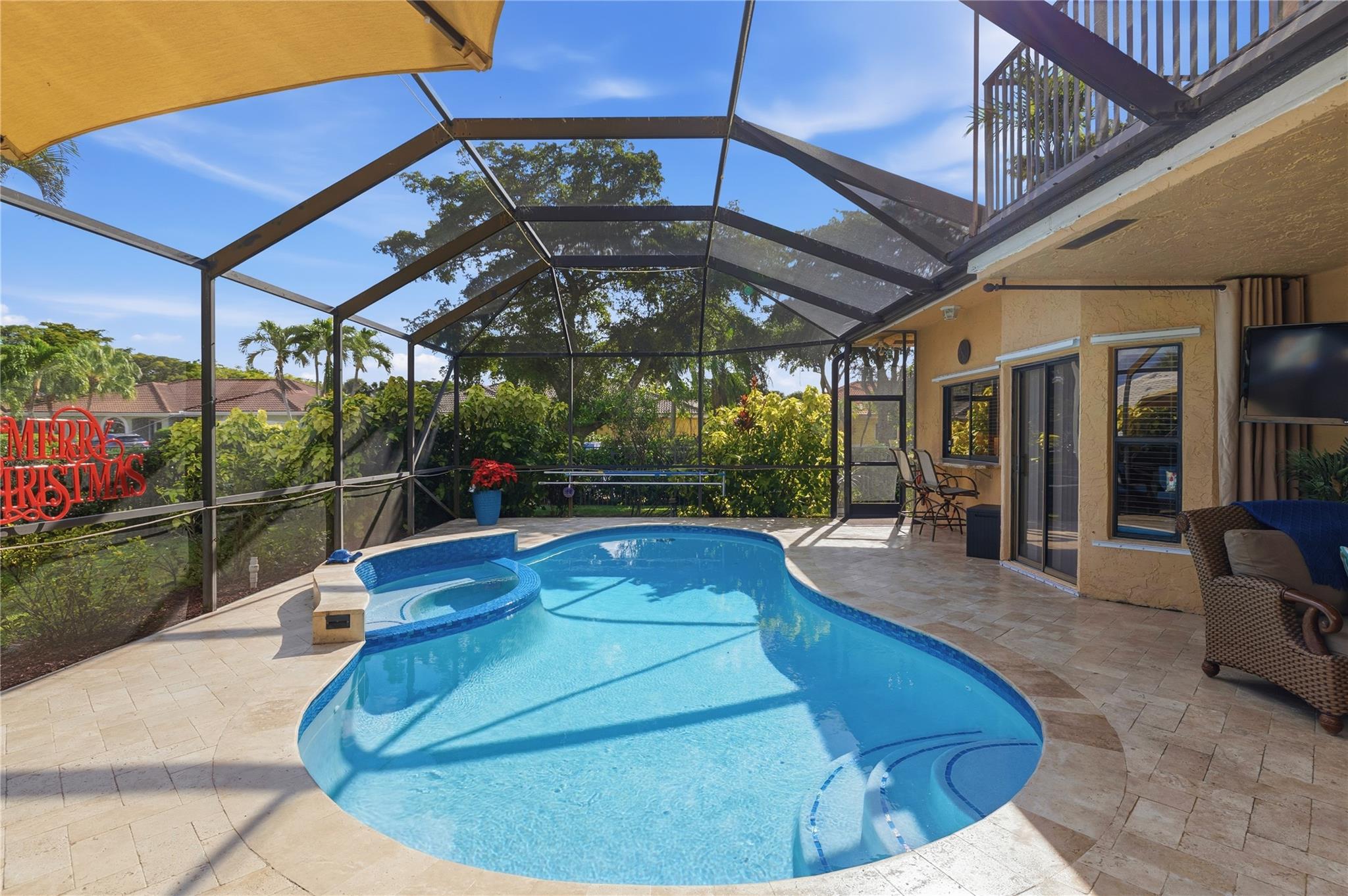 Beautifully updated 4BR/3BA home in a quiet cul-de-sac with a rare full bed & bath downstairs, perfect for guests or in-laws! Features include a double-width staircase, two built-in fireplaces, high-end kitchen w/induction flat top stove, high end appliances, pot filler, and more! Spacious family room (optional 5th bedroom) leading to a screened-in, newly installed travertine patio & renovated heated pool (2023). Upstairs, the large primary suite offers a walk-in closet, remodeled bath, and covered balcony overlooking the salt water pool. Low HOA, great schools, all closets have built-ins, corner fenced in lot, new awnings, and high speed fiber option internet/cable. This is a GREAT neighborhood for pets & families. Seller-preferred lender offers up to $5,000 buyer credit at no cost!