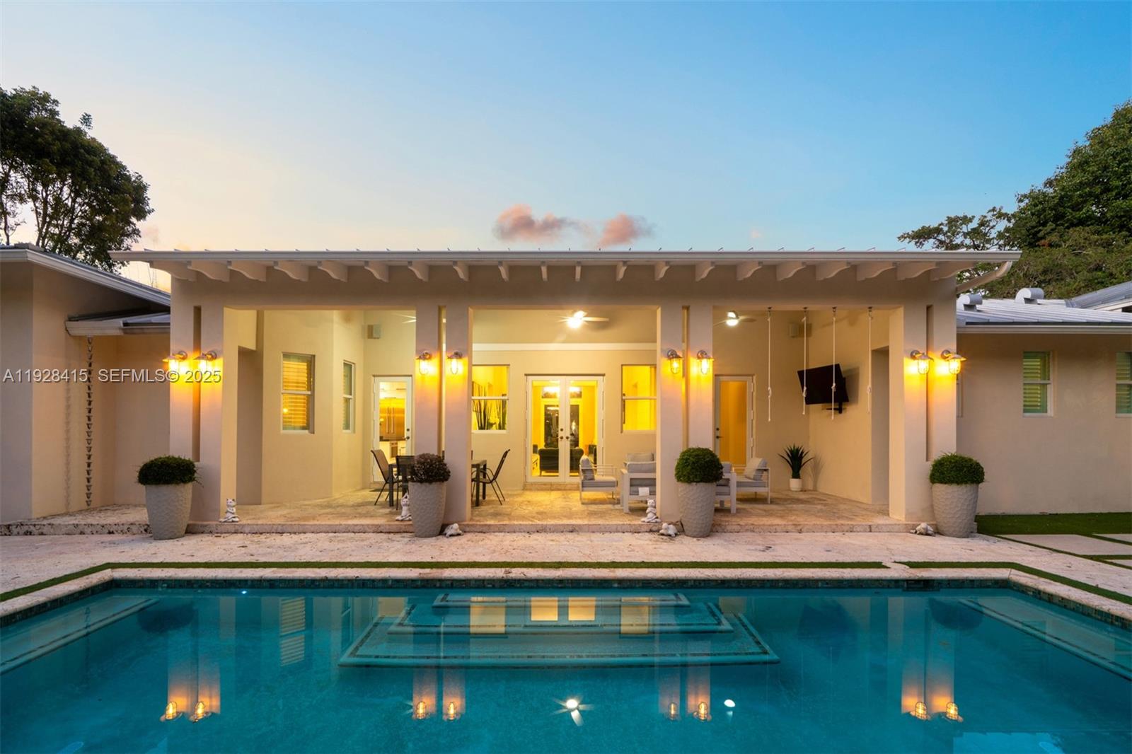 Gorgeous custom-built one-story estate tucked within a private gated cul-de-sac of just four residences in South Miami. Inspired by timeless Bahamian design, this impeccably crafted home welcomes you through an elegant foyer into expansive living spaces filled with natural light and tranquil garden views. Exceptional finishes are showcased throughout, including a gourmet chef’s kitchen with custom cabinetry, Thermador and Sub-Zero appliances, walk-in pantry, and breakfast area that opens seamlessly to a spacious family room. The primary suite is a true retreat, offering a sitting area, generous walk-in closet, and spa-like bath adorned with Cuban tile floors, a floating soaking tub, and glass-enclosed shower. Designed for effortless entertaining, the backyard features a covered terrace, summer kitchen, cabana bath, resort-style pool with waterfall, playground, in-ground trampoline, and basketball court. Additional highlights include a dedicated home theater, impact windows and doors, a metal roof, marble floors, and a two-car garage.