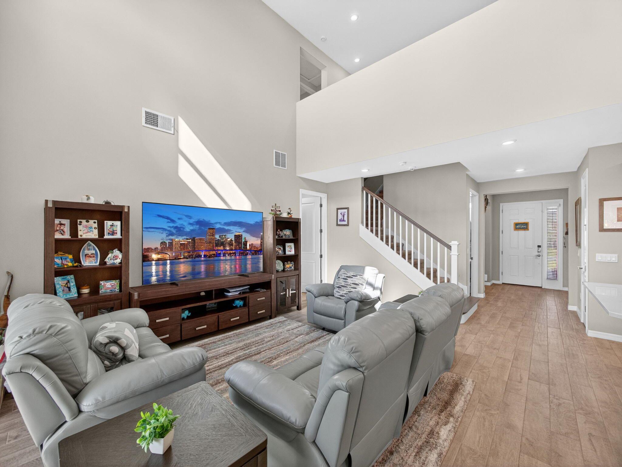 Why wait for the long process of construction when you can enjoy this beautiful home now! The Taylor Morrison Bonaire floor plan at Central Park blends traditional charm with modern livability. The main level centers around an open kitchen, casual dining area, and a soaring two-story gathering room with a pocket sliding glass door. The kitchen features an angled island and pantry, while the downstairs owner's suite offers convenience, privacy, and two generous walk-in closets. Upstairs, the loft overlooks the living area and leads to a dedicated study, plus three secondary bedrooms and two full baths. Thoughtful upgrades include 8' interior doors, double doors on the study, and a converted dining room now used as a custom home office. The fully fenced backyard adds extra comfort and ease.