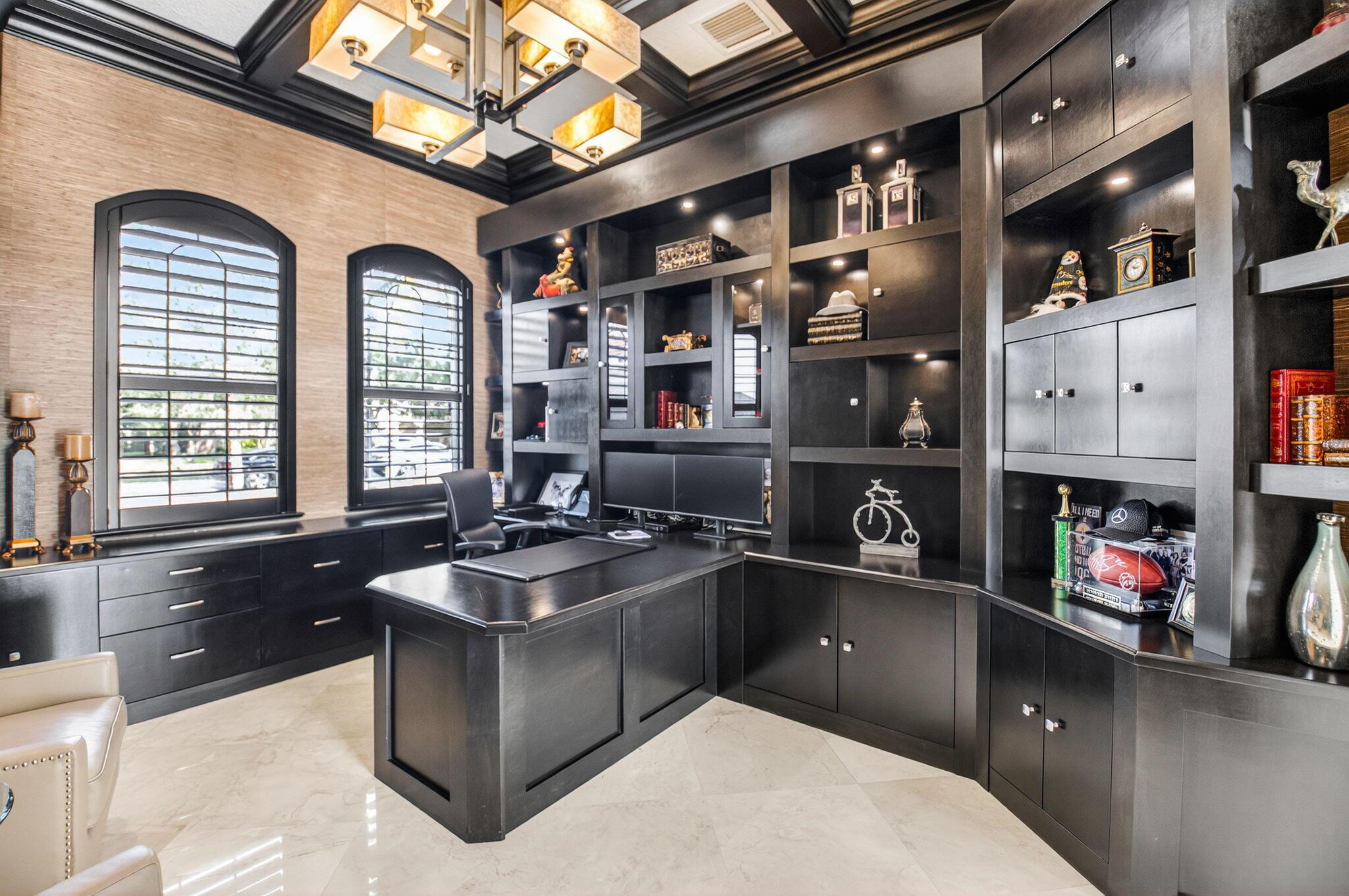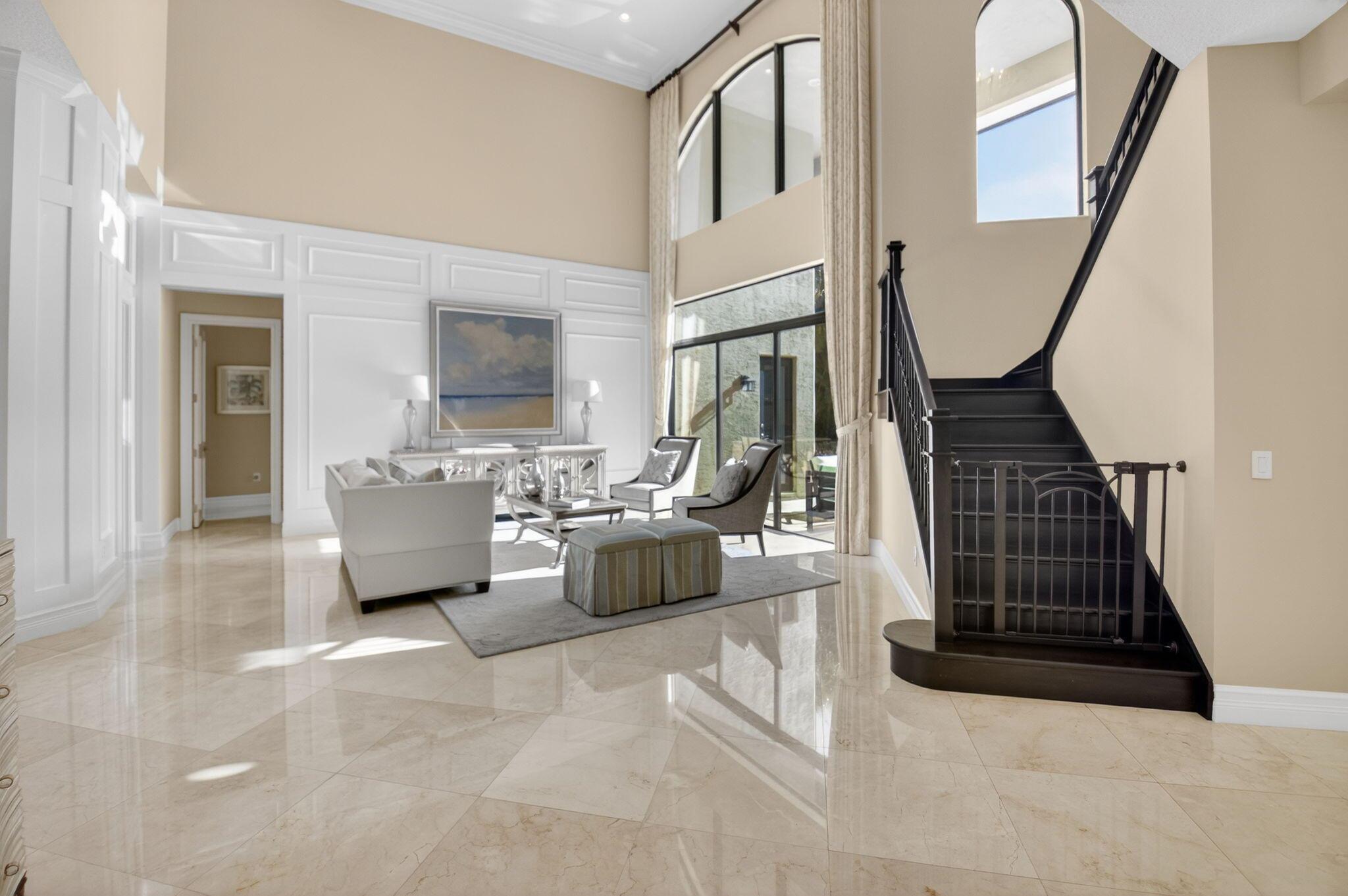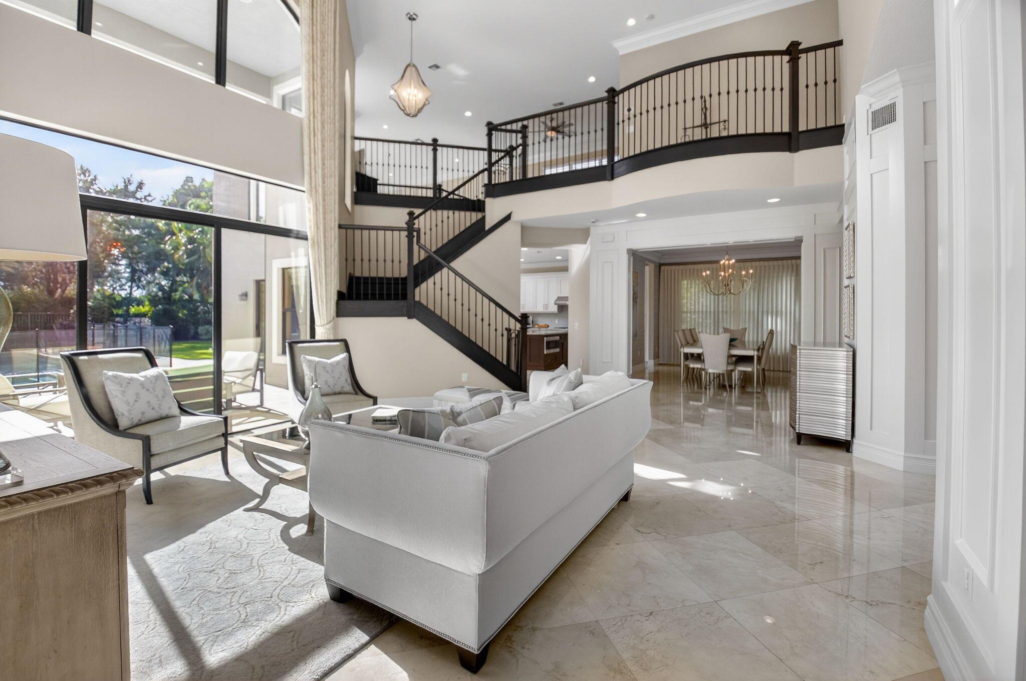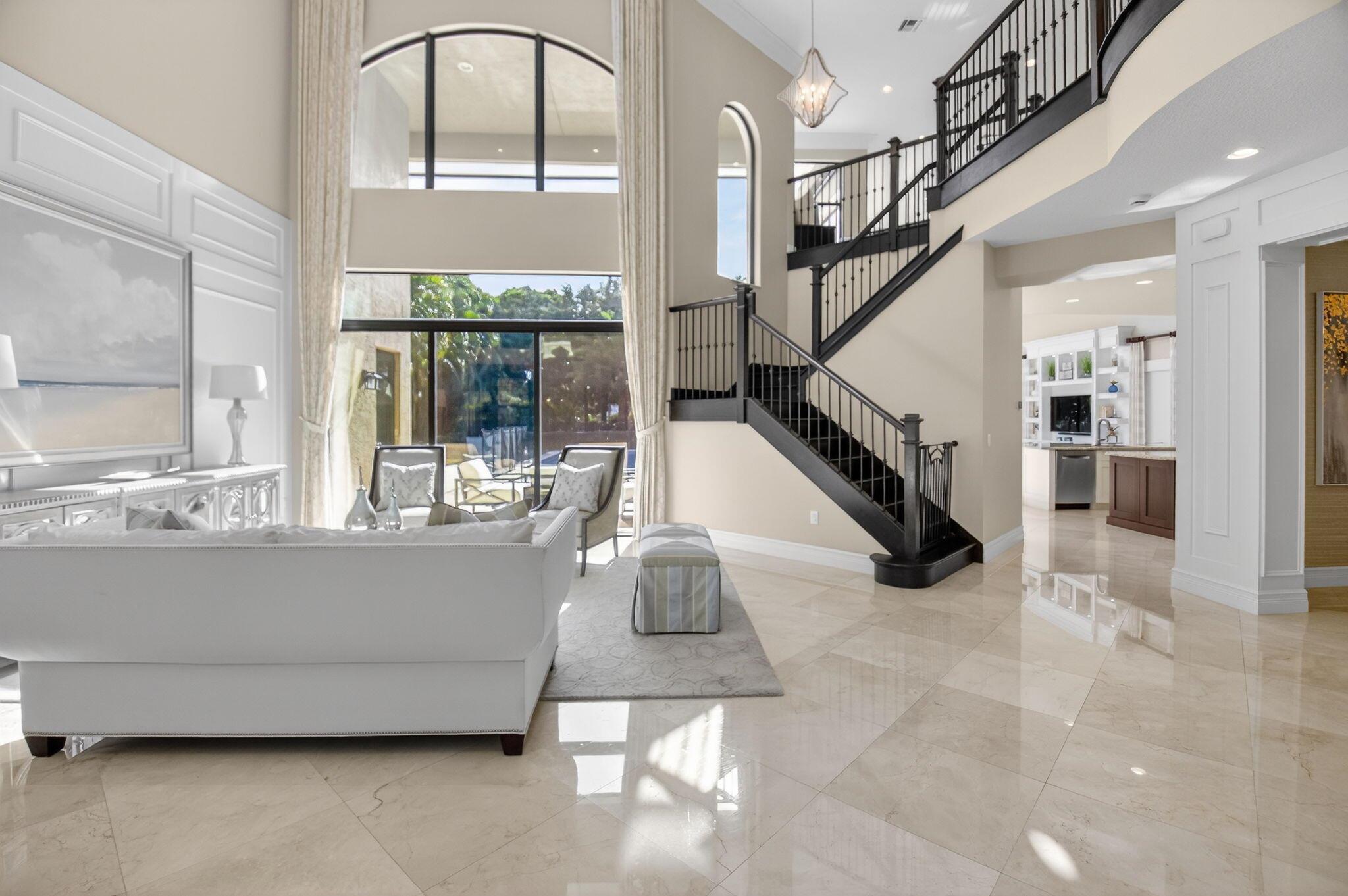 Enjoy luxury living in this beautiful 5-bedroom Colonnade model. Enter through custom mahogany front doors to soaring ceilings, open living spaces, & high-end designer finishes. The main floor features a formal living & dining room, guest suite, a primary suite, & well-appointed office. The gourmet kitchen features Bosch and Wolf appliances, large center island, walk-in pantry & breakfast area open to the family room. Beautifully landscaped backyard with oversized heated saltwater pool & spa,spacious patio, putting green, lots of green space with astro turf. All impact glass, solid core doors, designer lighting, fans, custom blinds & window treatments, whole house generator, built-ins, crown moldings, surround sound theater in upstairs bedroom, large loft area, & new tankless water heate