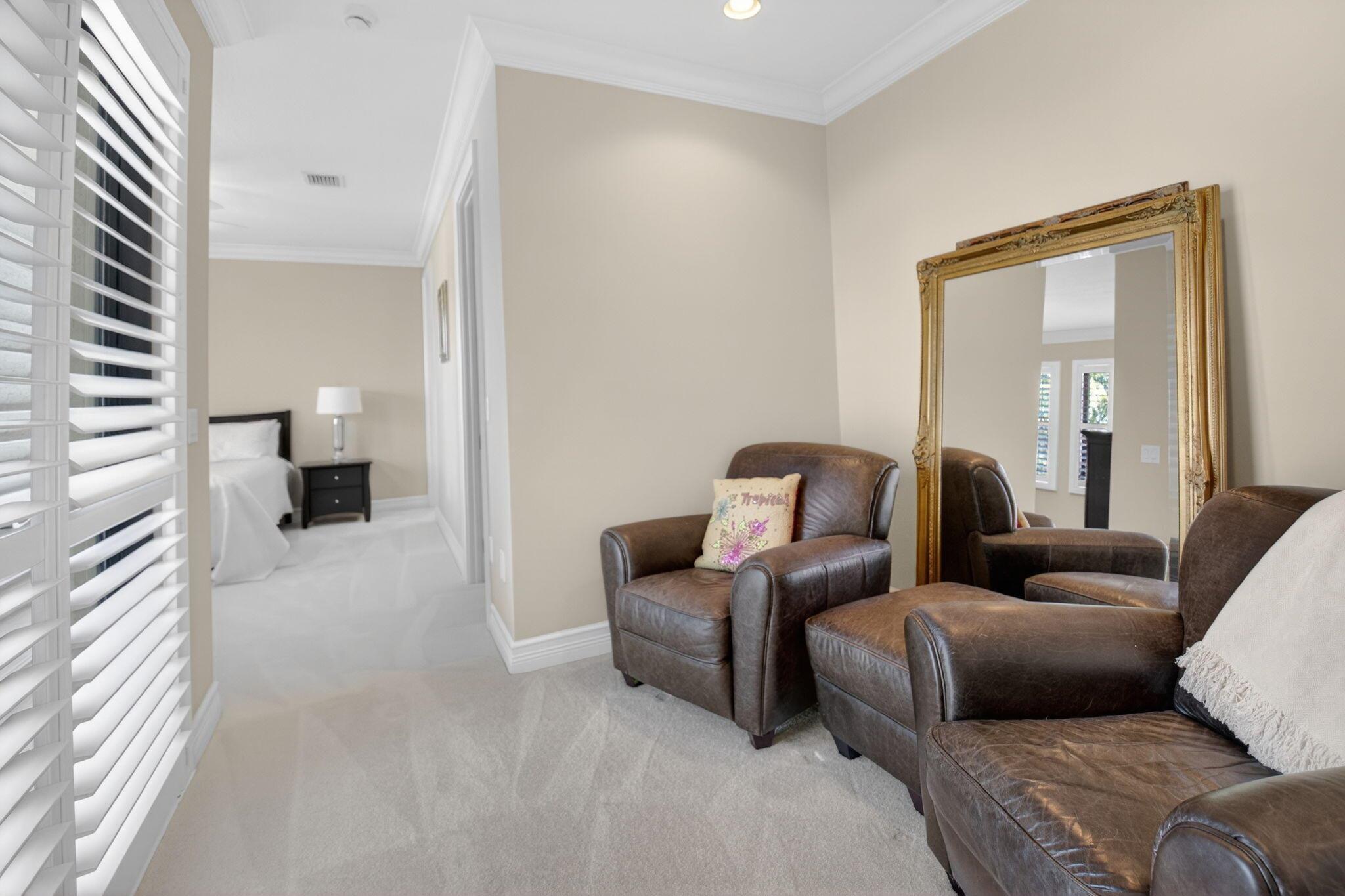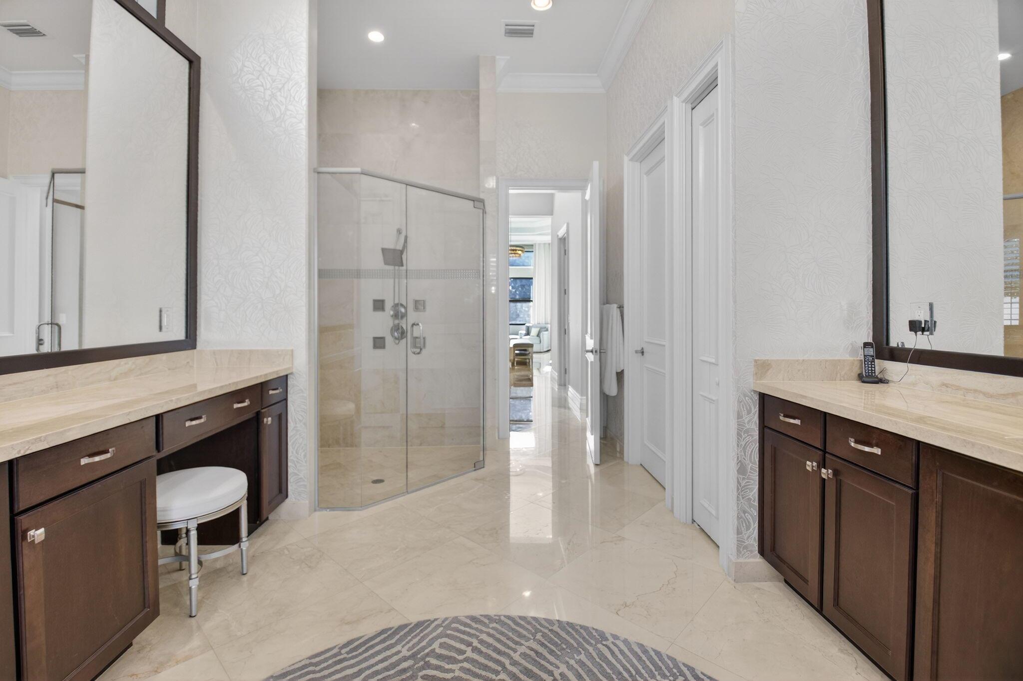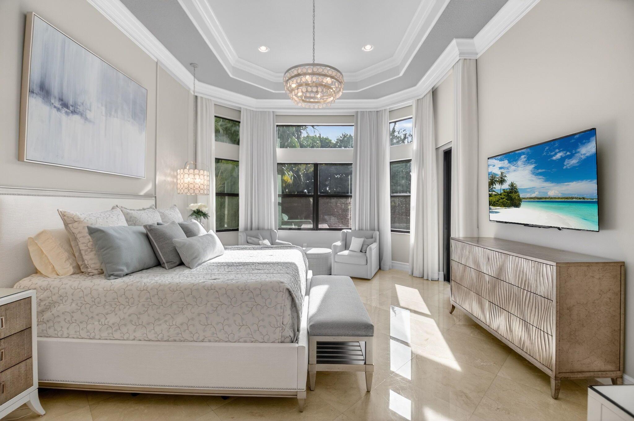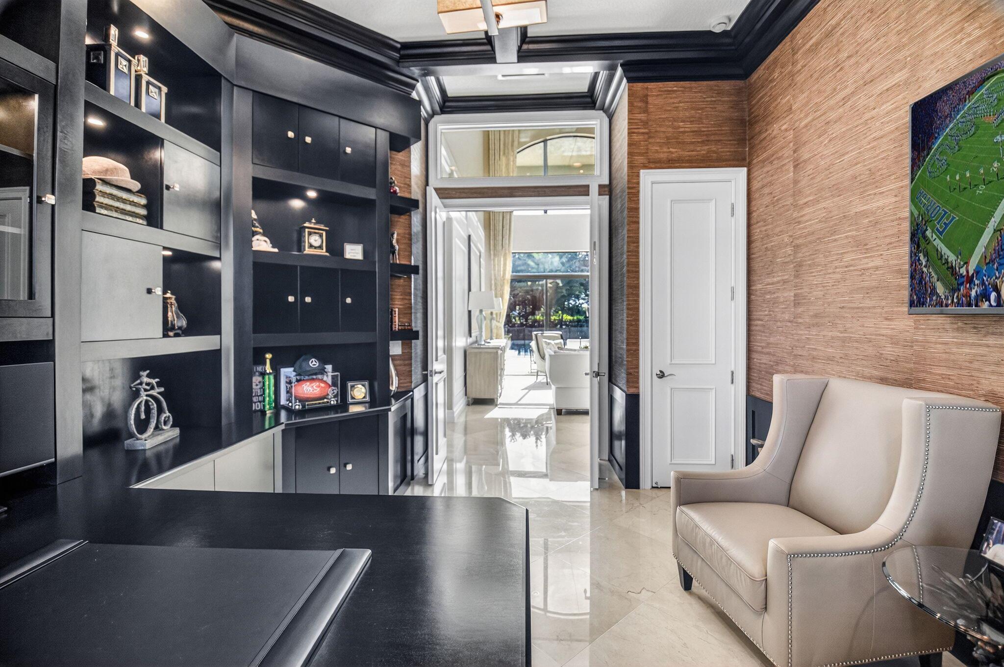 Enjoy luxury living in this beautiful 5-bedroom Colonnade model. Enter through custom mahogany front doors to soaring ceilings, open living spaces, & high-end designer finishes. The main floor features a formal living & dining room, guest suite, a primary suite, & well-appointed office. The gourmet kitchen features Bosch and Wolf appliances, large center island, walk-in pantry & breakfast area open to the family room. Beautifully landscaped backyard with oversized heated saltwater pool & spa,spacious patio, putting green, lots of green space with astro turf. All impact glass, solid core doors, designer lighting, fans, custom blinds & window treatments, whole house generator, built-ins, crown moldings, surround sound theater in upstairs bedroom, large loft area, & new tankless water heate
