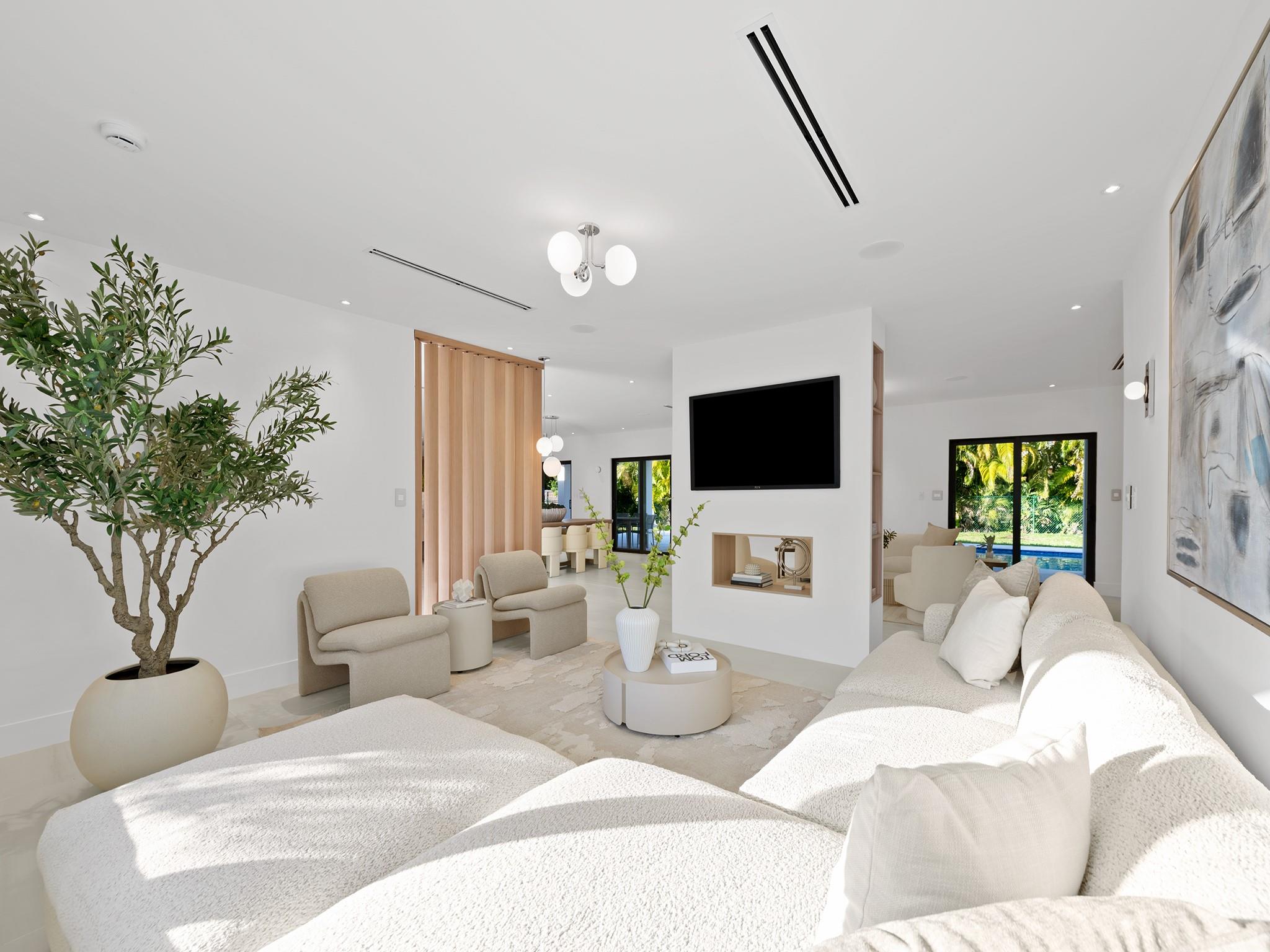 Experience the best of Pinecrest in this fully remodeled 4-bedroom, 3.5-bath home tucked away on a serene cul-de-sac. Offering 2,952 sq ft of living space and a 2-car garage, this residence features high-end finishes and modern systems throughout. Updates include new ECO hurricane windows and doors, a newer roof, two new A/C systems, HVAC ductwork, electrical, plumbing with PVC sewer lines, and a new water heater. The kitchen flows into living areas with European porcelain tile, and bathrooms feature marble with European doors. Three guest bedrooms include one en suite. Outside, enjoy a newly diamond-brite pool, marble pavers, and a sprinkler system. Located near parks and top-rated schools, this home blends luxury, comfort, and effortless living in an exceptional neighborhood.