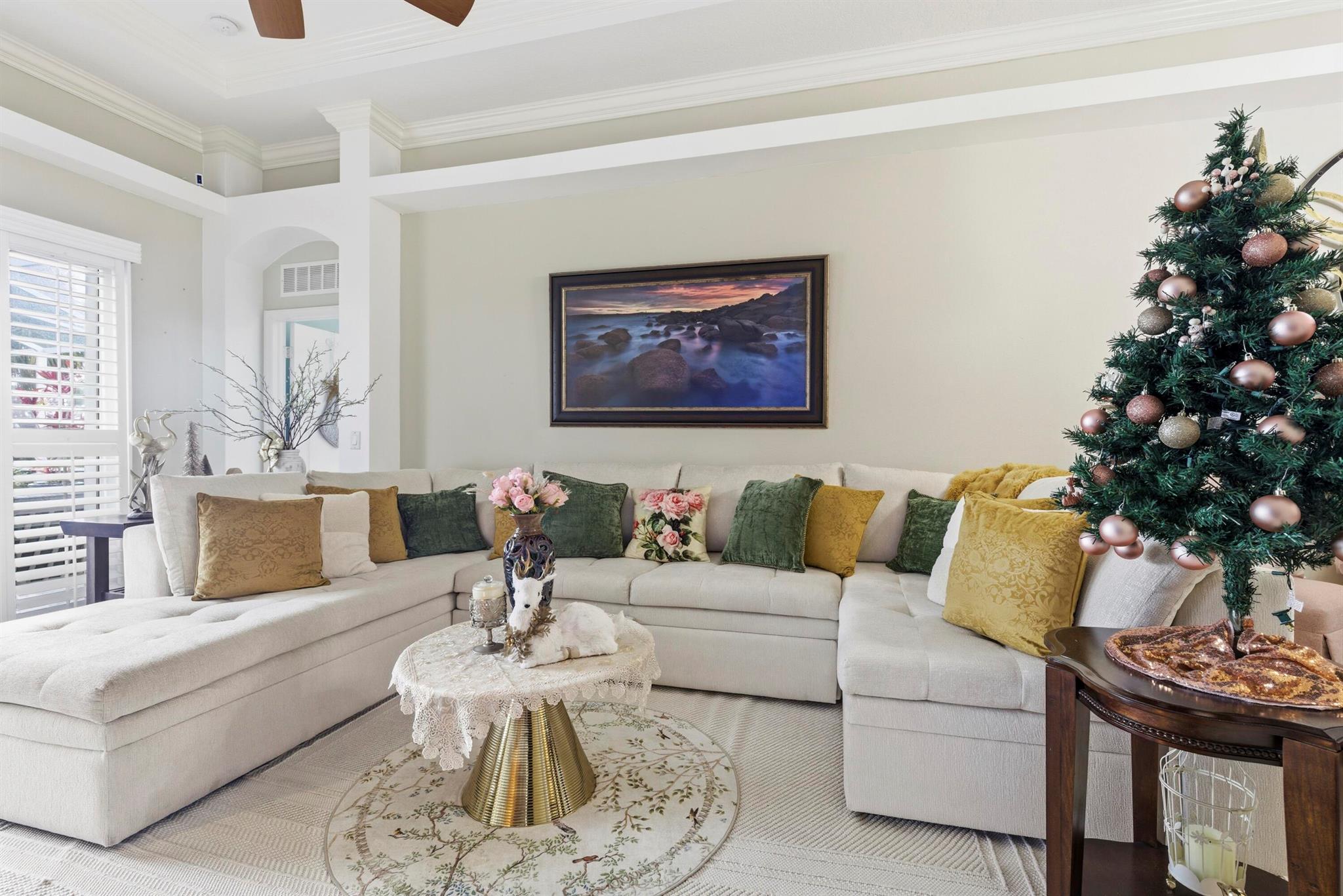 This exceptional home in Heritage Oaks pairs modern construction with extensive upgrades, highlighted by a truly custom resort-style pool and spa. Designed as the centerpiece of the property the enclosed pool features a raised deck with eight cascading waterfalls, finished in Chicago-style brick and overlooking a peaceful lake, creating a striking outdoor retreat ideal for both relaxation and entertaining. The custom outdoor summer kitchen is equally impressive, offering granite countertops, a refrigerator, side burner, and commercial-quality BBQ grill. Inside the home showcases tile and marble flooring, granite countertops in the kitchen and front bath, and lighted plant shelves. With numerous enhancements and priced below the cost of duplication, this home presents an great opportunity.