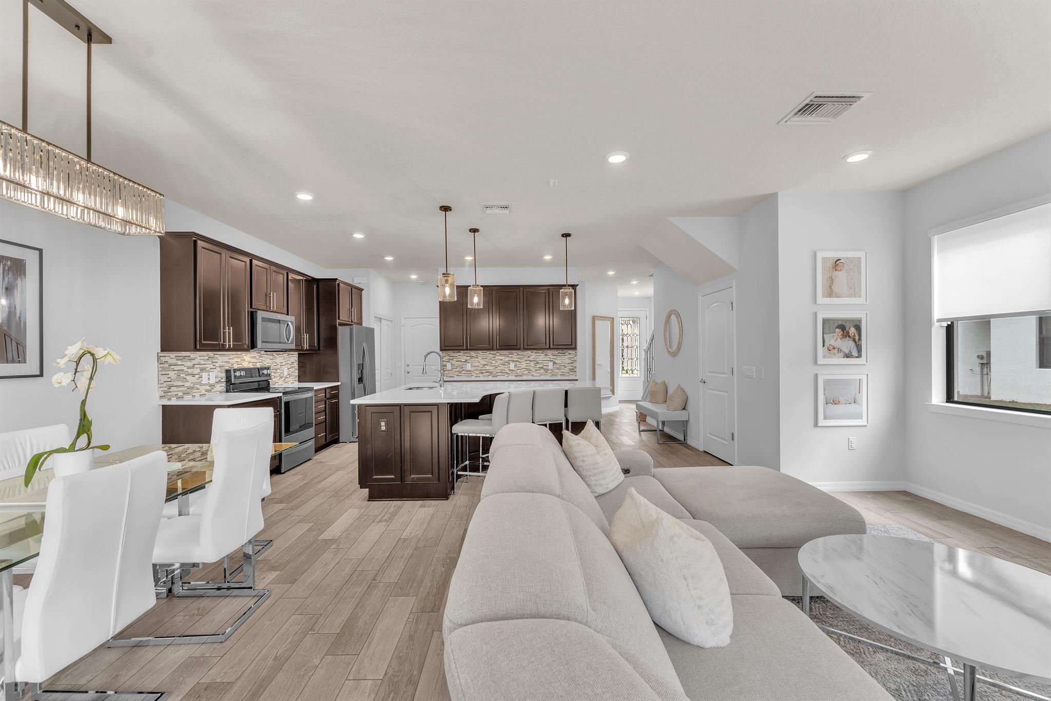 Welcome to The Fields -- where luxury living meets family fun!This sun-filled 3-bedroom, 2.5-bath corner townhome (built 2018) offers a bright, open layout with no carpet, tons of natural light, and a spacious entertainment kitchen perfect for hosting. The open-concept kitchen flows effortlessly into the living and dining areas, making it ideal for family gatherings, game nights, and entertaining guests.Just 5 minutes from the Turnpike, it's perfect for easy commuting while enjoying a peaceful, resort-style vibe.Low HOA - $309/month includes two clubhouses, pools, gyms, fire pits, basketball, pickleball & tennis courts, playgrounds, and entertainment rooms. Endless fun for kids, adults, and guests alike!Pet-friendly & family-friendly, and best of all --offered FULLY FURNISHED