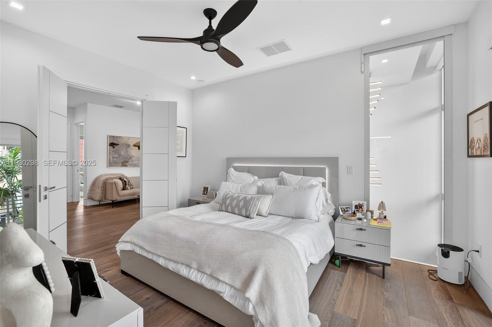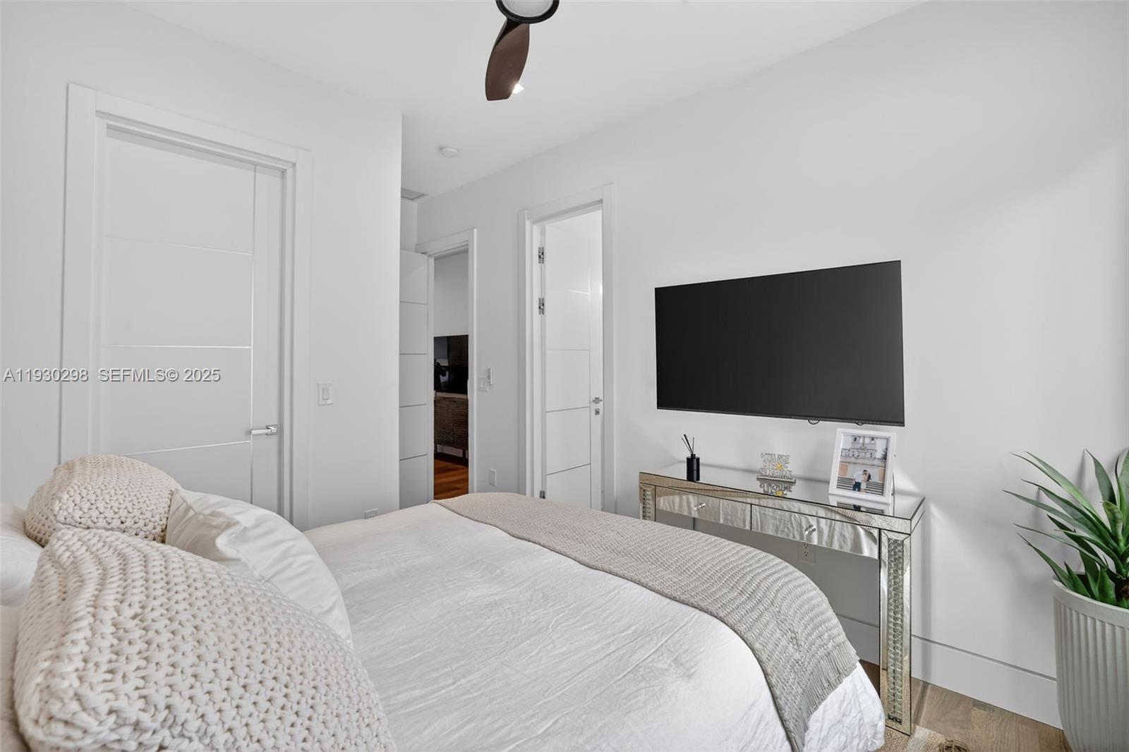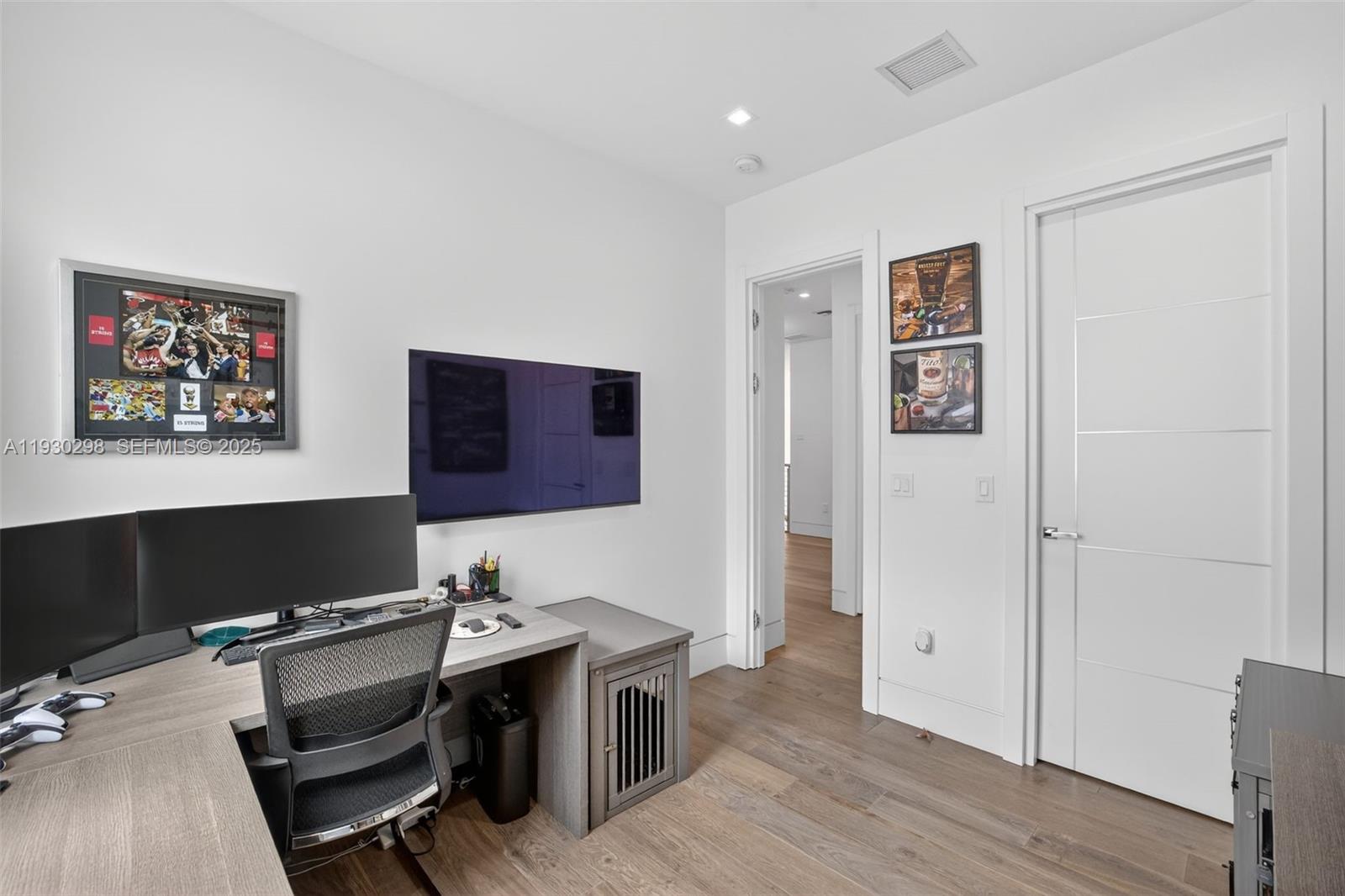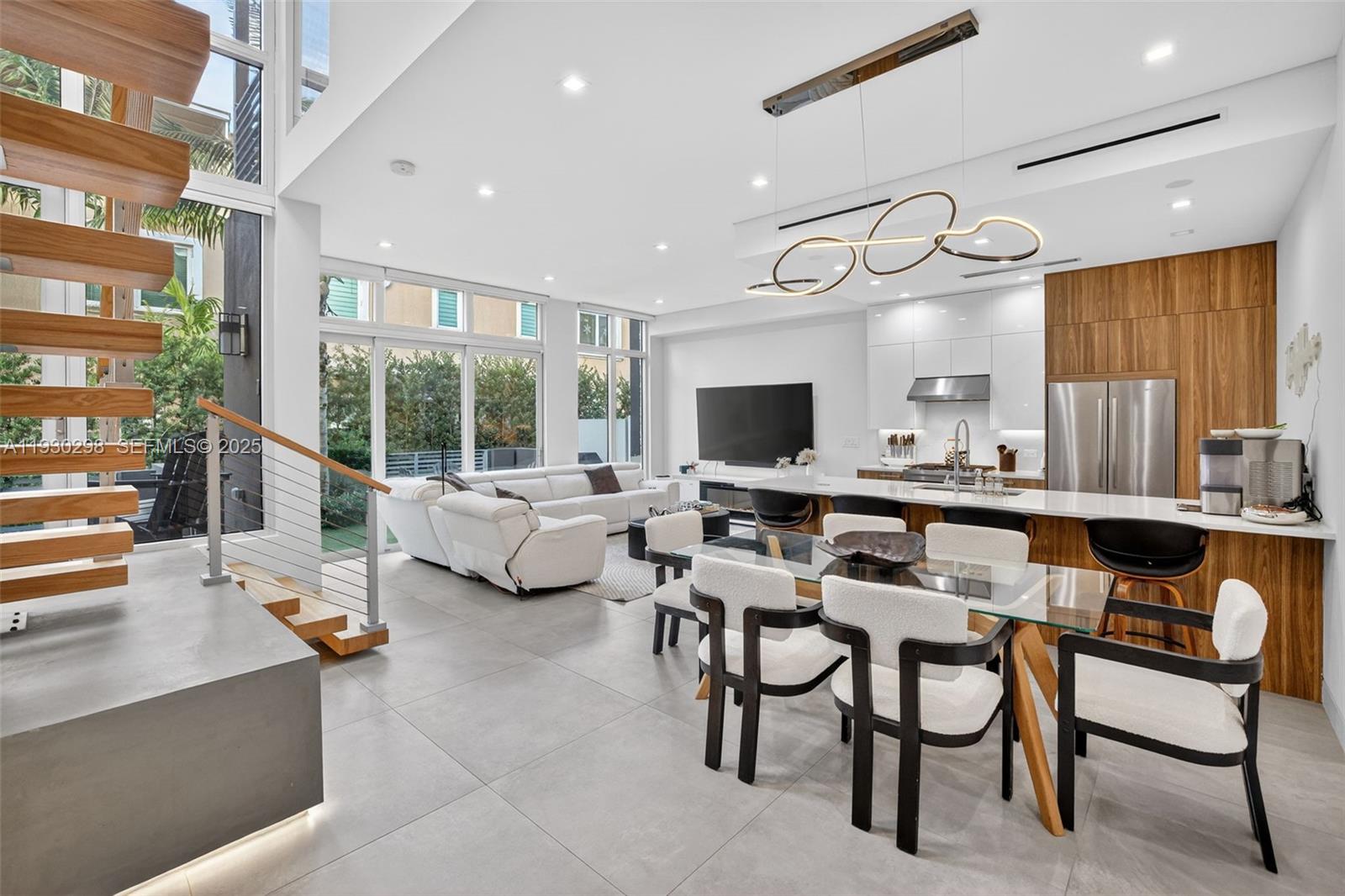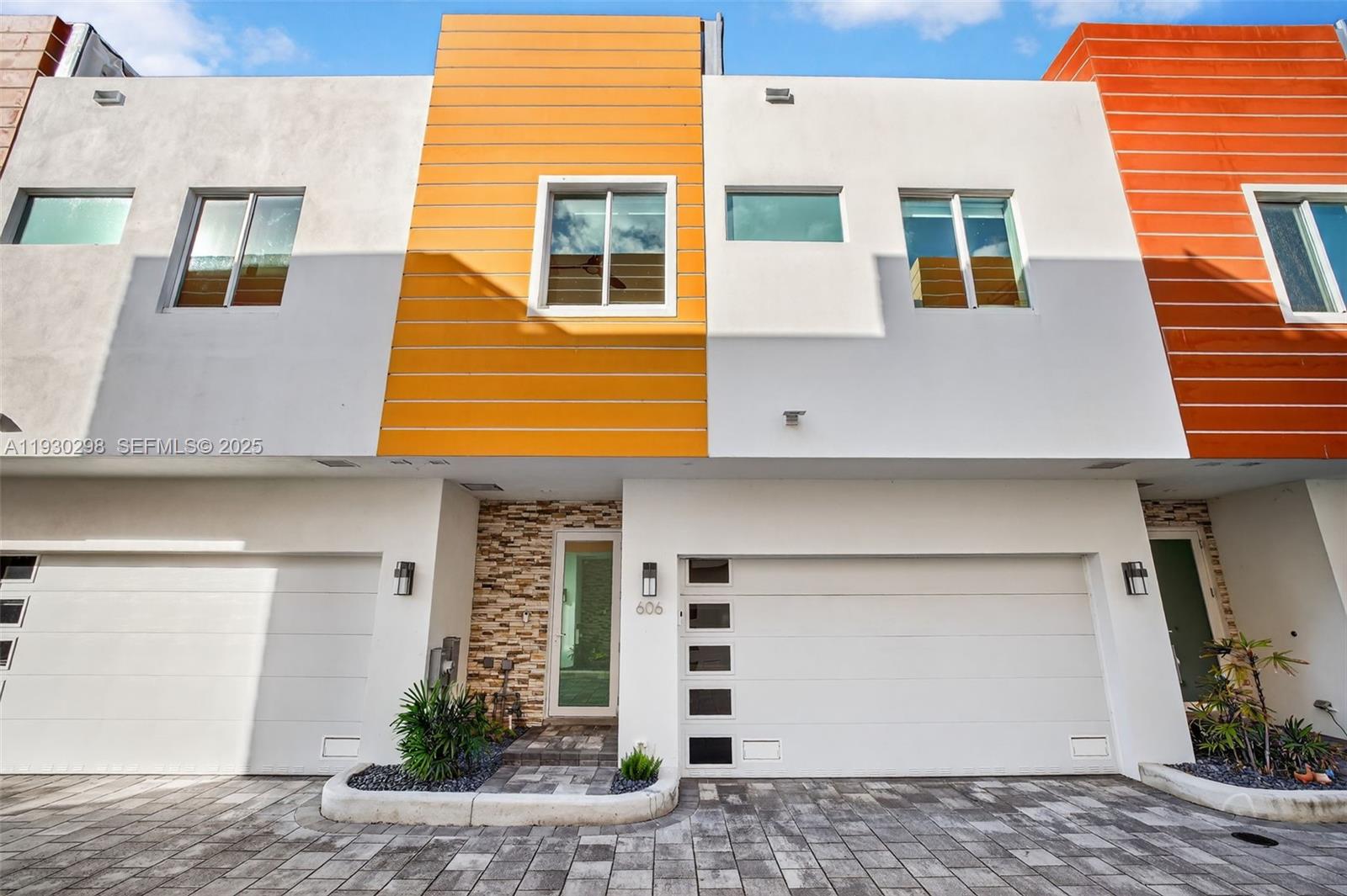 Impeccably maintained modern townhome located in a boutique, eight-unit Victoria Park community. Enter through a dramatic glass-front entry spans two stories, creating a bright, airy atmosphere and effortless indoor-outdoor flow. The open-concept layout is enhanced by soaring 10+ foot ceilings and abundant natural light. A statement floating staircase with stainless accents anchors the main living space. The designer kitchen is outfitted with JennAir stainless appliances, gas cooking, Dell Anno Cabinetry and quartz counter seating. The primary suite serves as a private retreat with its own balcony, walk-in closet, dual vanities, and a spacious glass-enclosed shower and tub. A second-floor loft offers flexible use as a media room or office separating the Primary from the additional two bedrooms. Move right in as this unit comes with custom built out closets, motorized shades, smart home features throughout, and a tankless gas water heater for your convenience. Unbeatable walk-to location near Fort Lauderdale’s newest dining, fitness, shopping, and everyday conveniences. Right around the corner from Holiday Park and the Florida Panthers Practice Facility! Sqft. from Developer is believed accurate.