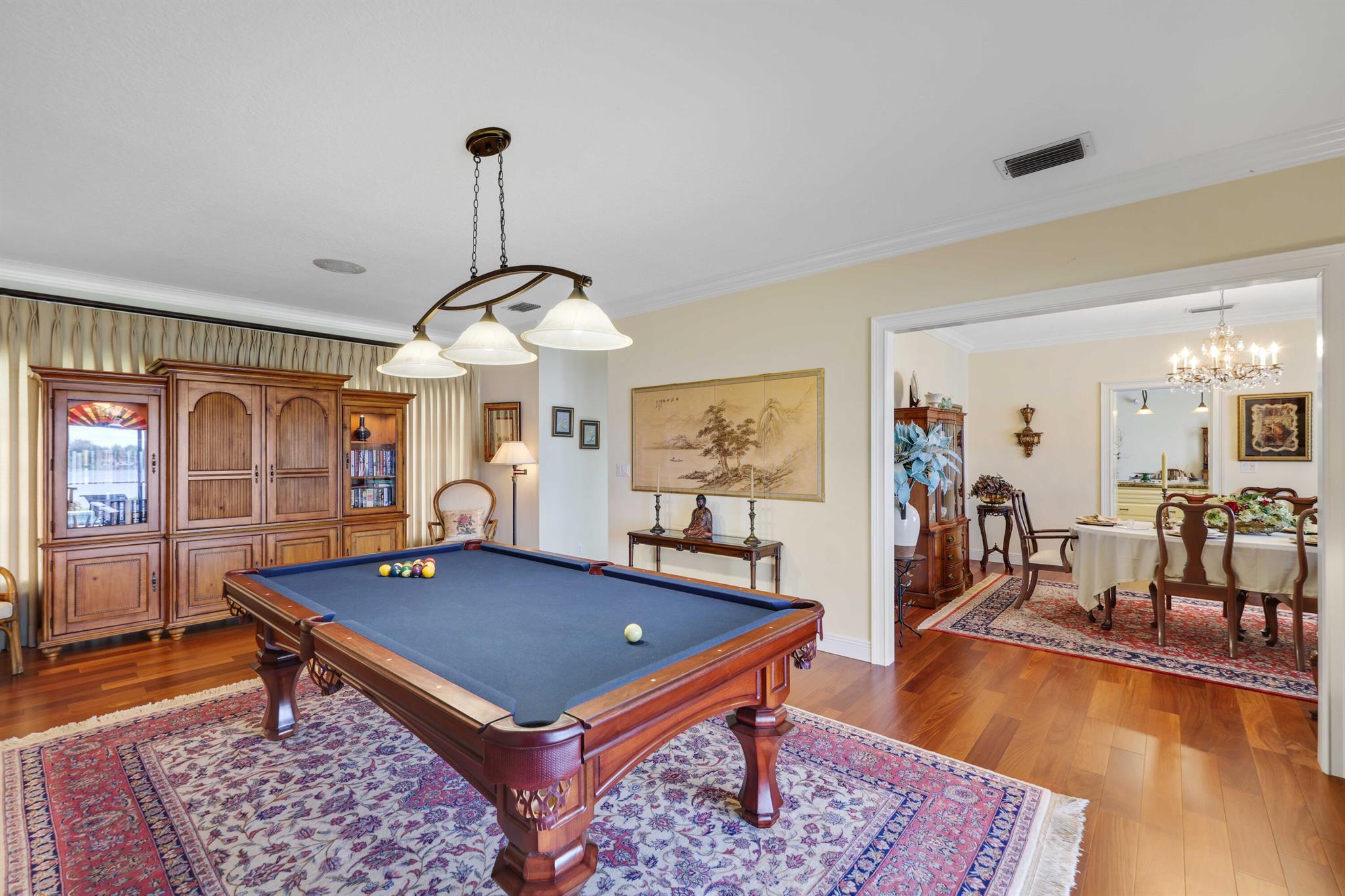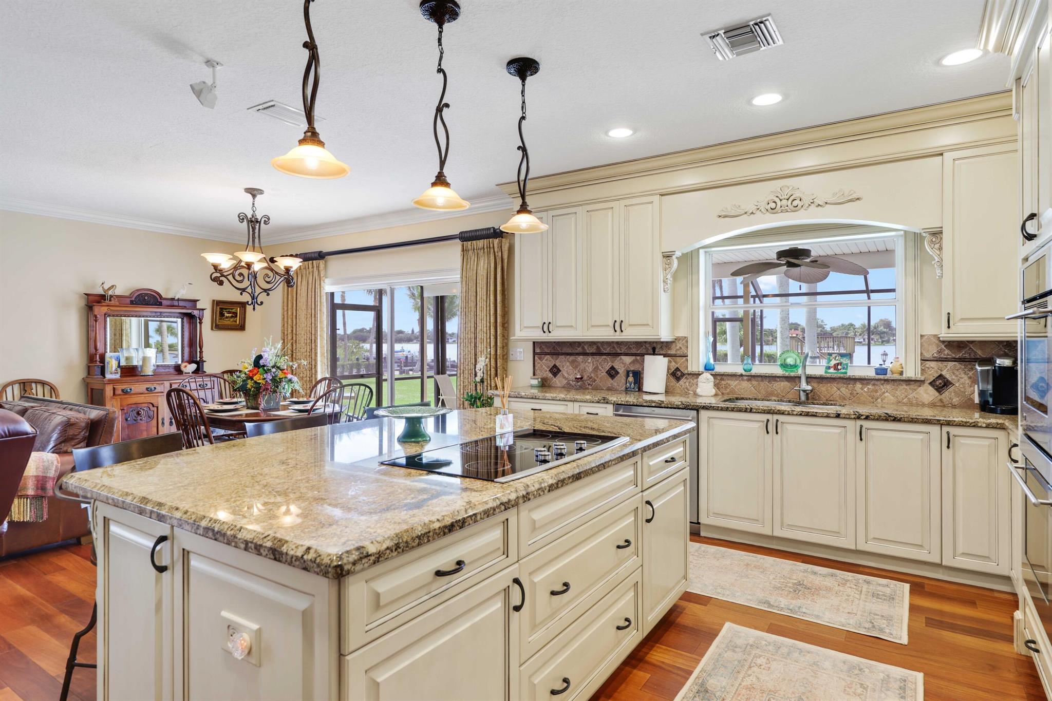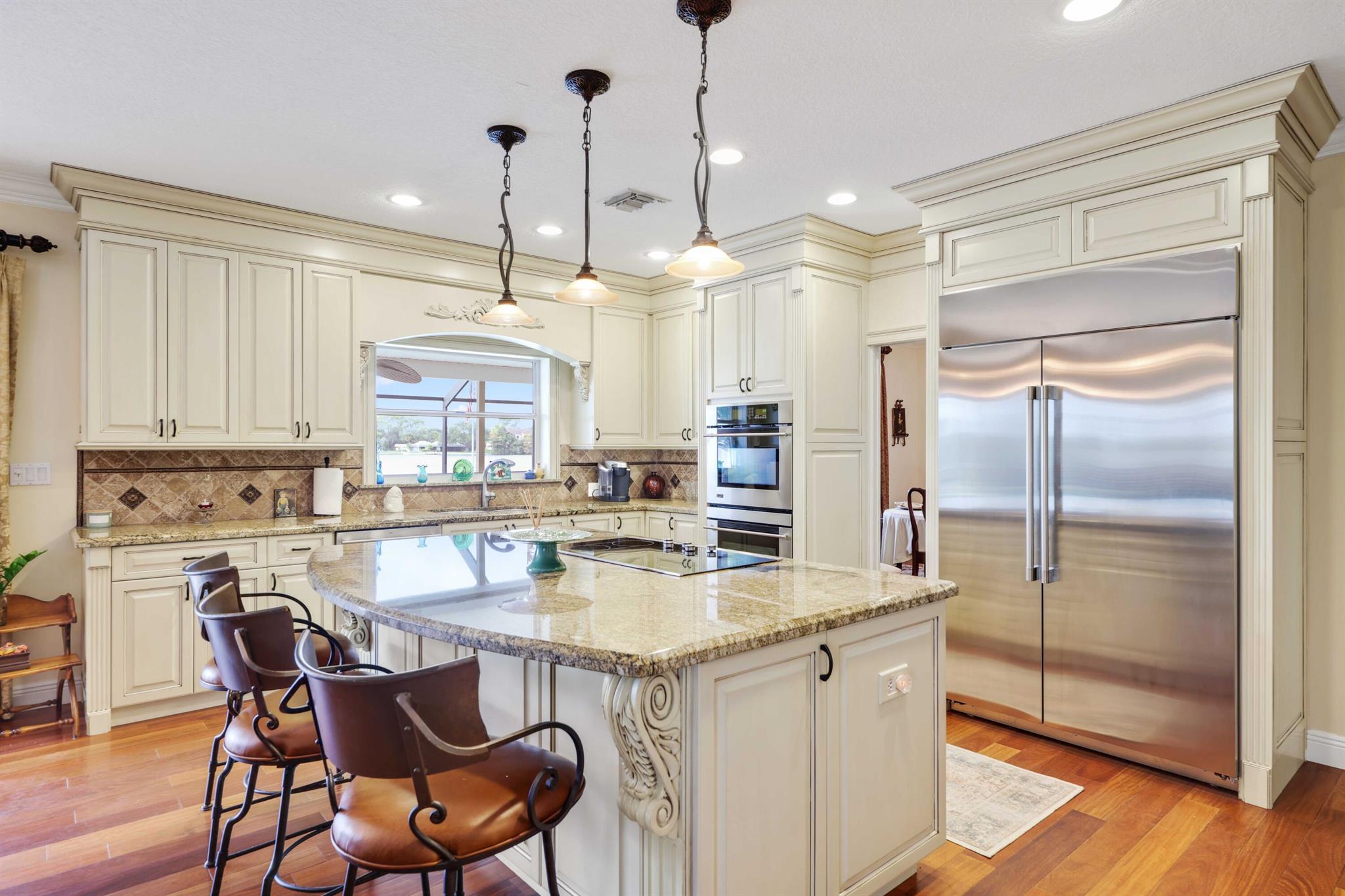 This Lake Osborne waterfront home is a boater's dream with your 2-story TimberTech dock ideal to cruise, paddle, or fish. The lift can accommodate up to a 25-foot boat, and the sun deck is the perfect spot for sunsets and watching the boat parades. Remodeled 4-bedroom 2 1/2 pool home is on 0.44 acres with a seawall, and has 180-degree water views. There are Brazilian teak hardwood & quality, engineered wood floors, crown molding, Bose surround sound & brand new metal roof. If you love to entertain, you will love the kitchen with granite, custom cabinetry, stainless steel appliances, & double ovens. Primary suite with Juliette balcony; morning kitchen, Jacuzzi tub, frameless glass shower, and dual vanity. Screened lanai, heated self-cleaning saltwater pool with new SunDek, tile & coping.
