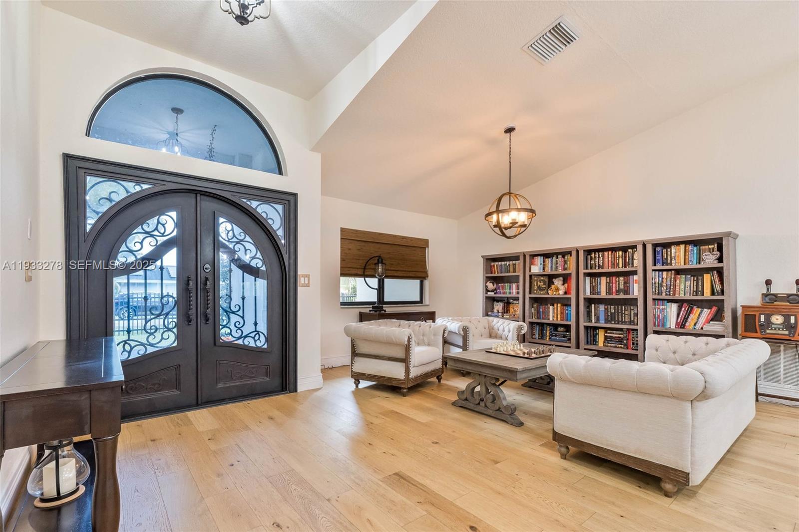 This is the one you have been waiting for! Move in tomorrow if you like. Beautiful Spanish-style gated villa situated on a private ½-acre lot with mature tropical landscaping, including four varieties of avocado trees and two types of mango trees. This home features a JUST INSTALLED flat black clay roof with rake edges (Dec. 2025)—a major upgrade offering both style and peace of mind. The interior was remodeled into a bright open-concept layout connecting the living room, family room, dining area, and kitchen. The kitchen offers custom Thomasville cabinetry with lighting, Royal Blanc quartz countertops, butcher block island, pot filler, custom pendant lighting, and a KitchenAid appliance package including double oven, warming drawer, wine fridge, and dishwasher. All bathrooms were fully renovated with custom vanities, vessel sinks, jet tubs, glass shower doors, and updated fixtures. Luxury vinyl plank flooringruns throughout the home. Additional improvements include impact windows and doors, custom iron impact front door, new AC, updated electrical panel, new garage door, recessed lighting, updated fans and fixtures, and new blinds. Exceptional outdoor living with an expanded concrete patio, pergola with fan and movie projector, second pergola with fire pit, and a 16x20 shed—ideal for entertaining or relaxing in your own private retreat.