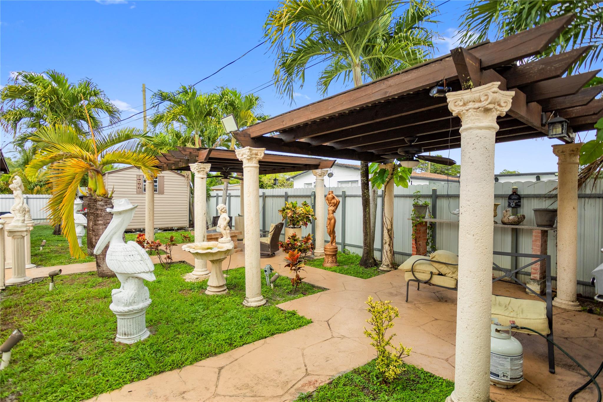 Beautiful single-family home located in the heart of Miami Gardens! This spacious property features 3 bedrooms and 3 bathrooms, plus an additional outdoor bathroom, perfect for pool days and entertaining. Enjoy a private pool area with a fully equipped outdoor kitchen, ideal for gatherings and family enjoyment. The home offers plenty of outdoor space, surrounded by fruit trees, creating a peaceful and enjoyable environment. New roof installed one year ago with permits, providing peace of mind to the new owner. Excellent location, conveniently close to Florida’s Turnpike and just minutes from Hard Rock Stadium, shopping, dining, and major highways. CORNER LOT !! A must-see property with great potential—don’t miss this opportunity!
