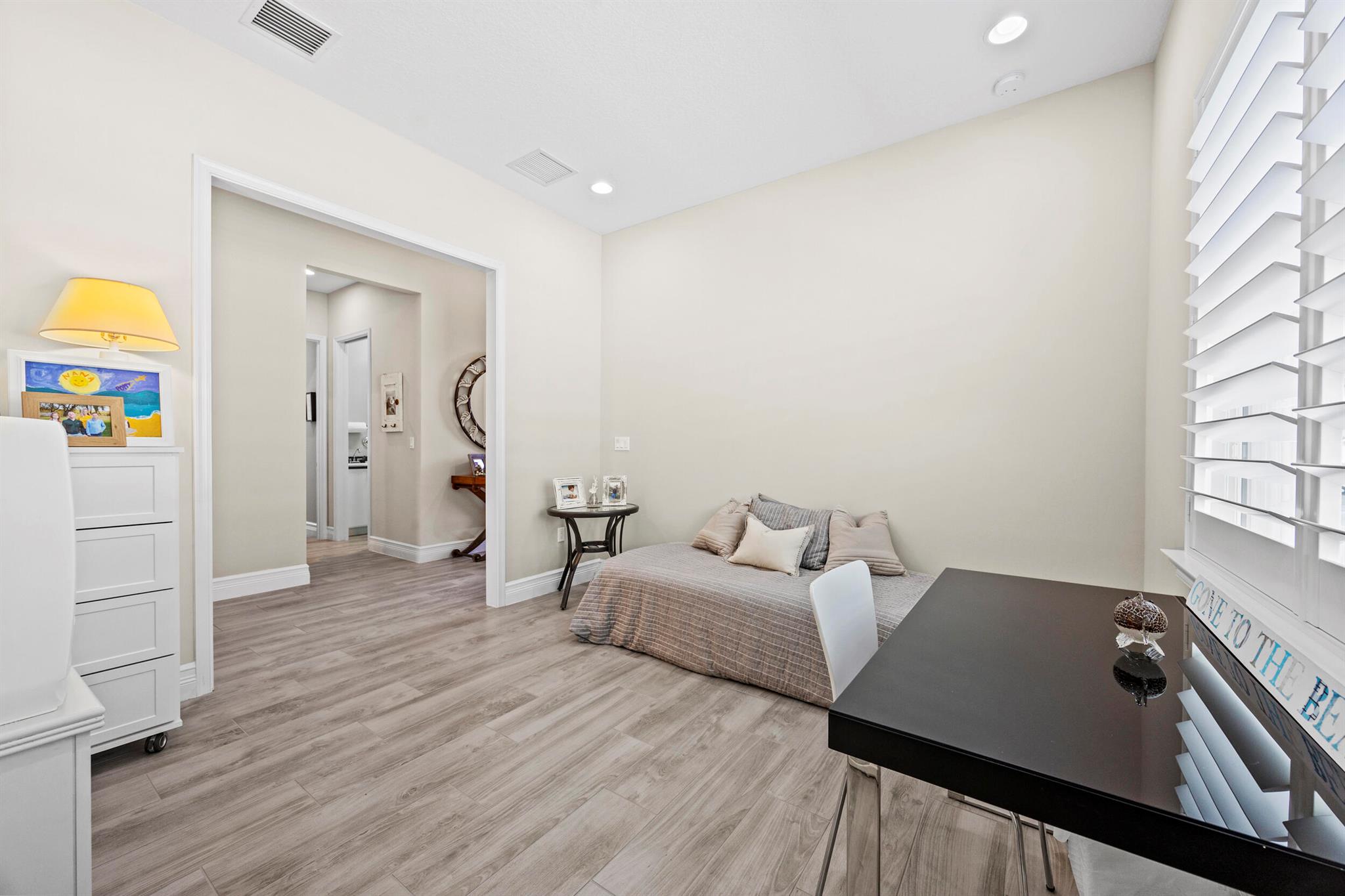 This stunning and highly sought-after Bimini floor plan can be yours in the prestigious community of Valencia Bay. Designed with a contemporary great-room concept, this home is filled with refined designer details and thoughtfully curated finishes throughout.Luxury vinyl flooring flows seamlessly through most of the home, enhancing both style and functionality. The counter-height kitchen invites guests to gather with the chef, while abundant quartz countertops add an elegant, upscale touch perfect for entertaining or everyday living.Offering 3 spacious bedrooms plus a dedicated office, along with 3 full bathrooms, this home delivers exceptional flexibility and comfort. One bedroom features a private entrance, ideal for guests, extended family, or added privacy.