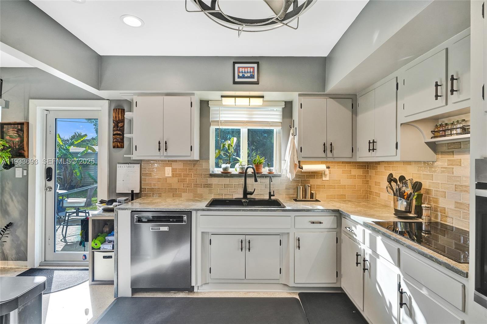 This home is in the charming neighborhood of Sky Lake in North Miami Beach. This currenr seller are the second owners on record, come be the third owner(s). The current owners have loved this home like the first, and they have put a lot of love into the home. Come and view this beautiful home that is awaiting you (and your family) to enjoy it. Located near I-95 and a few minutes access to all major highways for an easy commute anywhere and minutes to worship centers, Aventura Mall, and 20 minutes to the beach. The home boasts plenty of natural light throughout. The newly updated quartz countertops, AC unit, Impact Doors, Impact Windows, home electrical, tankless water heater, and Impact Garage door were all installed in 2023 or sooner. All renovations have been permitted with the city of NMB. Home features original coral terrazzo floor that has been polished back to its original beauty. With an extended paved patio, tropical landscaping, ample lighting and a privacy fence, the backyard is ready to be enjoyed day or night.