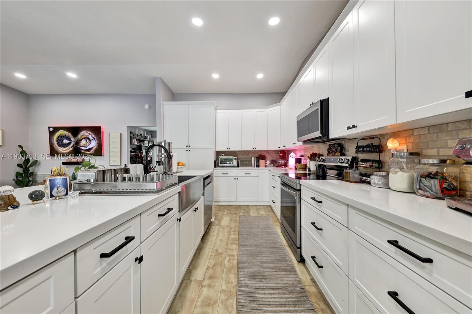 Don’t miss this rare gem! Beautifully updated pool home on a premium oversized corner lot which is much larger than typical neighborhood lots and offers extra privacy, abundant natural light and ample outdoor space. Step into luxury with a dream gourmet kitchen that has custom shaker-style cabinets with 42” uppers, gleaming quartz countertops, a massive 11’ island featuring extra storage and Moen touch-sensor faucet, 23 cabinets and a huge pantry. Top-tier stainless Samsung appliances include flex-zone refrigerator and air fryer oven. Elegant luxury vinyl plank flooring flows through main living areas along with vaulted ceilings. Modern updated bathrooms, hurricane impact windows, swing doors, and insulated impact garage door add to the updates for peace of mind. Cool and efficient 2022 Rheem A/C with smart Nest thermostat add to automation and meshes well with complete home smart switches and a three zone sprinkler system with a smart timer with management at your fingertips. Your private tropical oasis awaits: sparkling refreshing pool with newer Pentair pump, Hayward filter, and captivating color-changing LED lights. Fully PVC-fenced yard with lush privacy hedges. This is a prime no-HOA location in family-friendly Ramblewood South—close to top-rated schools, parks, shopping, and highways. So many thoughtful, high-quality updates throughout—you have to see it to believe it! Move-in ready and won’t last long—schedule your showing today!