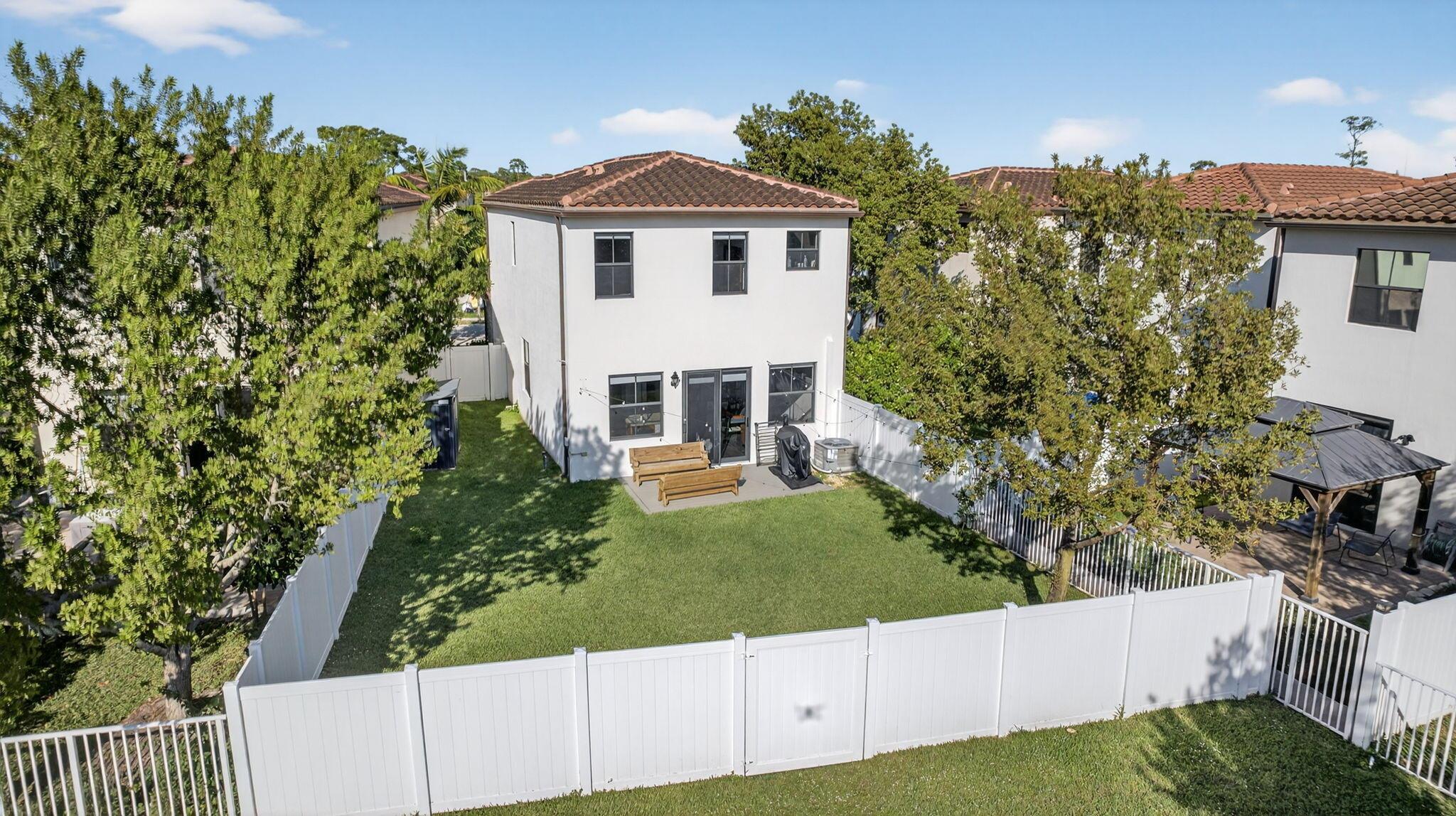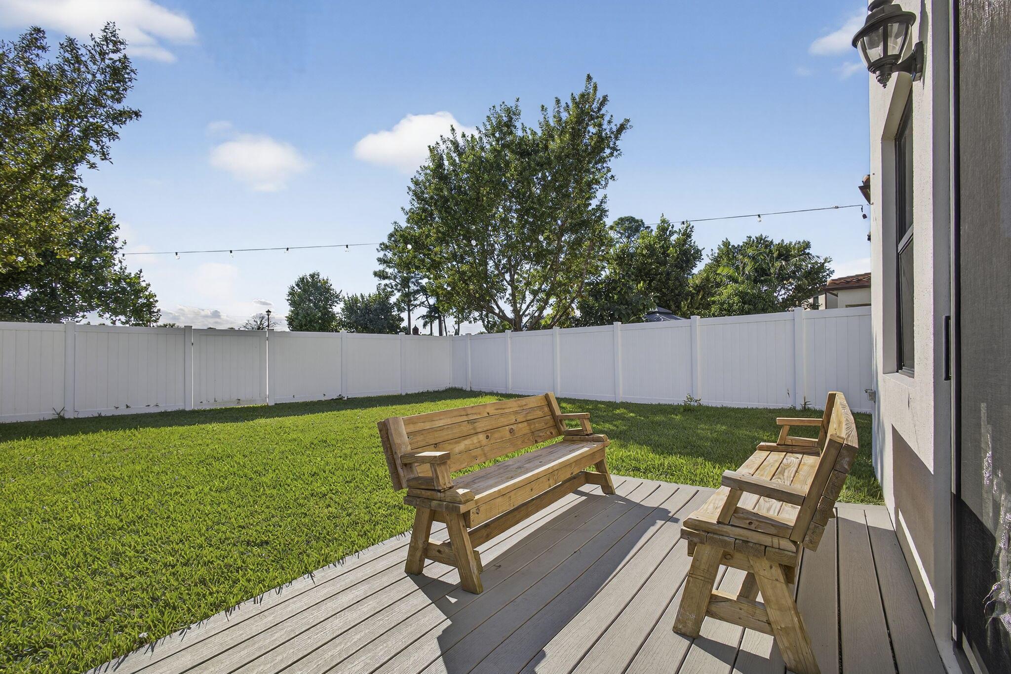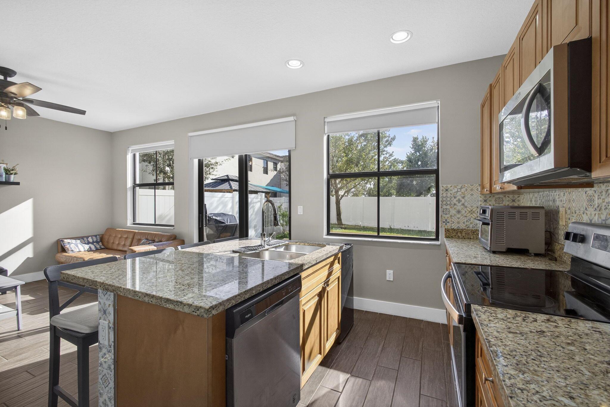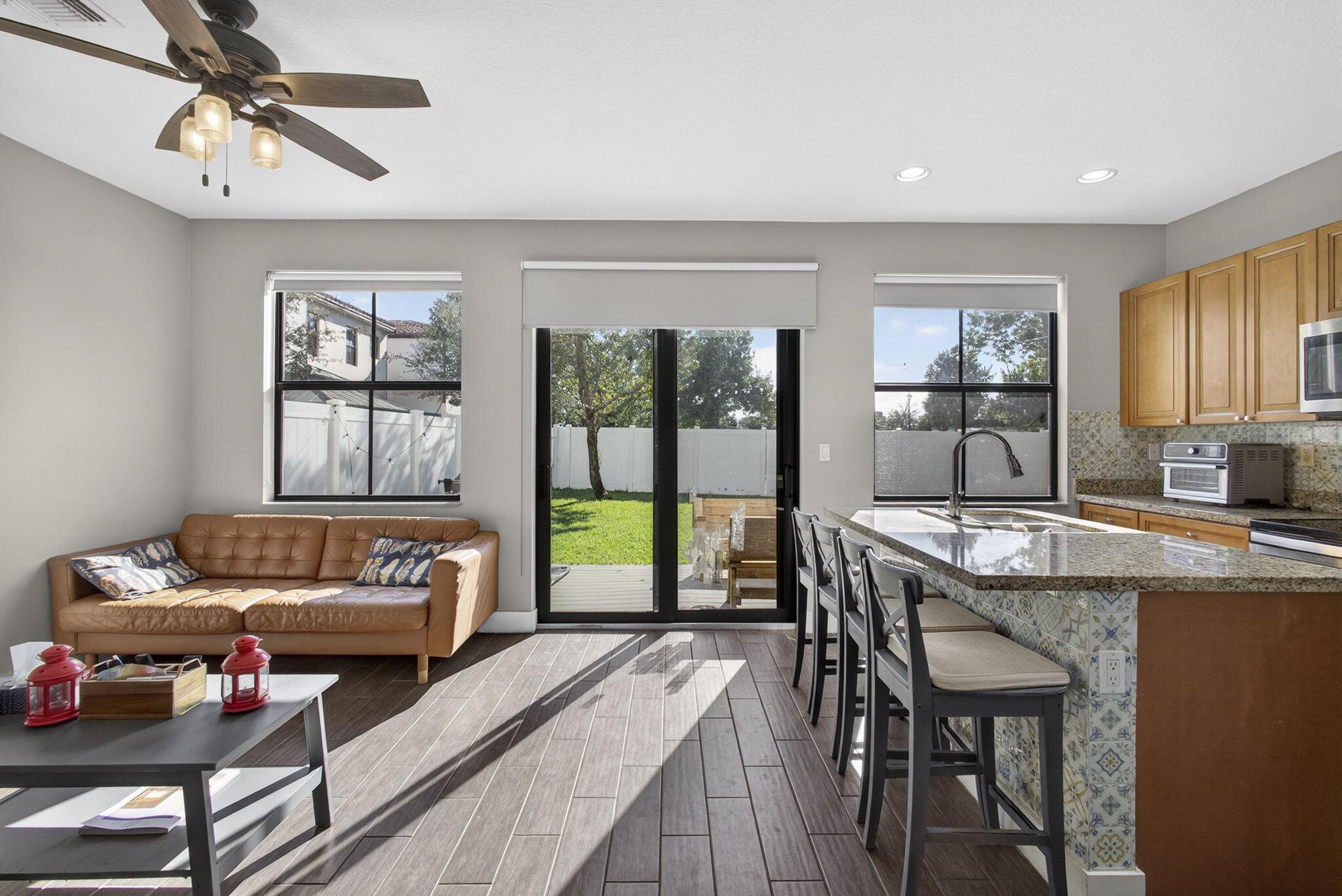 Only 8 years old this home is set on an extra -large fenced in lot overlooking the park & playground. Downstairs flooring is wood look porcelain tile floors and kitchen features granite counters, stainless steel appliances and tile backsplash. All hurricane impact windows & door. This gated community boats a resort style pool, gated entry and playground & park areas. Priced for quick sale.