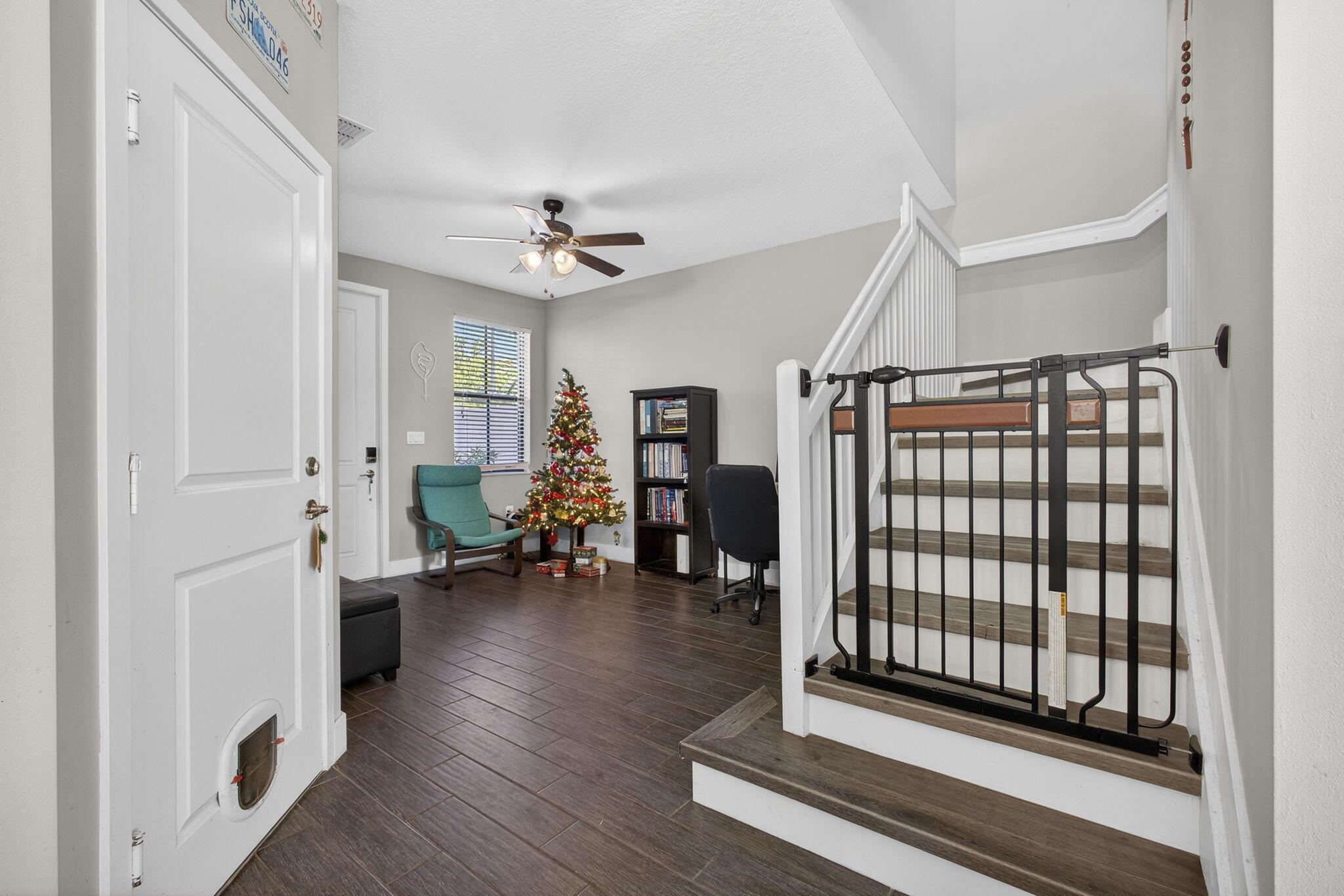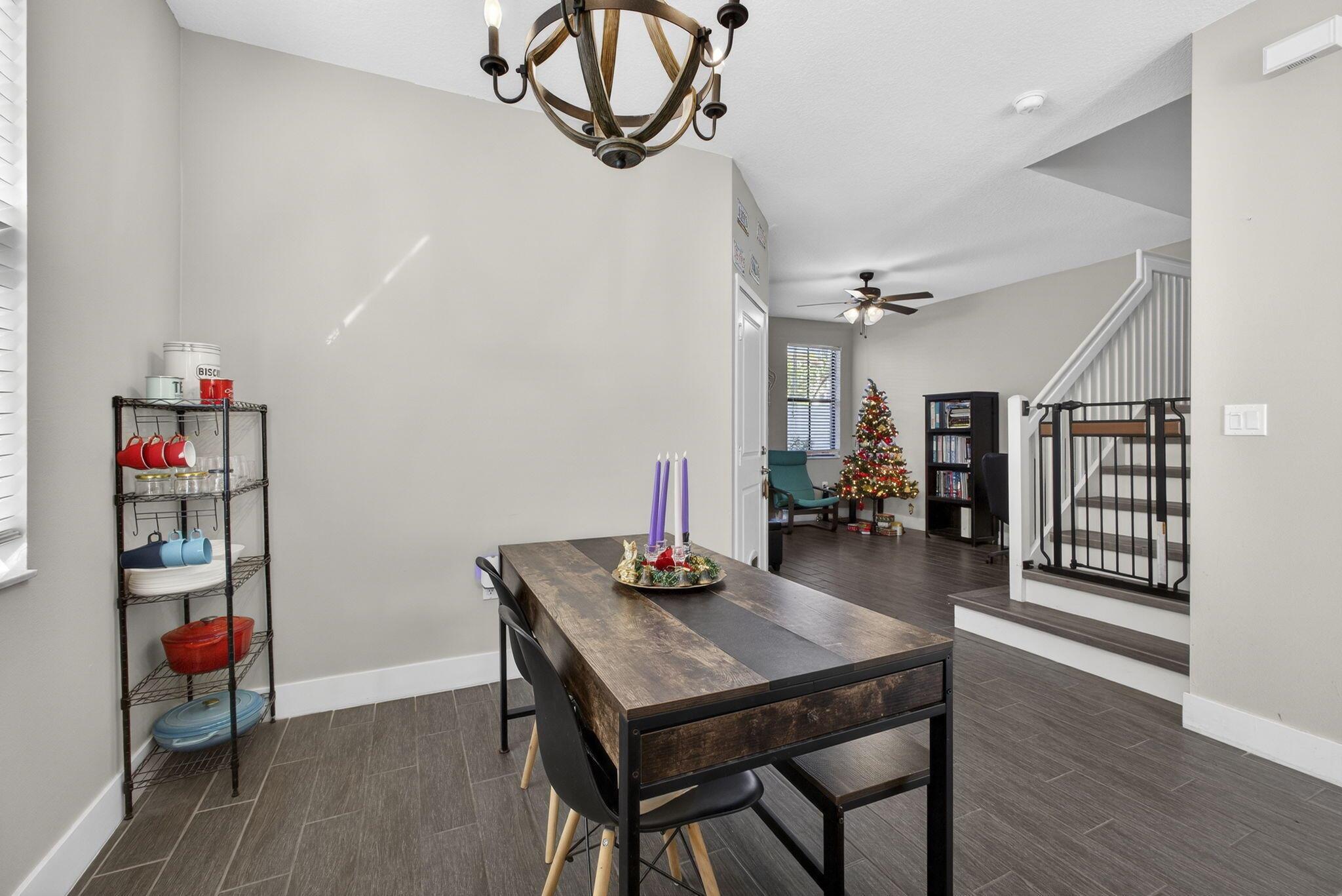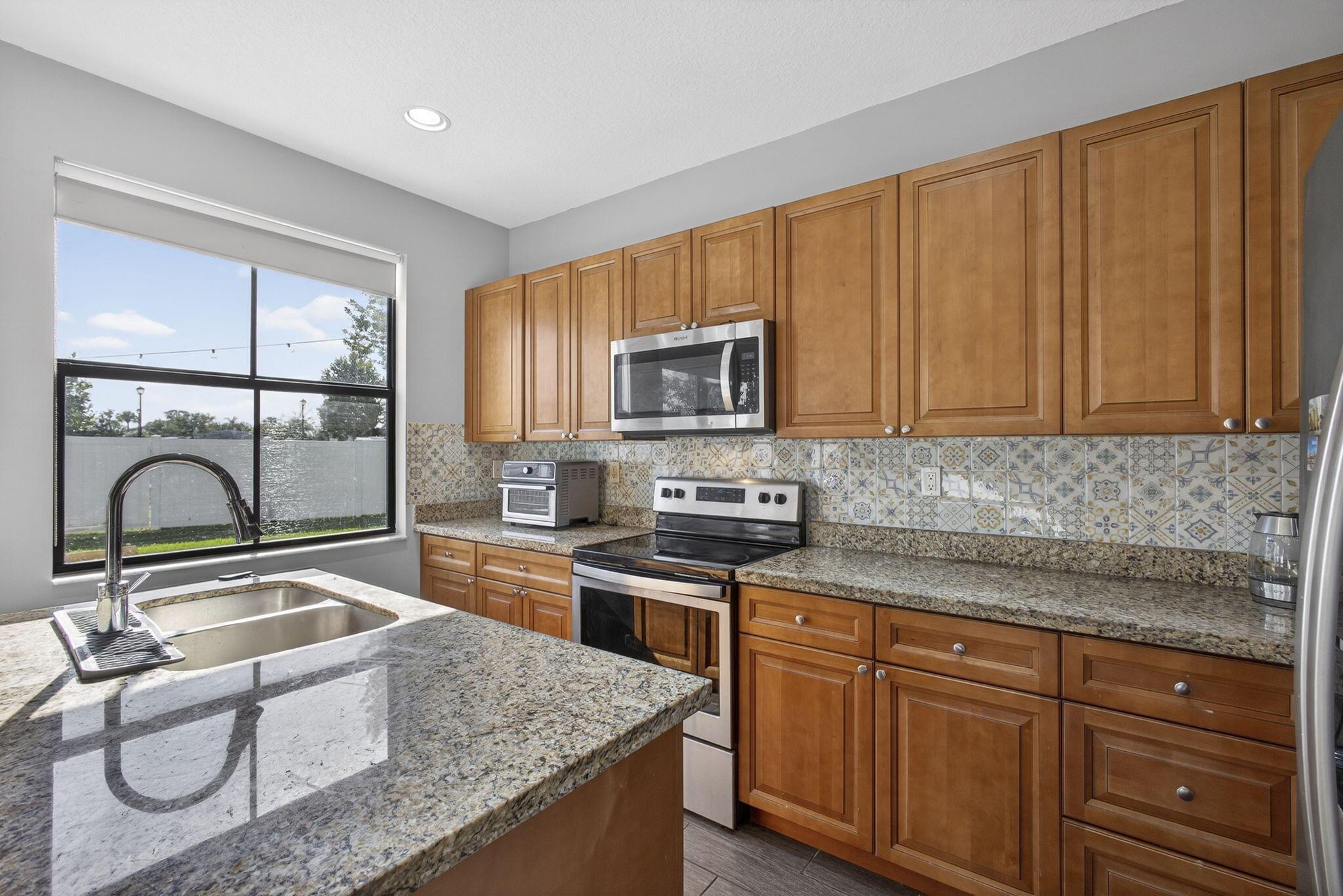 Only 8 years old this home is set on an extra -large fenced in lot overlooking the park & playground. Downstairs flooring is wood look porcelain tile floors and kitchen features granite counters, stainless steel appliances and tile backsplash. All hurricane impact windows & door. This gated community boats a resort style pool, gated entry and playground & park areas. Priced for quick sale.