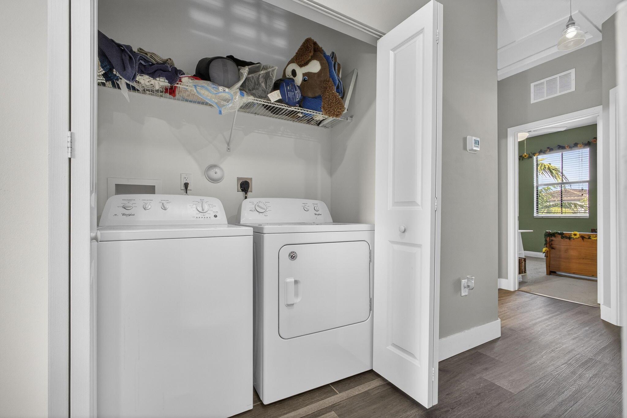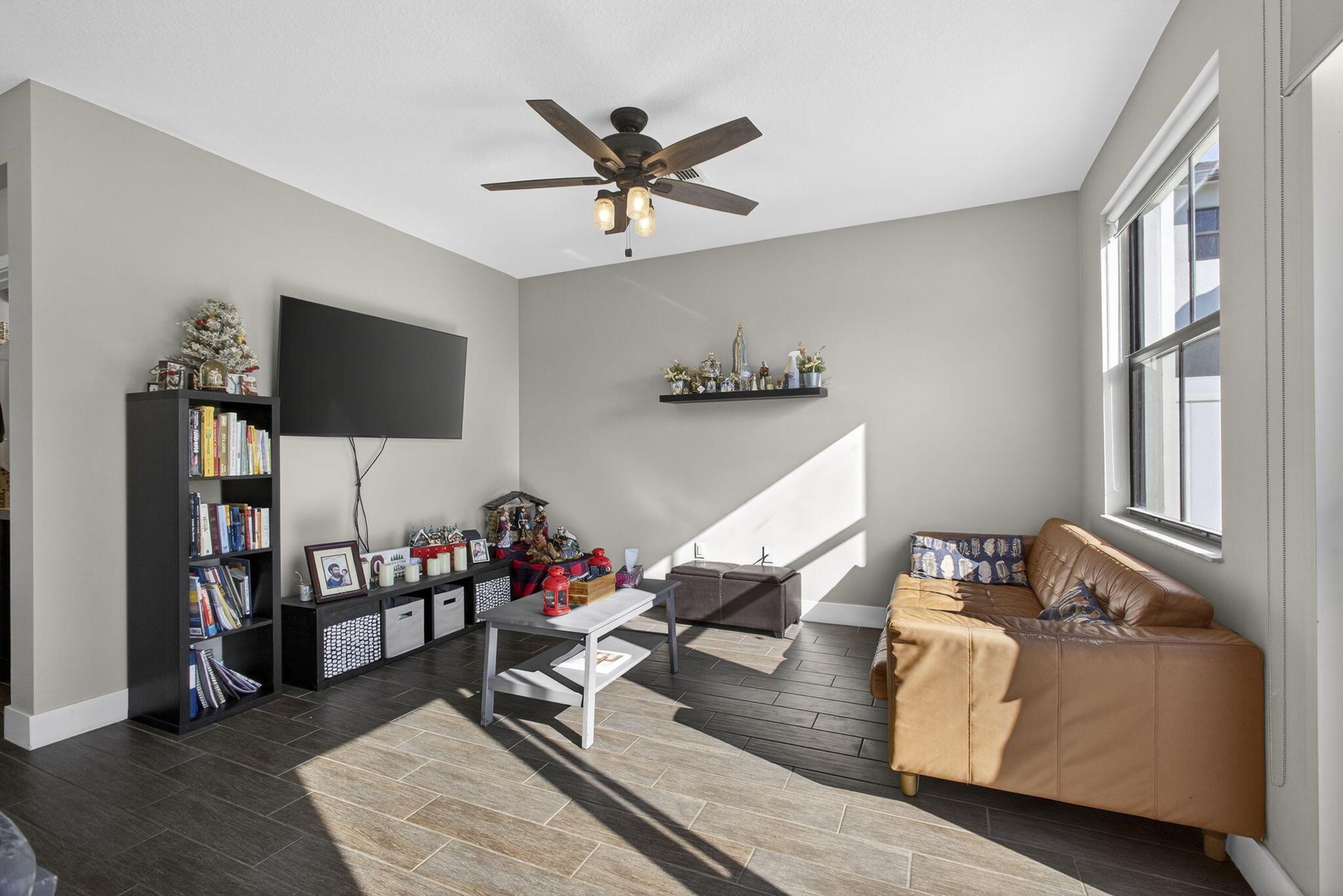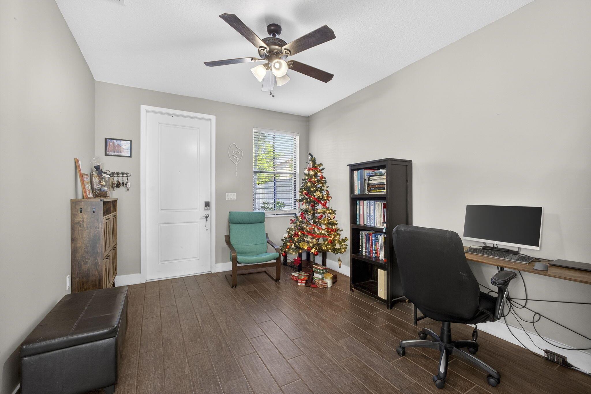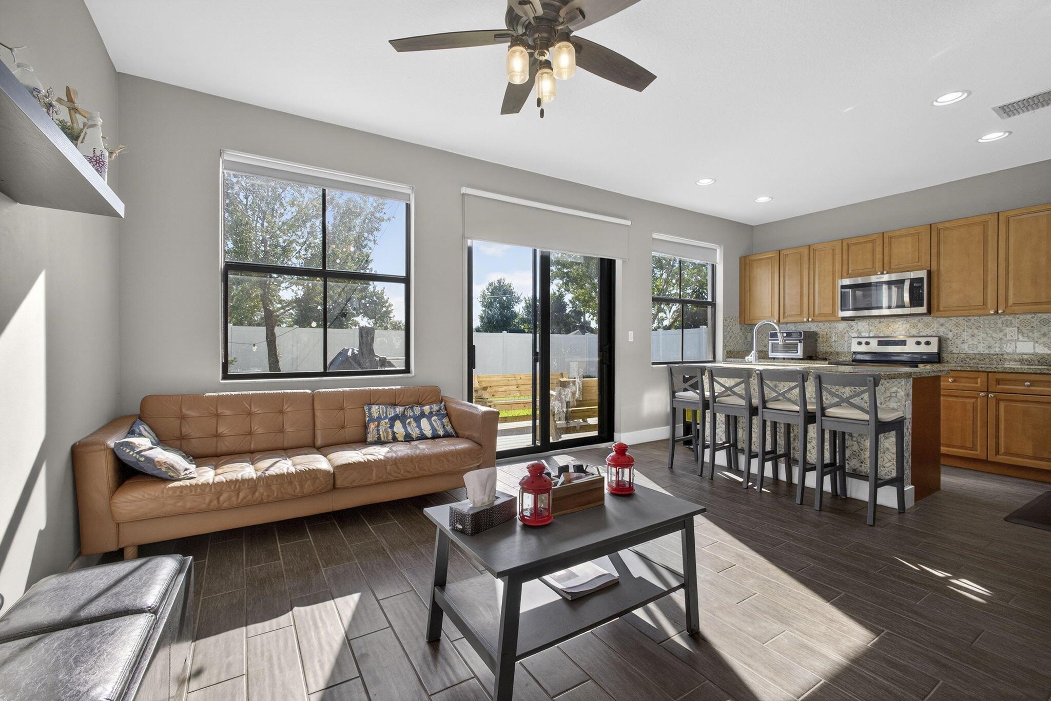 Only 8 years old this home is set on an extra -large fenced in lot overlooking the park & playground. Downstairs flooring is wood look porcelain tile floors and kitchen features granite counters, stainless steel appliances and tile backsplash. All hurricane impact windows & door. This gated community boats a resort style pool, gated entry and playground & park areas. Priced for quick sale.