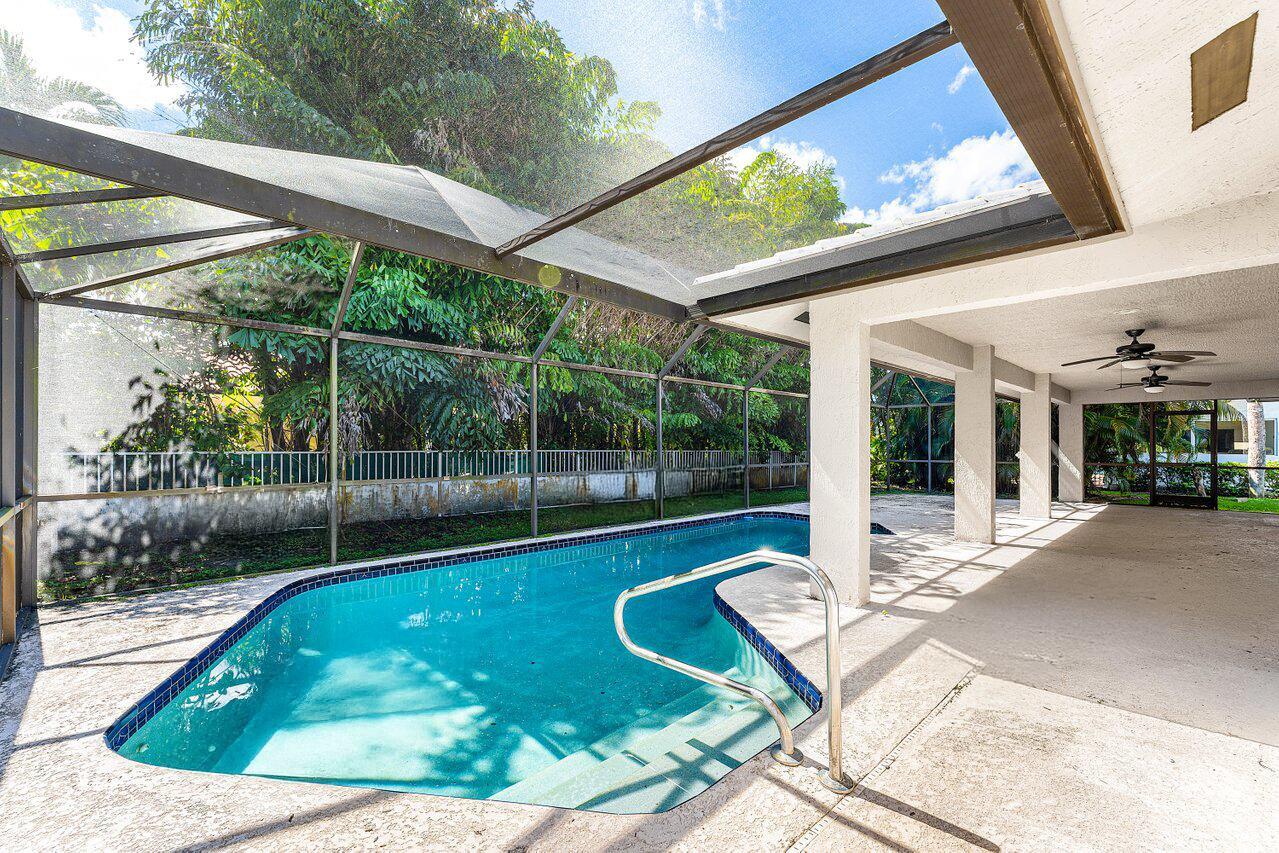Single-family home located in DelAire Country Club offering 3 bedrooms, a den/office, and 2.5 bathrooms. The home features a functional layout with a 2-car garage, an additional golf cart garage, and a screened-in pool. Interior features include high ceilings with wood beams, stainless steel appliances, granite countertops, and a full-size washer and dryer. The primary bedroom overlooks the pool and includes dual sinks, a separate tub and shower, and a walk-in closet. Two additional bedrooms and a full bathroom complete the home. Conveniently located within walking distance to the clubhouse and community amenities. Delaire Country Club is not just a residence, but a private boutique country club, where 324 custom homes surround a 27-hole championship golf course that requires no tee