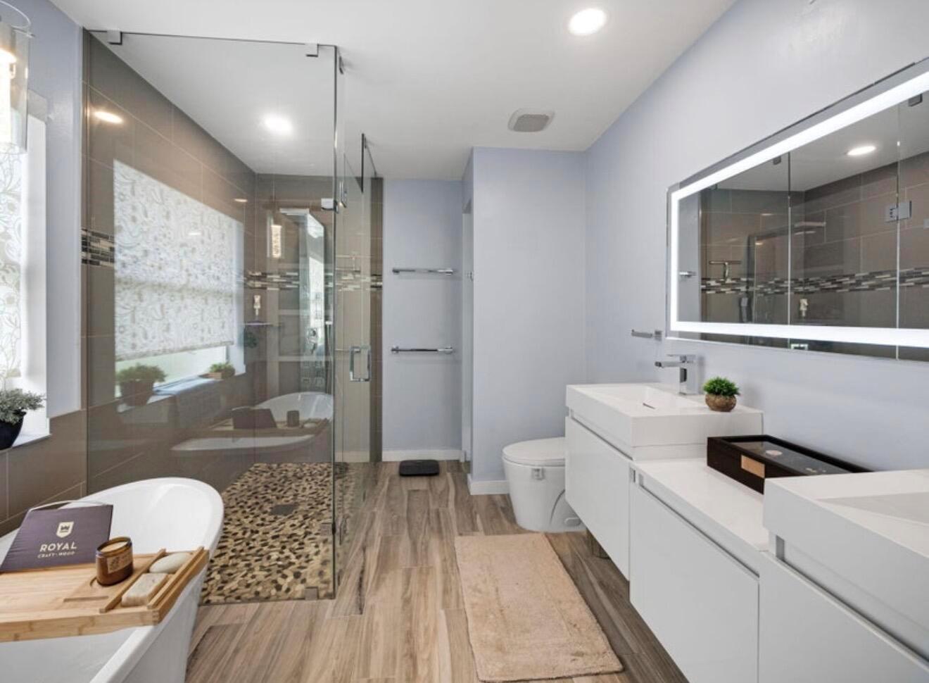 Luxurious 3-Bedroom + Den Home with Spa-Style Amenities & Lake Views Welcome to elevated living -- this stunning two-story home blends refined comfort and resort-level indulgence in one unforgettable address. Step inside to discover three spacious bedrooms, two and a half designer bathrooms, plus a den perfect for a home office, lounge, or flexible retreat. Every closet is custom built-in, offering exceptional storage and style. The upper level is warmed by hardwood floors, while the main living areas showcase large-format tile throughout -- a seamless balance of elegance and durability.