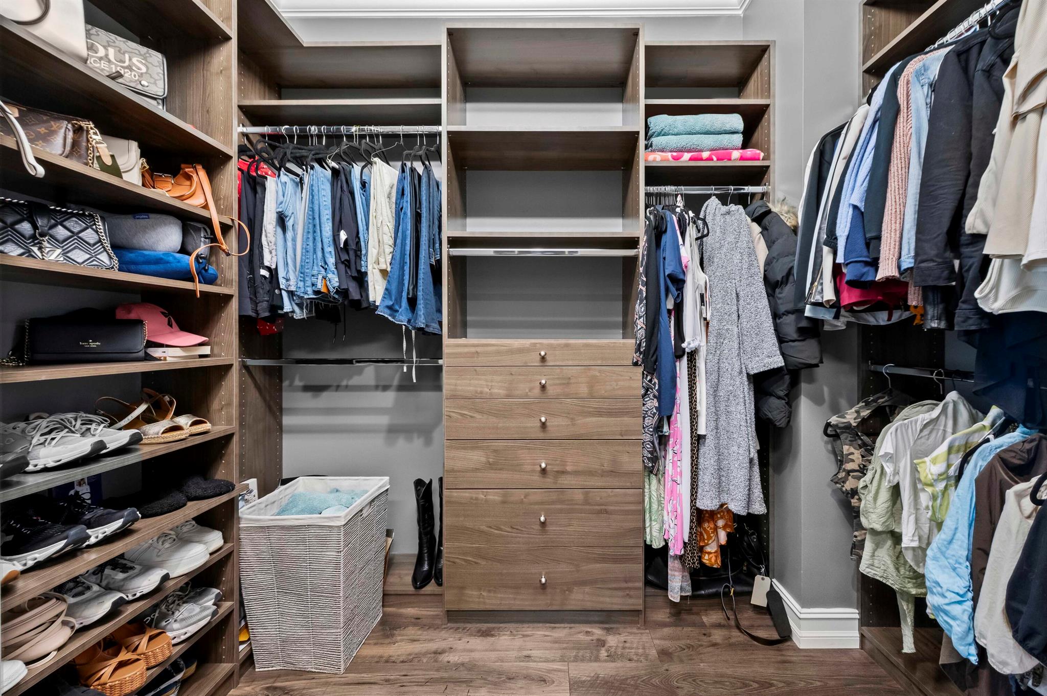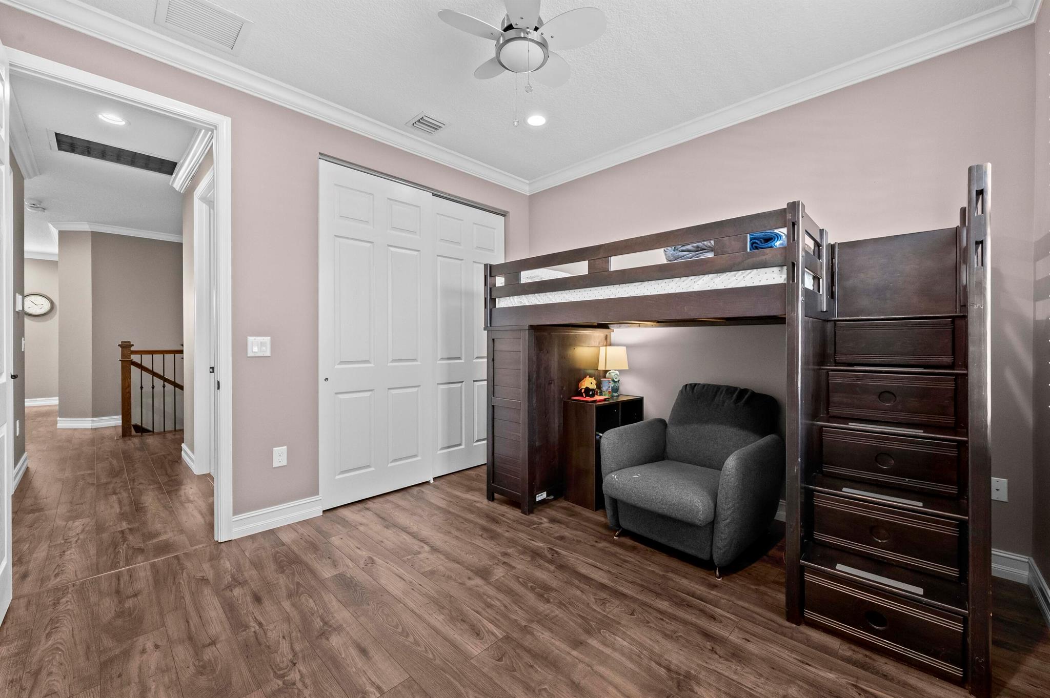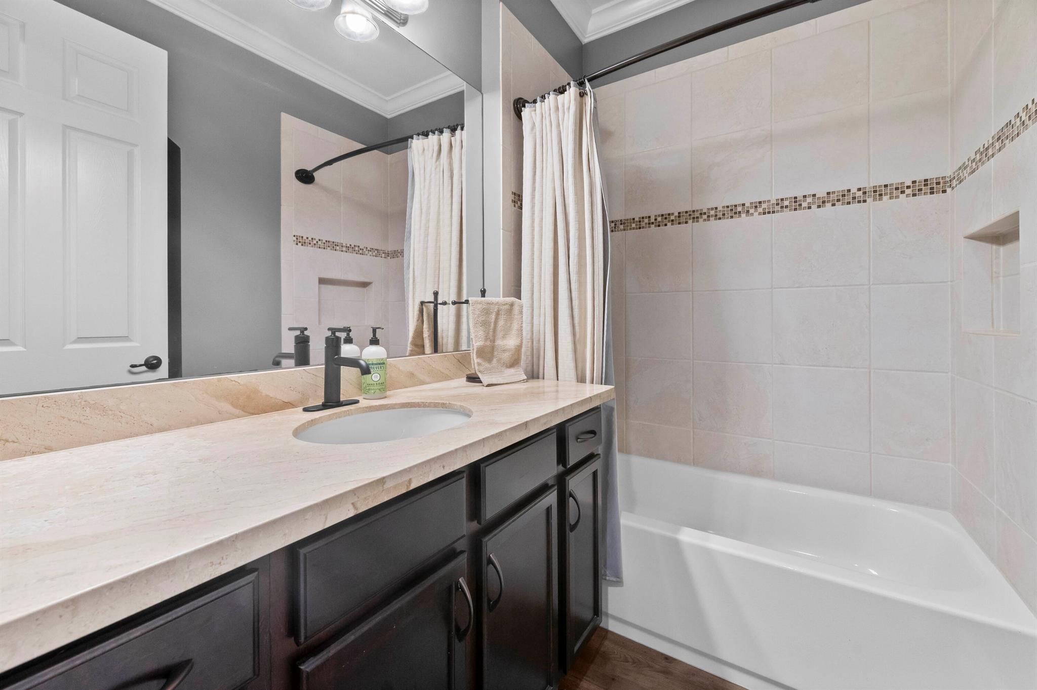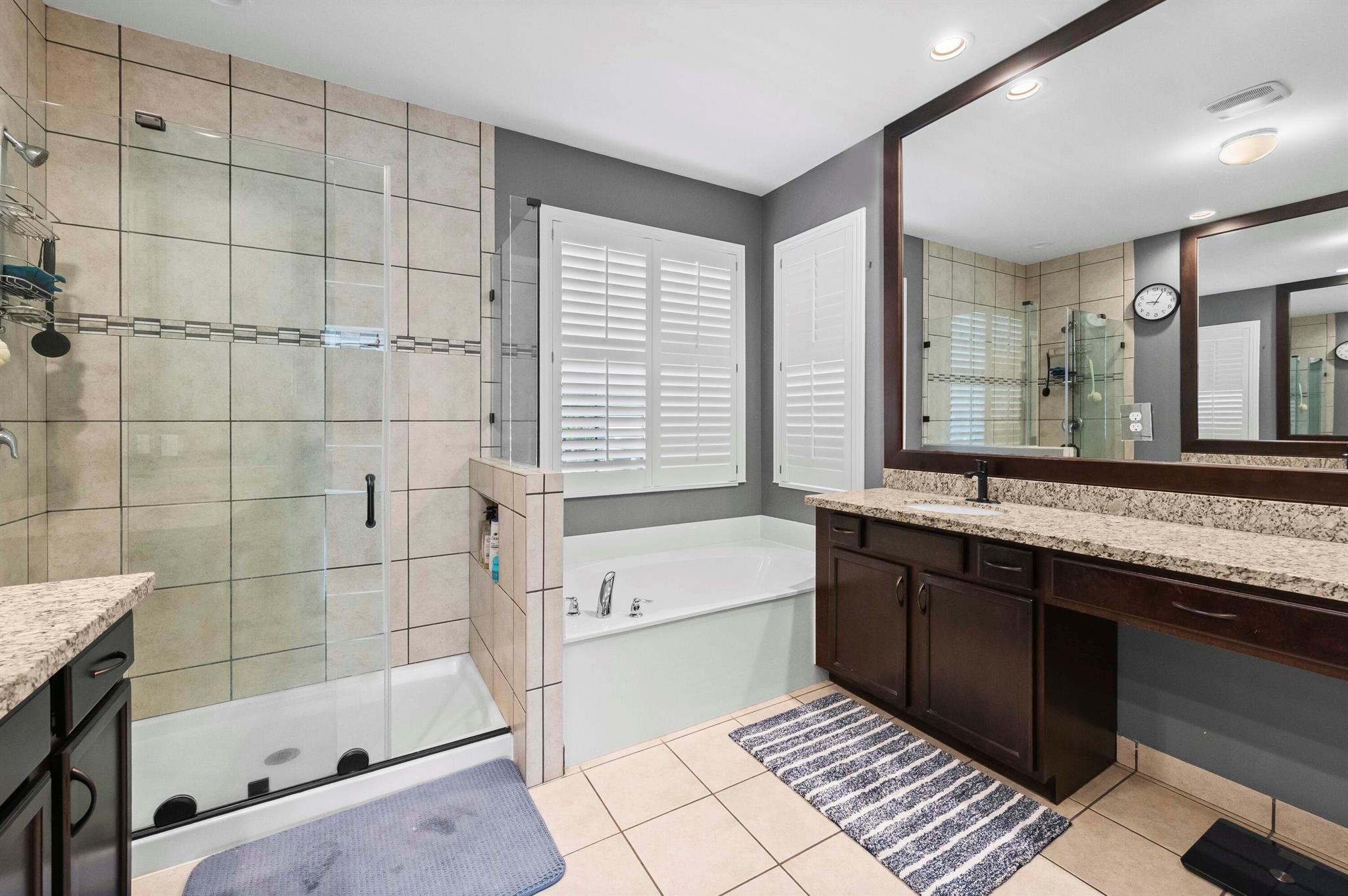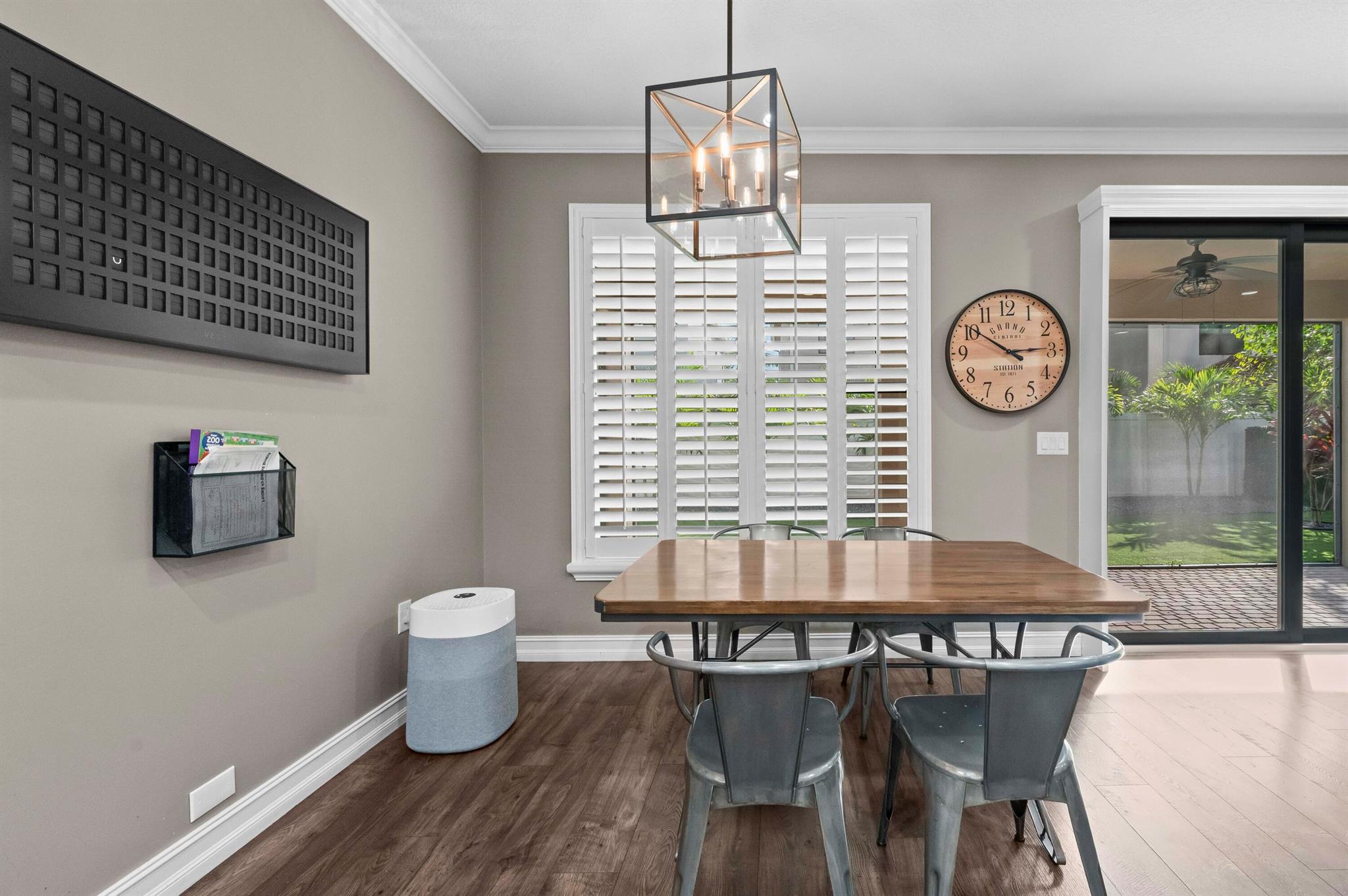 Experience the perfect convergence of luxury and sustainability in this stunning two-story residence, with 4 bedrooms, den/office, second story loft and 4 full bathrooms and a garage fully equipped with a Tesla wall charger. Fully paid off solar panels too! Step through the door to discover a meticulously designed interior featuring handsome wood-look flooring, elegant crown molding, and plantation shutters that filter natural light throughout the open-concept floor plan. The heart of the home is the gourmet kitchen, a culinary masterpiece equipped with crisp white cabinetry with glass-front uppers, gleaming granite countertops, a grey subway tile backsplash, and a massive center island that overlooks the spacious family room--perfect for effortless entertaining.