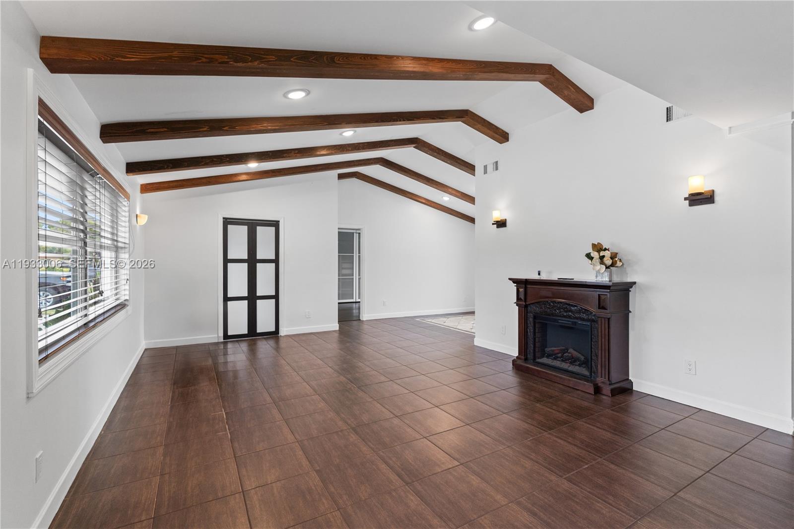 Beautiful 3 bedroom, 2 bath, 2118 sqft adjusted living area, pool home in Calusa, Kendall, offering a warm, timeless look and a layout. The living room features vaulted ceilings with classic wooden beams. A dedicated home office adds flexibility for work or study. The two-car garage was thoughtfully divided to create a playroom, storage area, laundry room, and pantry. Full impact windows, doors, and an impact garage door. The AC was replaced in 2020, and the shingle roof is only 10 years old. Step outside to a true entertainer’s paradise. The saltwater pool surrounded by a paved backyard. A spacious pergola shelters the outdoor summer kitchen, complete with a South American style barbecue and a Kamado grill. An outdoor bathroom adds extra convenience for entertaining. The property also features an air-conditioned shed that can be used for storage or as an additional workspace. Additional upgrades include a full CCTV security system and gutters throughout the home. The circular driveway and parking are paved and can accommodate up to 14 cars, perfect for hosting friends and family. Located near top schools (Calusa Elementary, Arvida Middle School), shopping, dining, and major highways, this home offers charm, comfort, and lifestyle in one of Kendall’s most desirable neighborhoods.