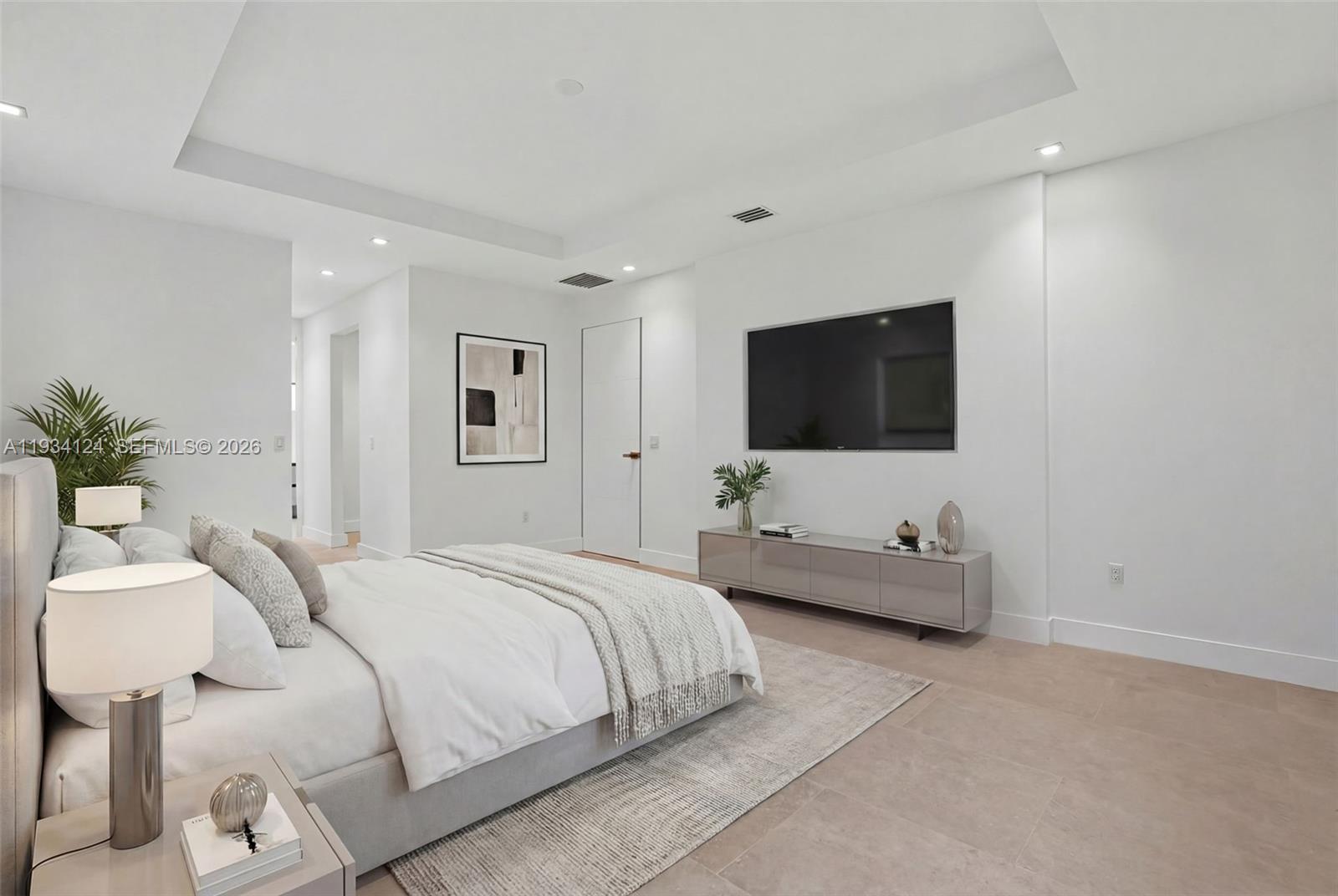 Exceptional residence ideally positioned just minutes from South Miami, offering a seamless blend of timeless design and modern functionality, with convenient proximity to shopping and schools. The custom white oak kitchen is finished with elegant Taj Mahal quartzite countertops and equipped with top-of-the-line Jenn-Air appliances. Bathrooms feature bespoke vanities topped with Taj Mahal quartzite and natural marble shower walls. The primary bath is designed as a private sanctuary, highlighted by premium fixtures and a refined, spa-like feel. **The images has been digitally altered for virtual staging.