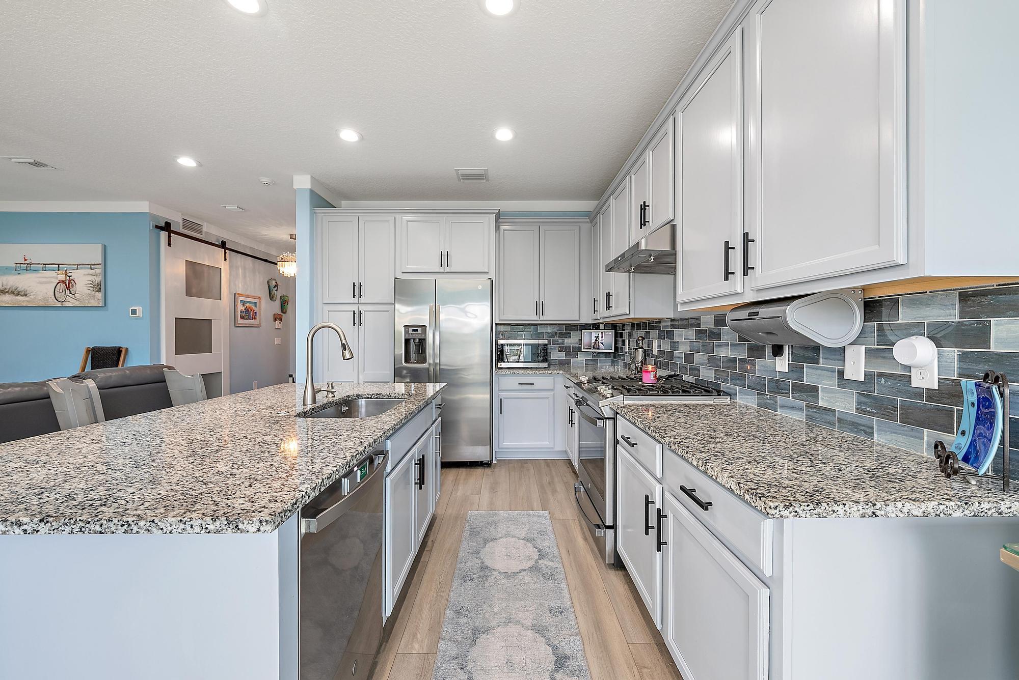 Live the Valencia Cay lifestyle at Riverland in Tradition, Port St. Lucie, a premier 55+ community. This upgraded 2-bedroom, 2-bath Egret model features include crown molding, luxury vinyl flooring, custom closet shelving, upgraded pantry pull-out shelves, laundry barn door, etched glass front door, frameless shower doors, & added lighting. Enjoy a widened driveway, garden curbing, patio lighting, & extended 20'x13' rear patio perfect for entertaining. Screened front / rear porches & fenced backyard create ideal indoor-outdoor living. Impact windows, security cameras, & exterior generator connection add peace of mind. Valencia Cay offers a resort-style clubhouse, pools, fitness center, pickleball, tennis, trails, clubs, & social events. Close to I-95, shopping, dining, & Cleveland Clinic.