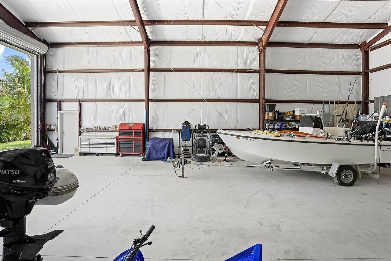Built for serious RV, boat, and equipment owners, this rare .52-acre property in Vero Lake Estates delivers true freedom and infrastructure. Located in unincorporated Indian River County with NO HOA, the property is anchored by a $250,000+ commercial-grade steel 1925 Sq Ft workshop built by MBMI Buildings, engineered for durability, access, and long-term performance.The 55' x 35' x 25' over-engineered steel building features two 16-ft high doors, allowing effortless drive-in storage for large RVs, boats, trailers, and commercial vehicles. Designed for real use, the building includes 100-amp and 50-amp RV hookups, water access at both the front and rear, gutters with four downspouts, whole-building generator conduit, and CAT-5 wiring ideal for storage, maintenance, hobbies, or business