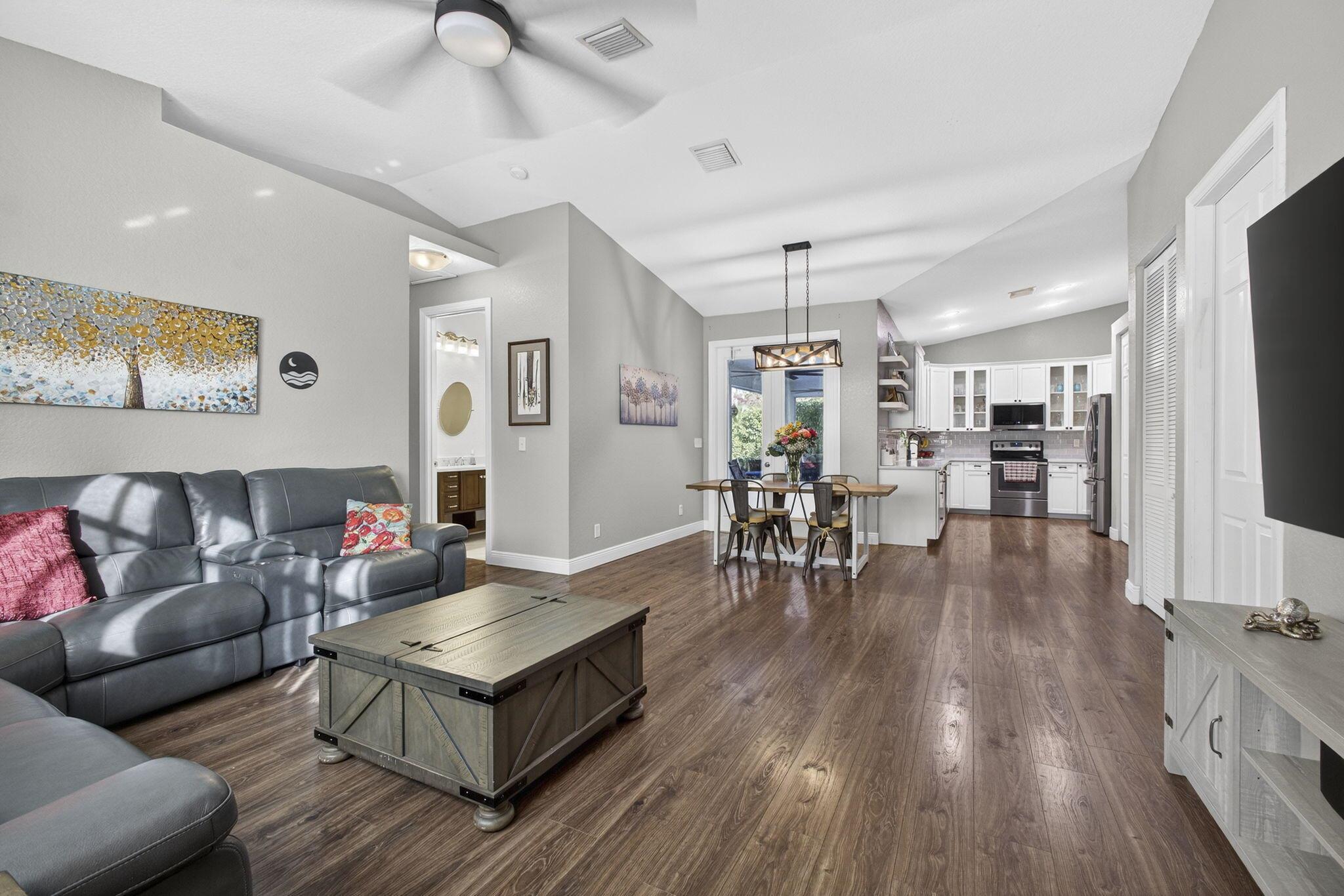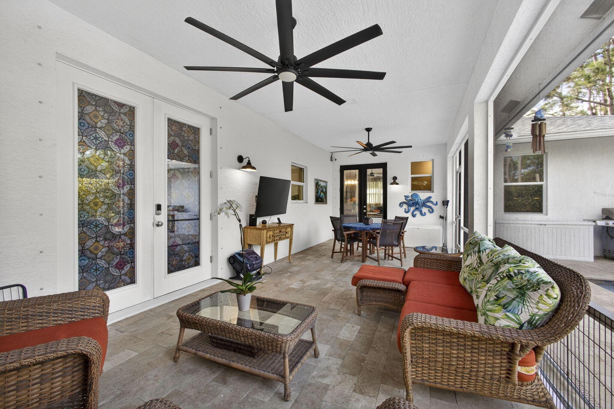 Welcome to this beautifully upgraded 3-bedroom pool home situated on a fully fenced and private 1.36-acre lot in Loxahatchee. This move-in-ready residence offers high ceilings, an open split-bedroom floor plan, and ceiling fans throughout, creating a bright and comfortable living environment.The kitchen features quartzite countertops, recently updated stainless steel appliances, and a reverse osmosis system. French doors from the dining area and primary suite open to a screened patio and a completely private saltwater pool and spa. The pool area is surrounded by mature clusia hedges for exceptional privacy and includes travertine pavers and an efficient electric heat pump pool heater for year-round enjoyment...