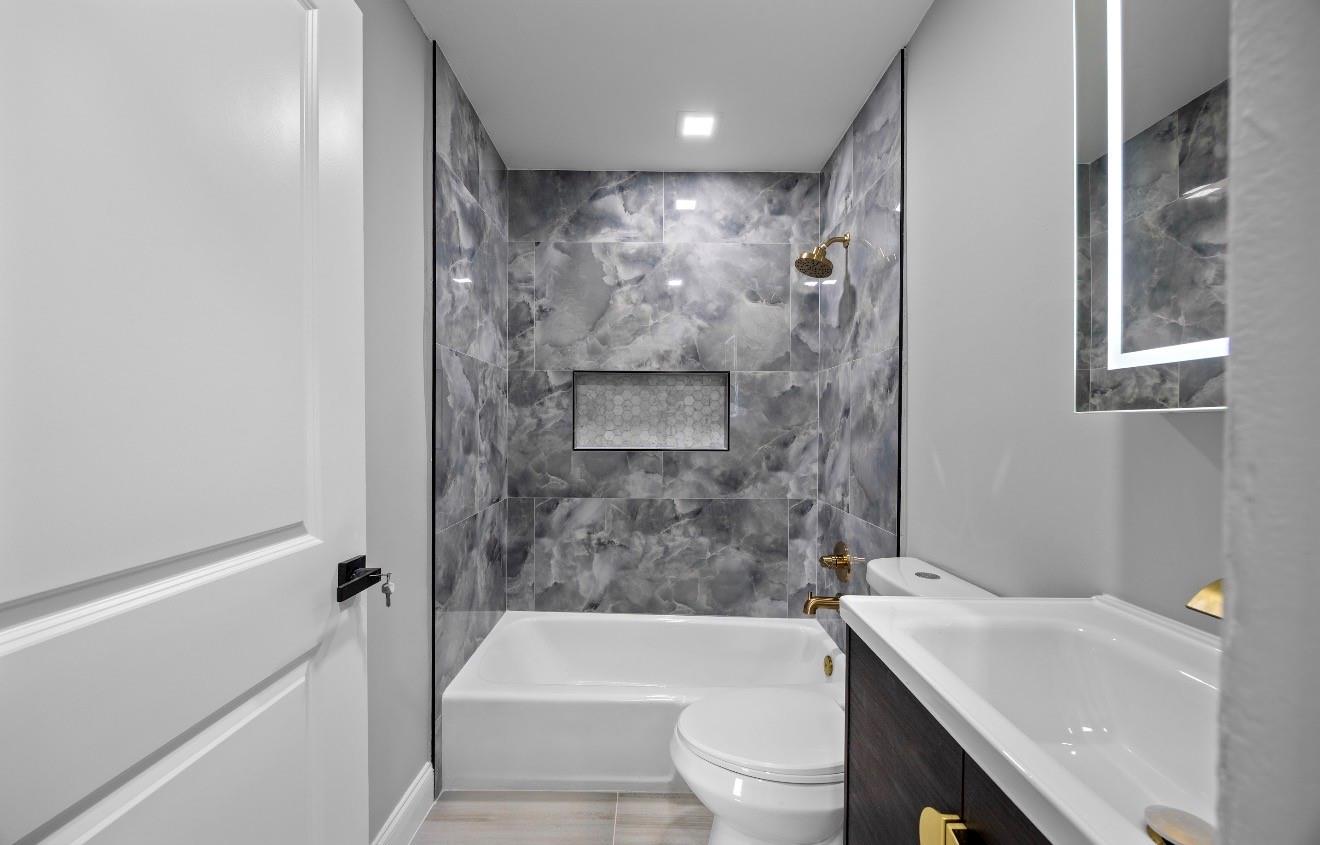 Beautifully and newly remodeled 4-bedroom split-bedroom home on a fully fenced corner lot with outstanding curb appeal. This light-filled residence features a stunning custom white kitchen with sleek white quartz countertops, stainless steel appliances, a huge center island, and recessed lighting throughout. Spacious floor plan includes a large laundry room, generous walk-in closets, and carpeted bedrooms for comfort. Porcelain tile floors enhance the main living areas, while the luxury custom-designed bathrooms showcase high-end finishes and elegant details. Impeccable craftsmanship, stylish upgrades, and thoughtful design make this home truly move-in ready. A must-see property offering beauty, space, and modern living at its finest.