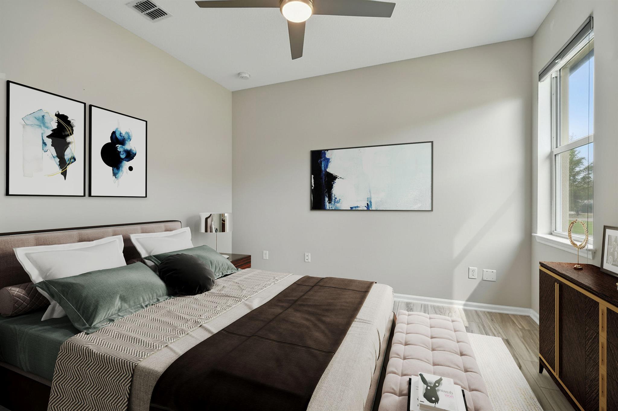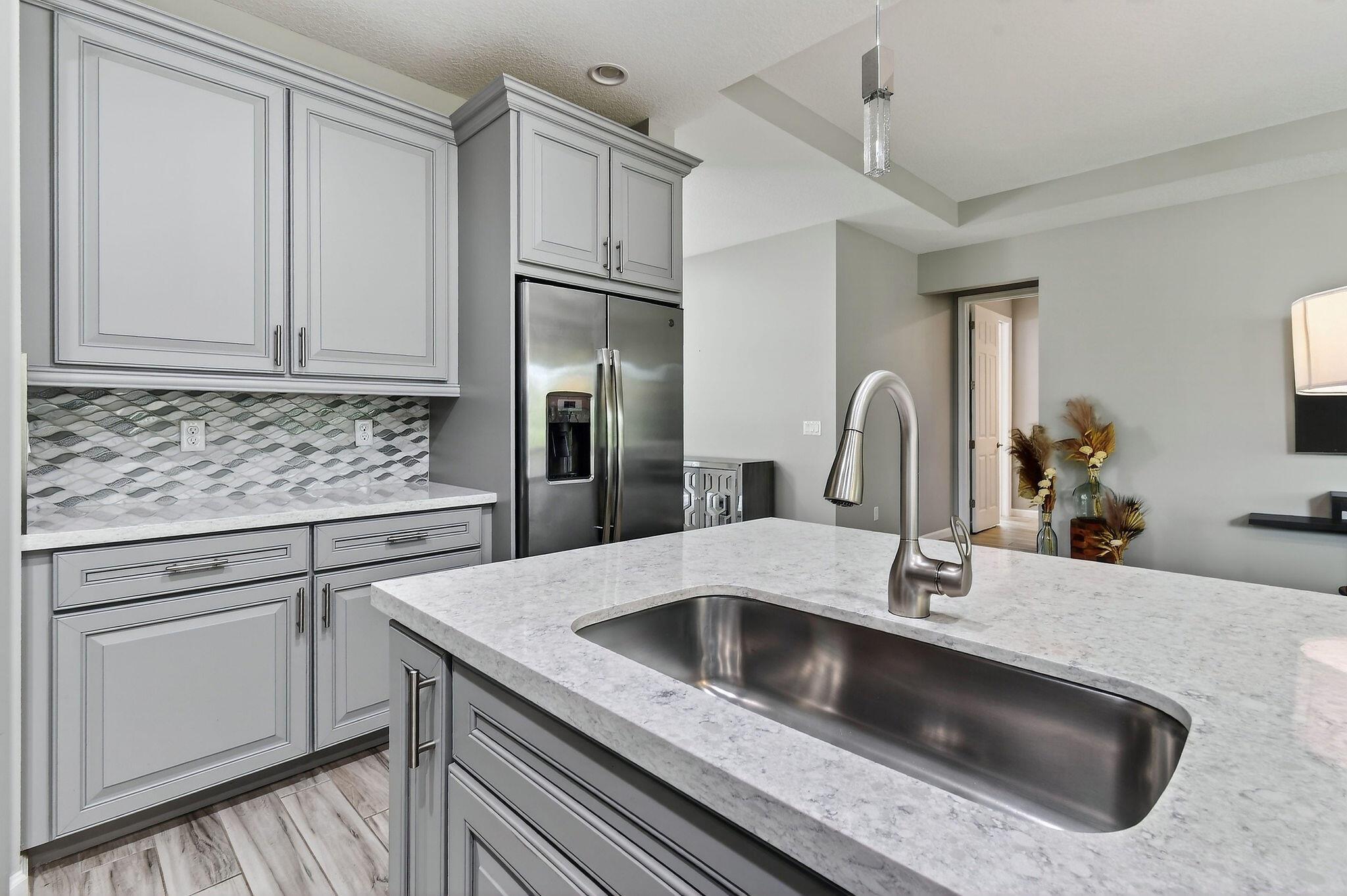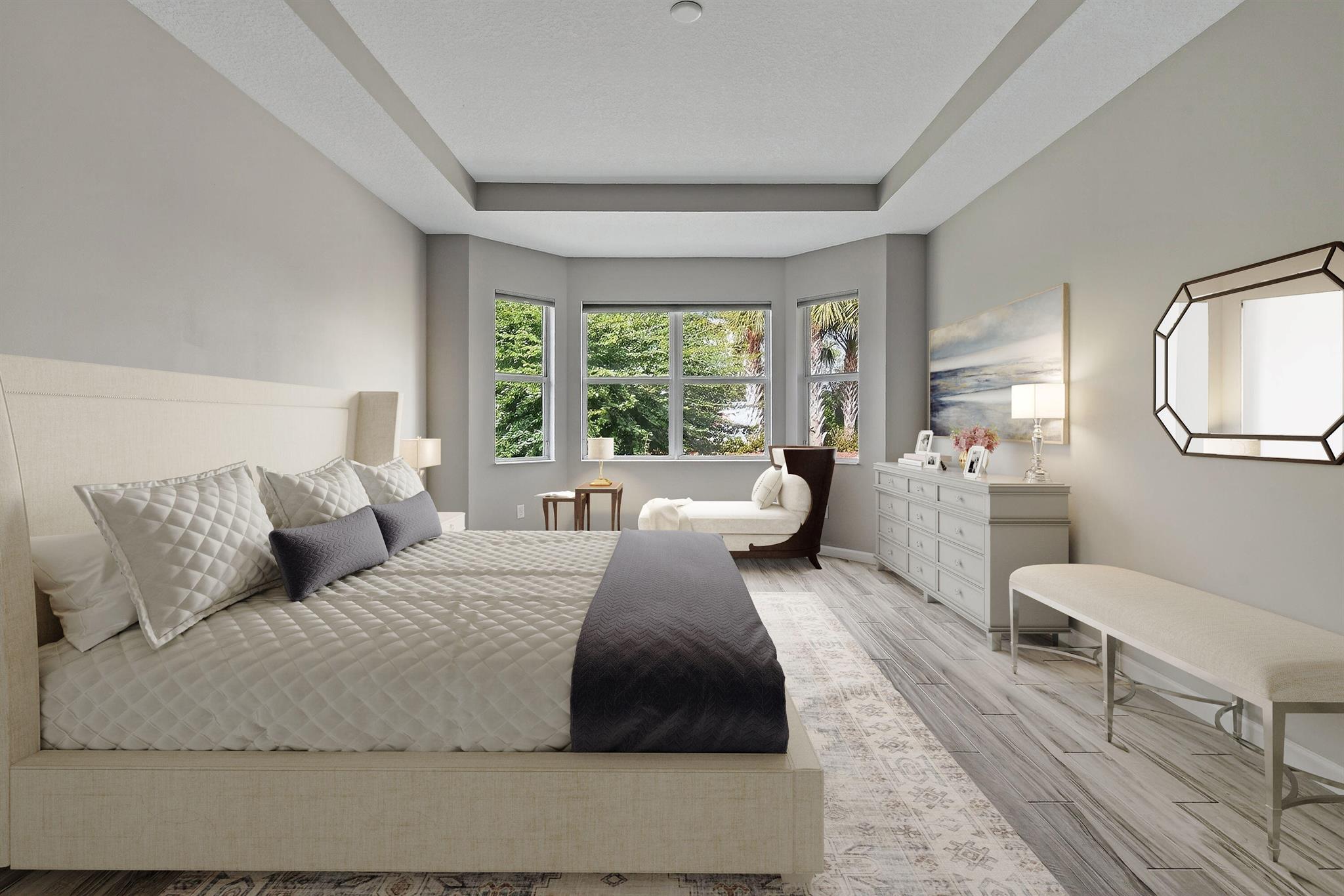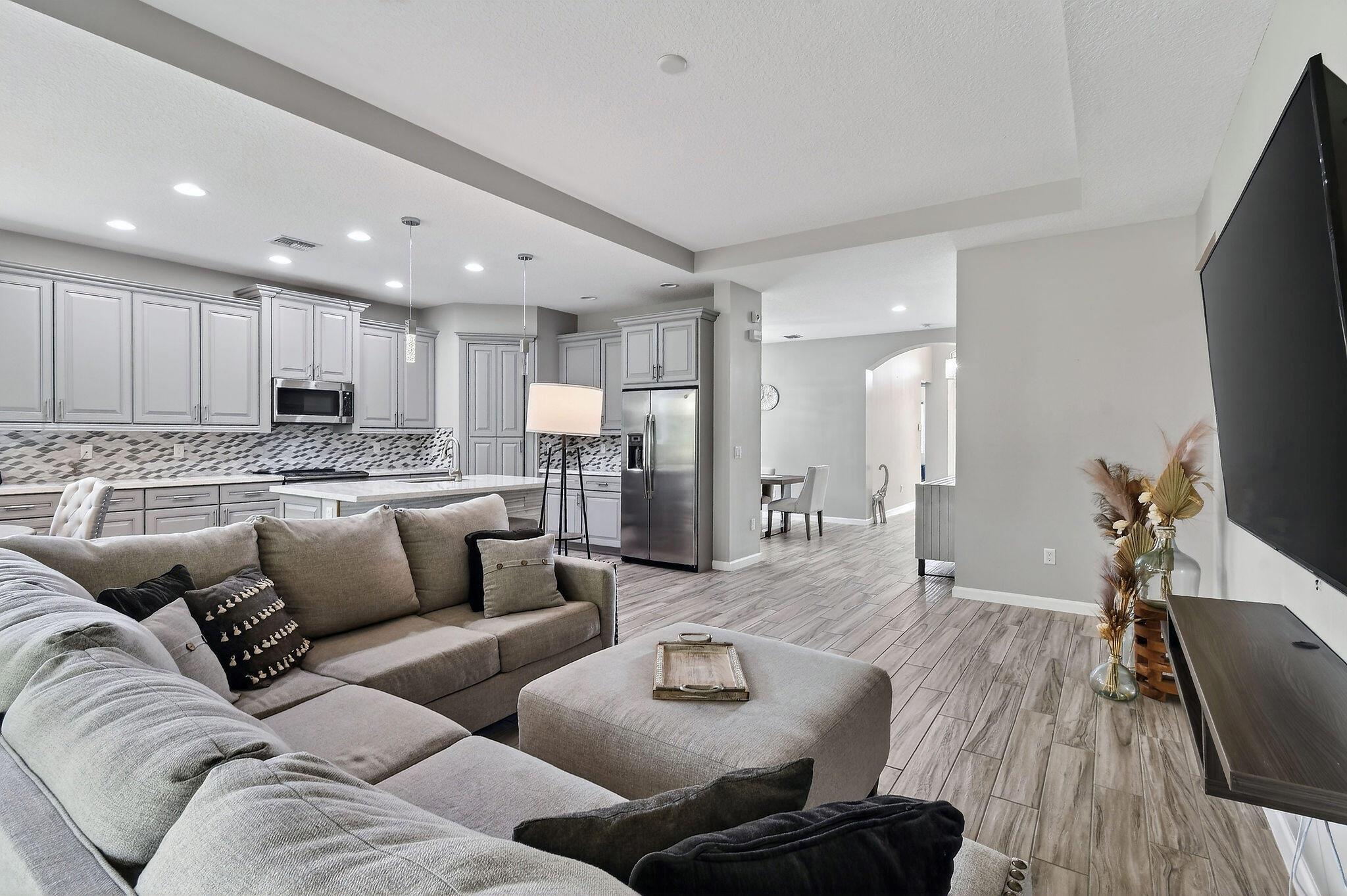 FURNISHED! Almost 3,000s/f of PERFECTION in peaceful but active over 55 community. Pristine 3 bed, 2 1/2 bath PLUS OFFICE, mudroom. Soothing neutral paint, TILE floors throughout, IMPACT windows and doors, closet organizers,TWO master walk-in's. Large ISLAND kitchen, GE PROFILE appliances, QUARTZ countertops + soft close cabinets, hidden pantry, DREAM Garage organizer system, PRIVATE screened back patio. Amenities: 2 heated pools, multi-million$ clubhouse, hot spa, waterpark, basketball, tennis, bocce, billiards, gym, yoga, game room, picnic areas, more! Tradition is the nation's best PUD with dozens of upscale neighborhoods and offers lakes, walking trails, parks, al fresco DINING, shopping, nightlife, and GOLF, doctors, BEACHES, boating, NY METS spring training are all nearby.