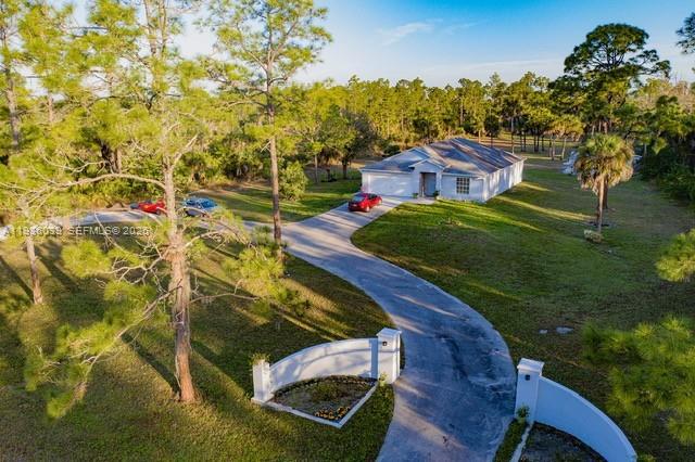 REMODELED residence on 2.73 CLEARED ACRES in GOLDEN GATE ESTATES, with a large ASPHALT DRIVEWAY with an ample room to accommodate your recreational vehicles, boats etc. Property has a WHOLE-HOME REVERSE OSMOSIS SYSTEM for premium water quality. Inside, you’ll find bright open living spaces, tile floors throughout, modern kitchen with quality cabinetry, quartz countertops and stainless steel appliances , huge family room, also 2 car garage. the seller is including a container already converted into a beautiful efficiency. Step outside to well maintained grounds and FRUIT TREES (mango, avocado, oranges, etc.) with sprinkler system throughout creating a true Florida retreat. This property offers the tranquility of estate living while being just a short drive from Naples' pristine beaches, shopping centers, and dining establishments. Excellent neighborhood that is growing fast !!