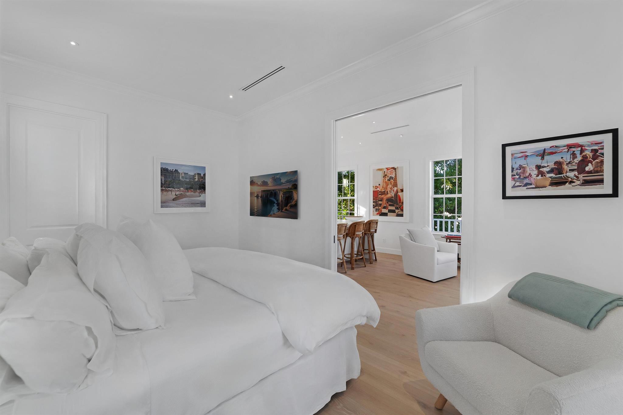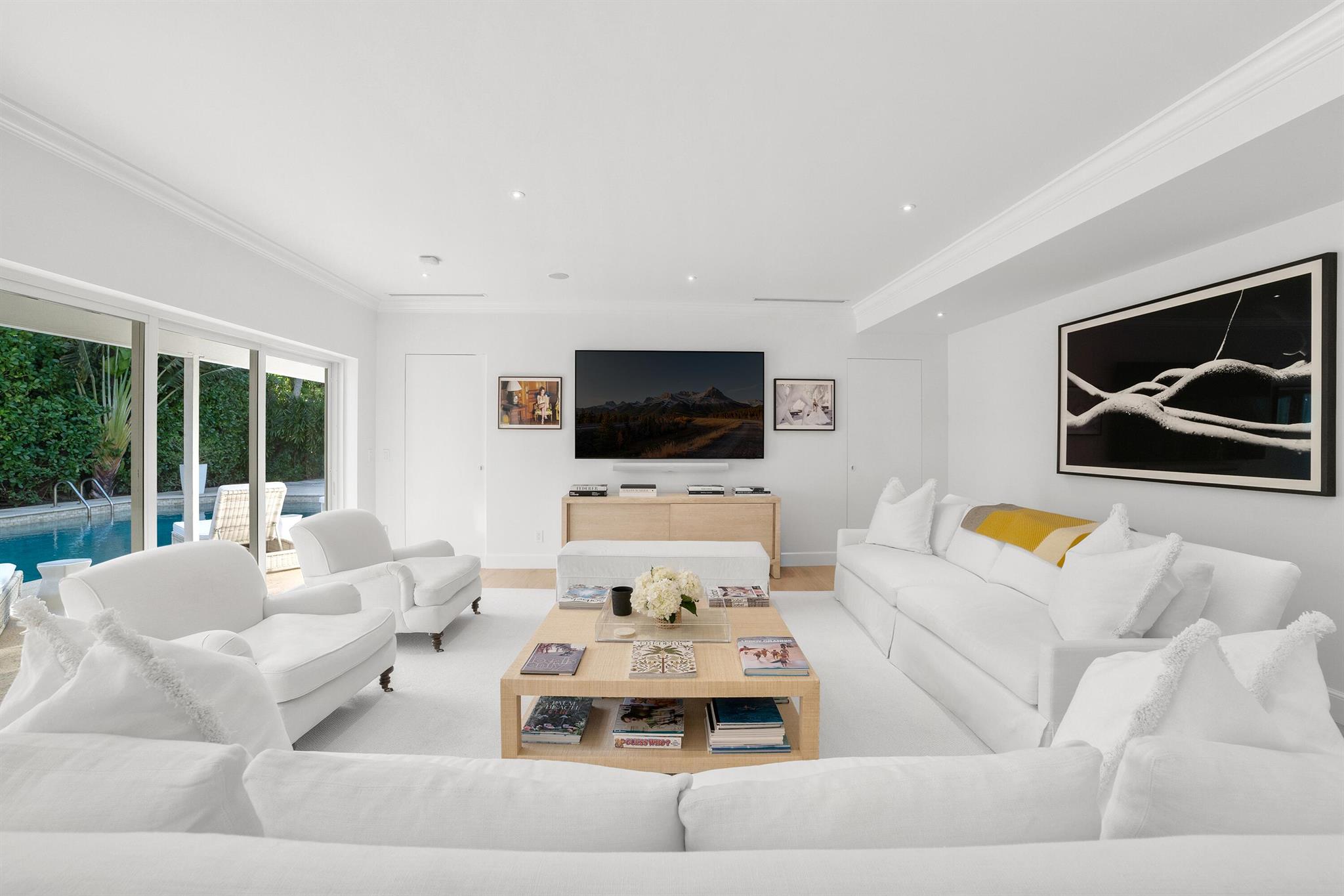 Set on a corner lot along South Flagler Drive, this West Palm Beach residence offers 70 feet of Intracoastal frontage on a 12,197+/- square foot lot with a private dock and pool. A thoughtfully integrated addition and a newly constructed guest house with a two-car garage and apartment above further enhance the property's scale, flexibility, and waterfront lifestyle.The residence encompasses approximately 5,712+/- total square feet with five bedrooms, four full bathrooms, and two half bathrooms. From the moment of entry, the home is defined by natural light and sweeping water views.The living room captures the Intracoastal setting, with windows framing the water, and serves as a central gathering space for everyday living. Just beyond, a sunroom with a built-in bar overlooks