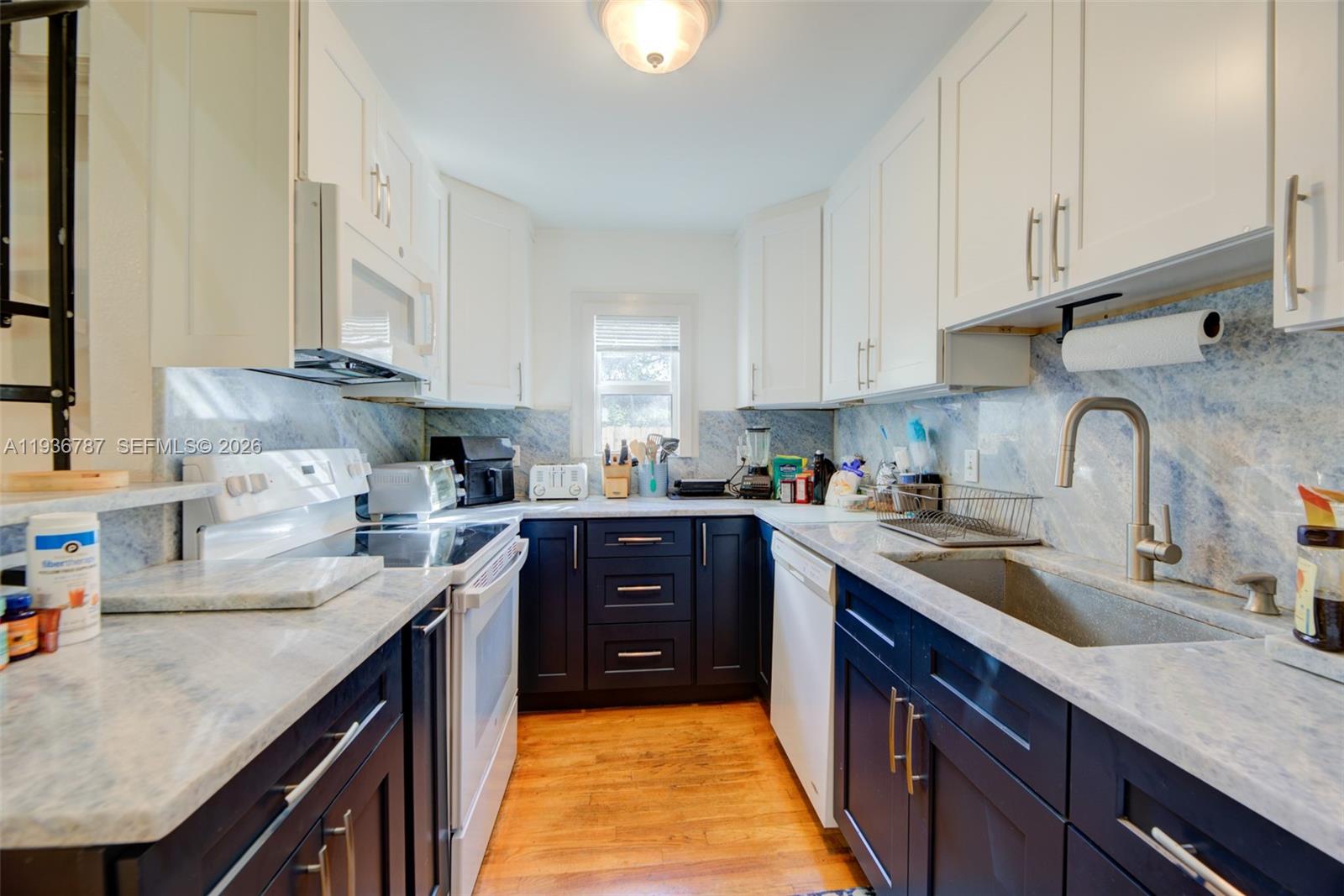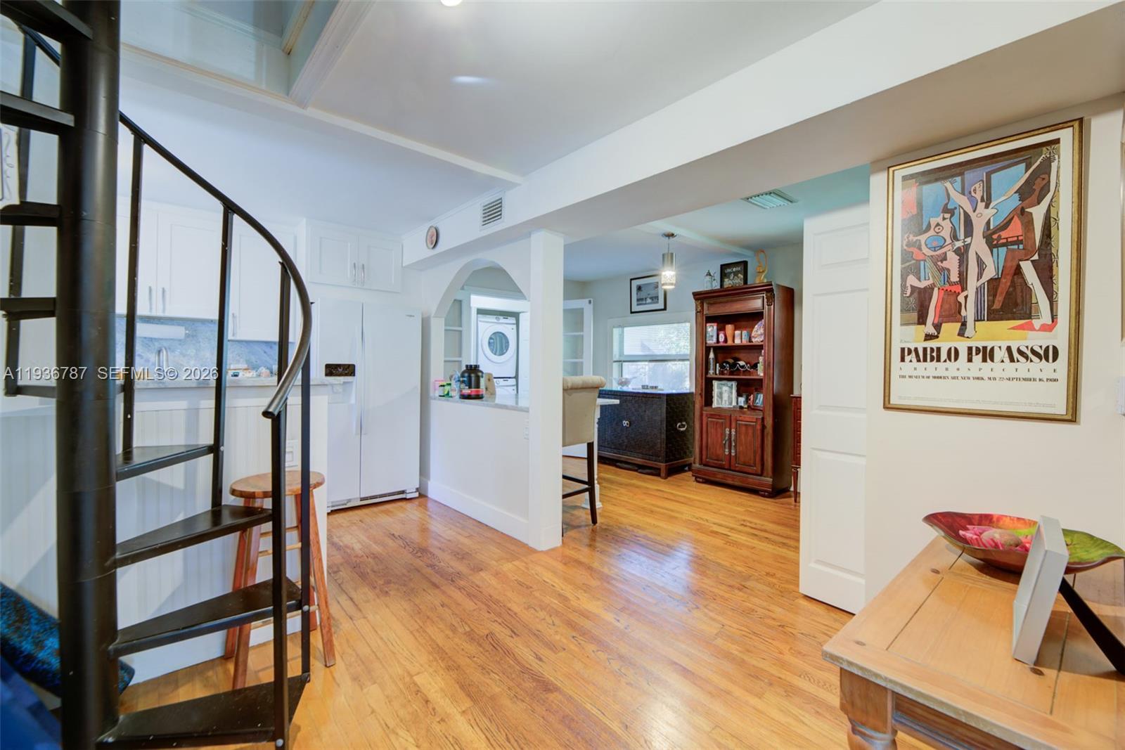 Hidden gem in the highly sought-after Tarpon River neighborhood, located on a beautiful tree-lined street just minutes from downtown Fort Lauderdale, Las Olas, dining, shopping, and nightlife. This charming residence offers 3 bedrooms and 2 full bathrooms, plus a versatile loft and a detached garage/workshop with private alley access. The spacious primary suite features high ceilings and an ensuite bathroom with dual vanities and an oversized walk-in shower. The home features central air conditioning, a new kitchen, completely updated bathrooms, new washer/dryer, quartz countertops in the kitchen, and custom closets throughout. The loft provides flexible space ideal for a home office, playroom, or additional sleeping area with a second A/C split. A separate mother-in-law quarters offers excellent guest or flexible-use potential—approximately 2,100 square feet under air with original Dade County pine wood floors. Additional features include a new metal roof, hurricane-impact windows, three large enclosed backyard storage areas, and a dedicated A/C storage shed. Parking includes two front spaces plus a backyard driveway space, with ample guest parking nearby. Walking distance to The Wharf, Broward Center, parks, restaurants, & Publix. Protective awnings throughout, custom stonescaping front and back, window treatments, exterior motion lighting, lush palms, new fencing with 20’ rolling gate, steps to downtown bars, tennis & pickleball. A rare opportunity to own in Tarpon River.
